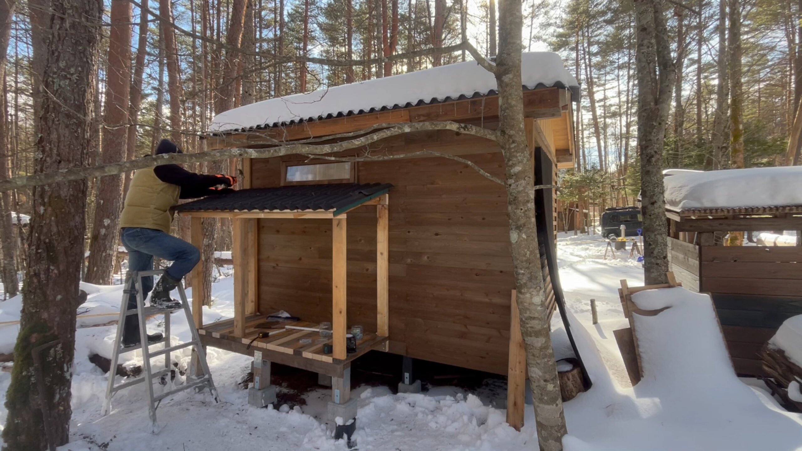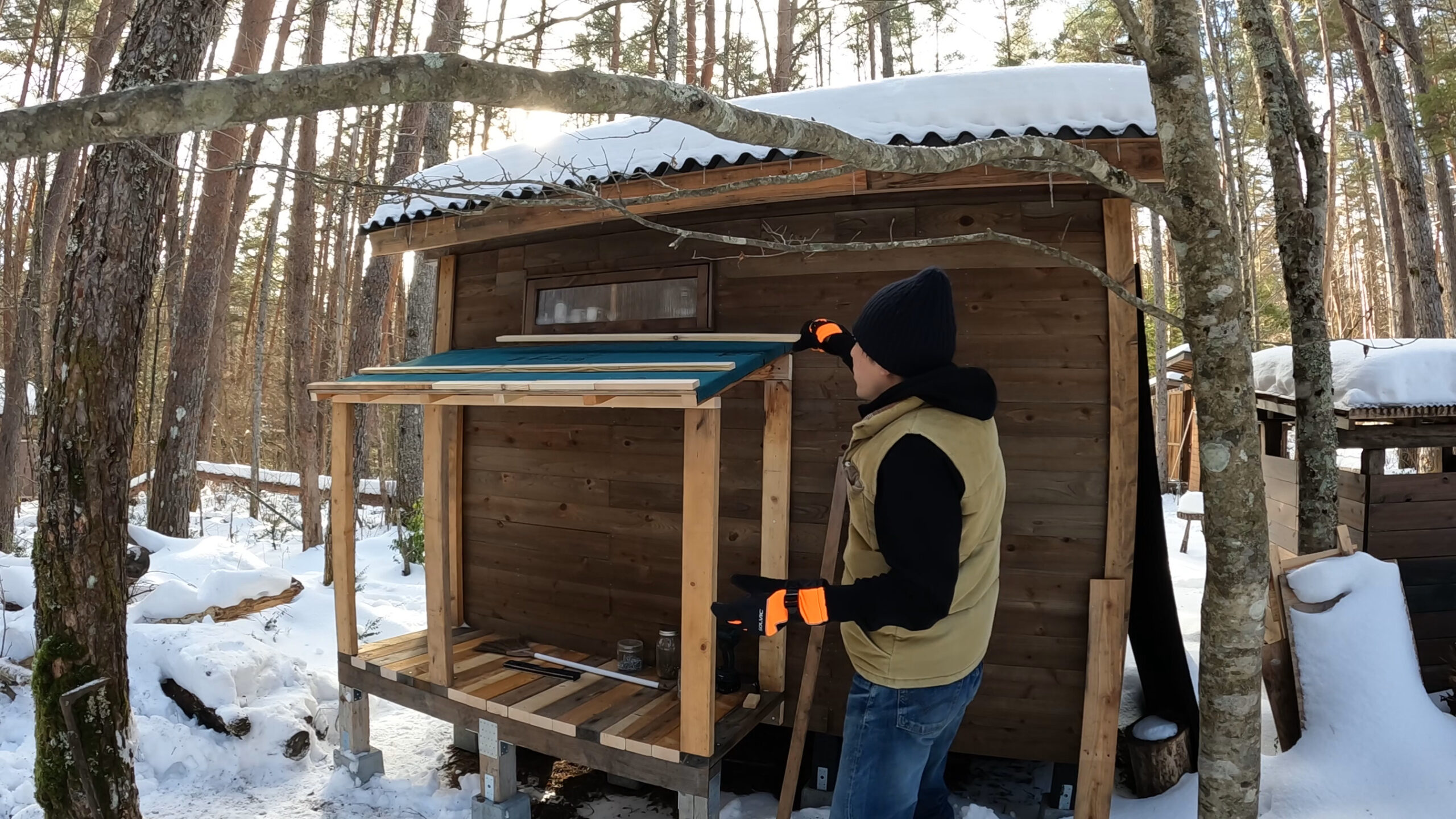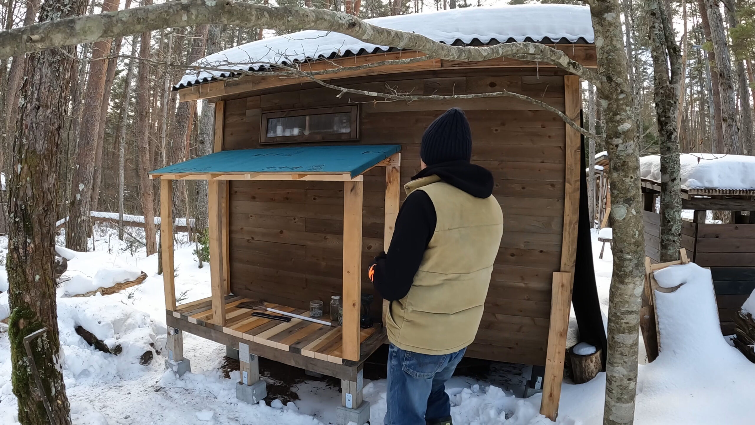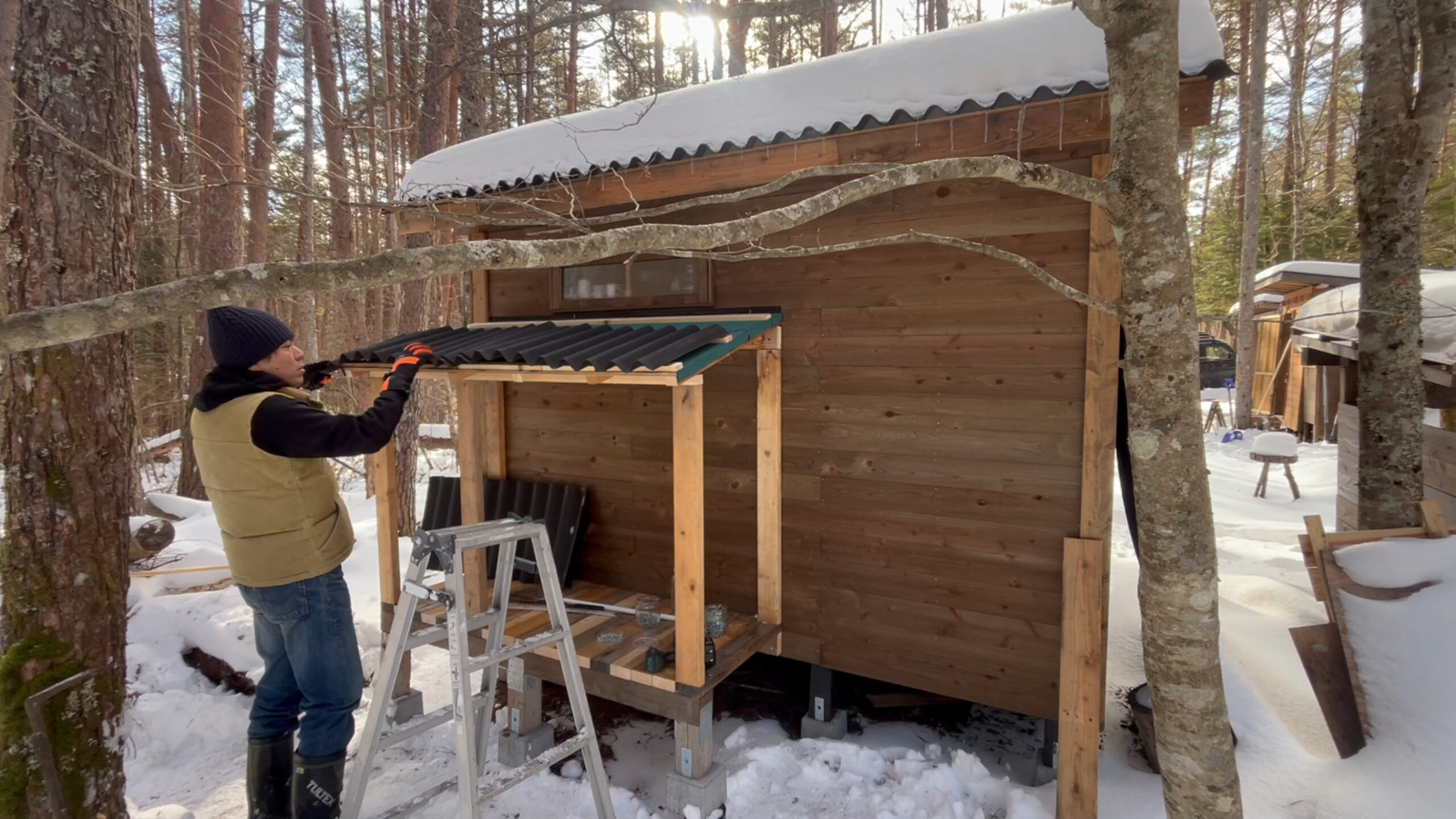 屋根材は山小屋を作った時の端材を使います。