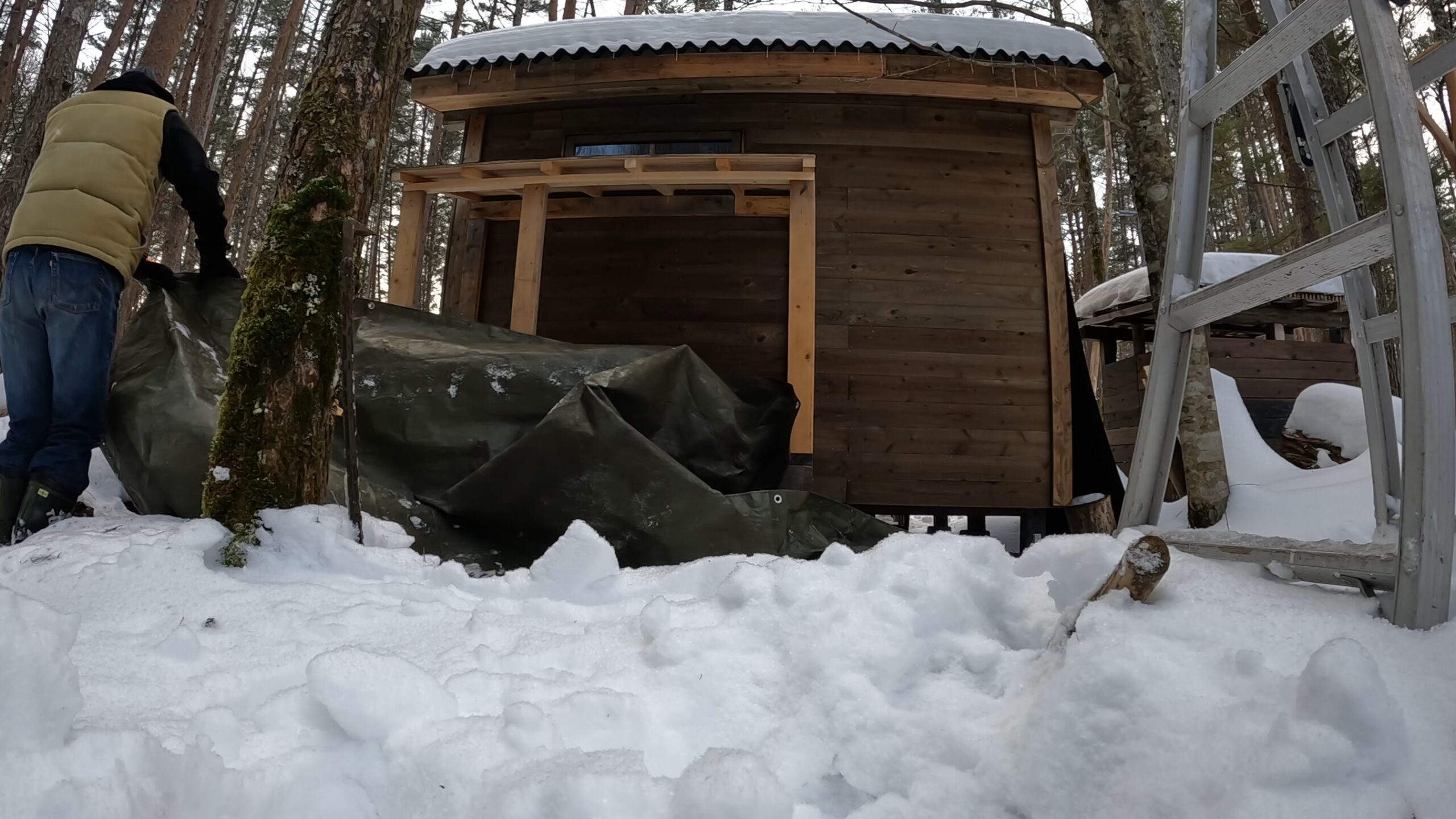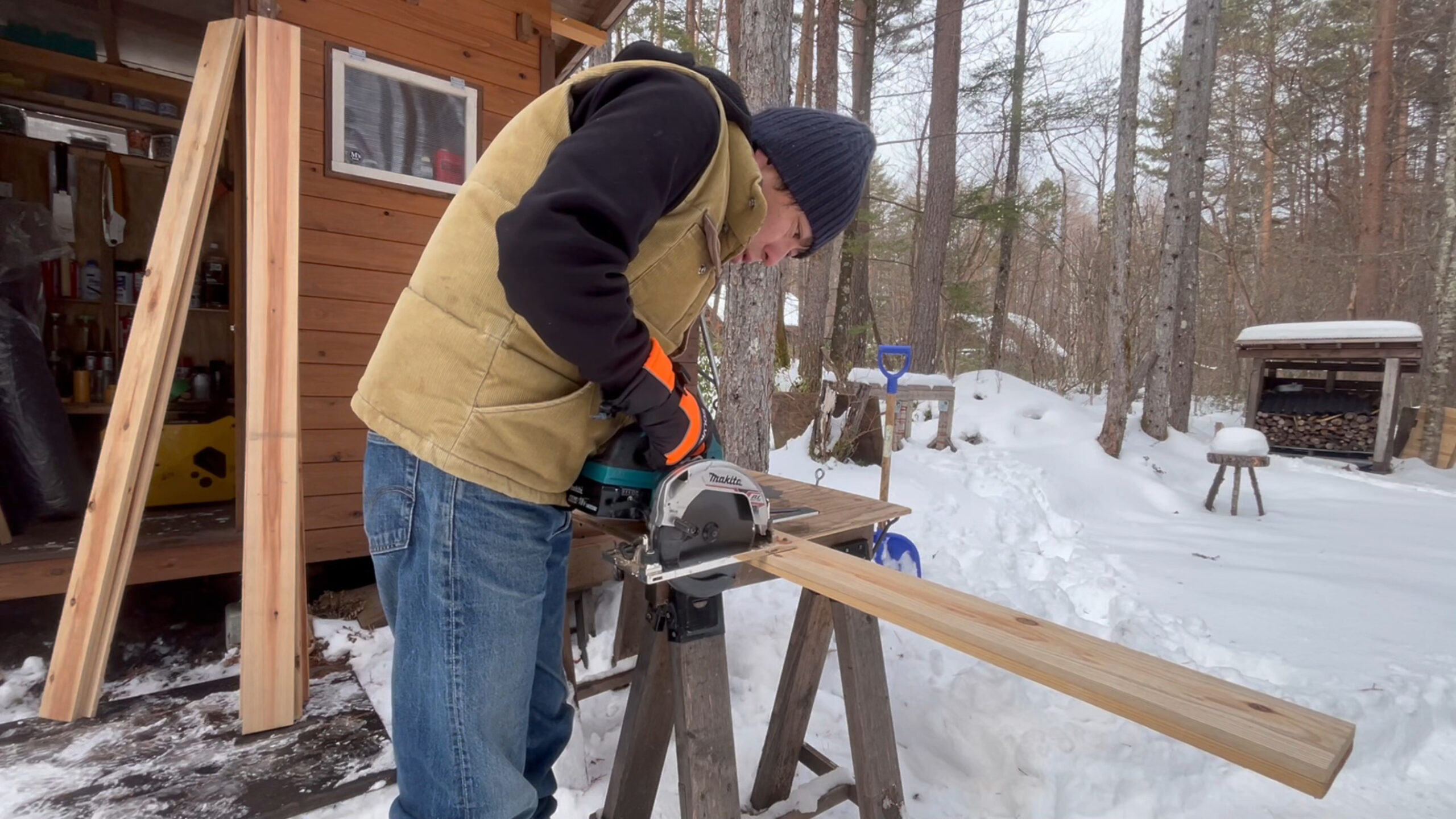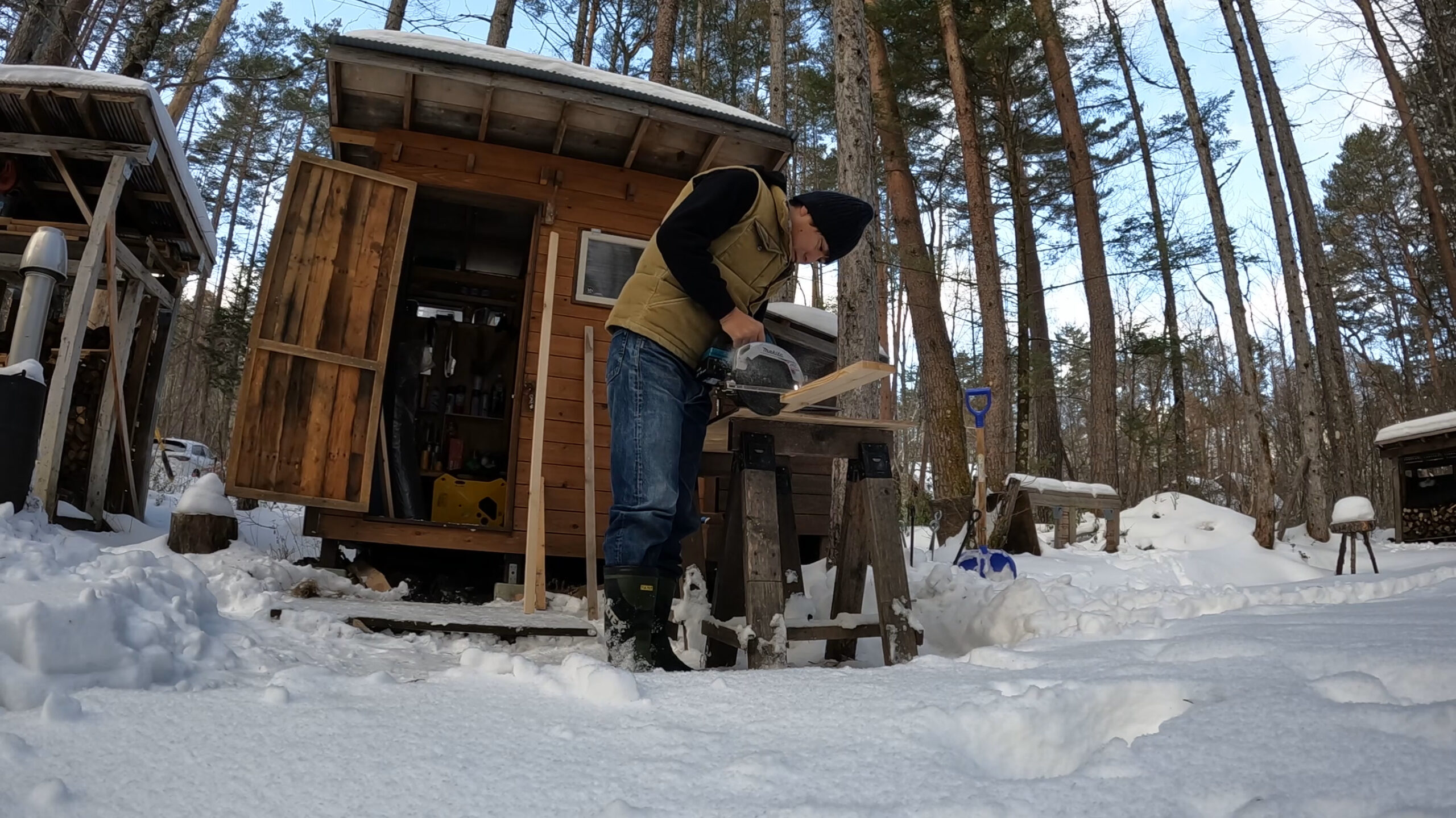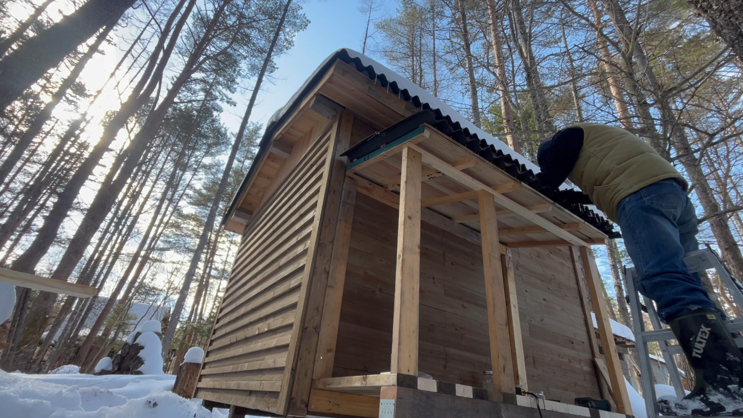 屋根材は山小屋を作った時の端材を使います。