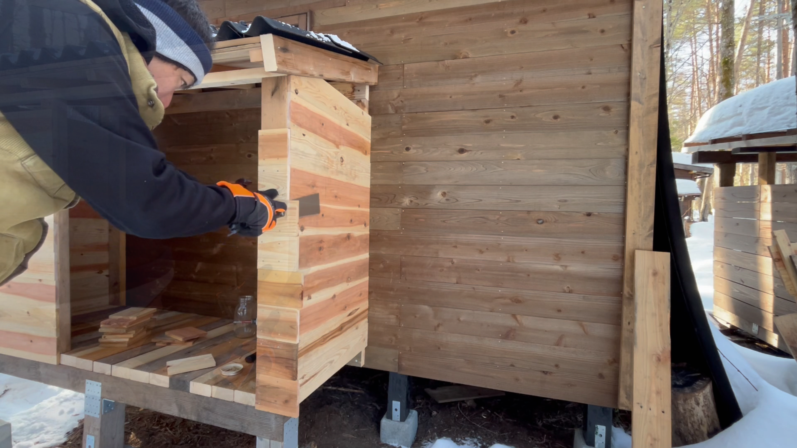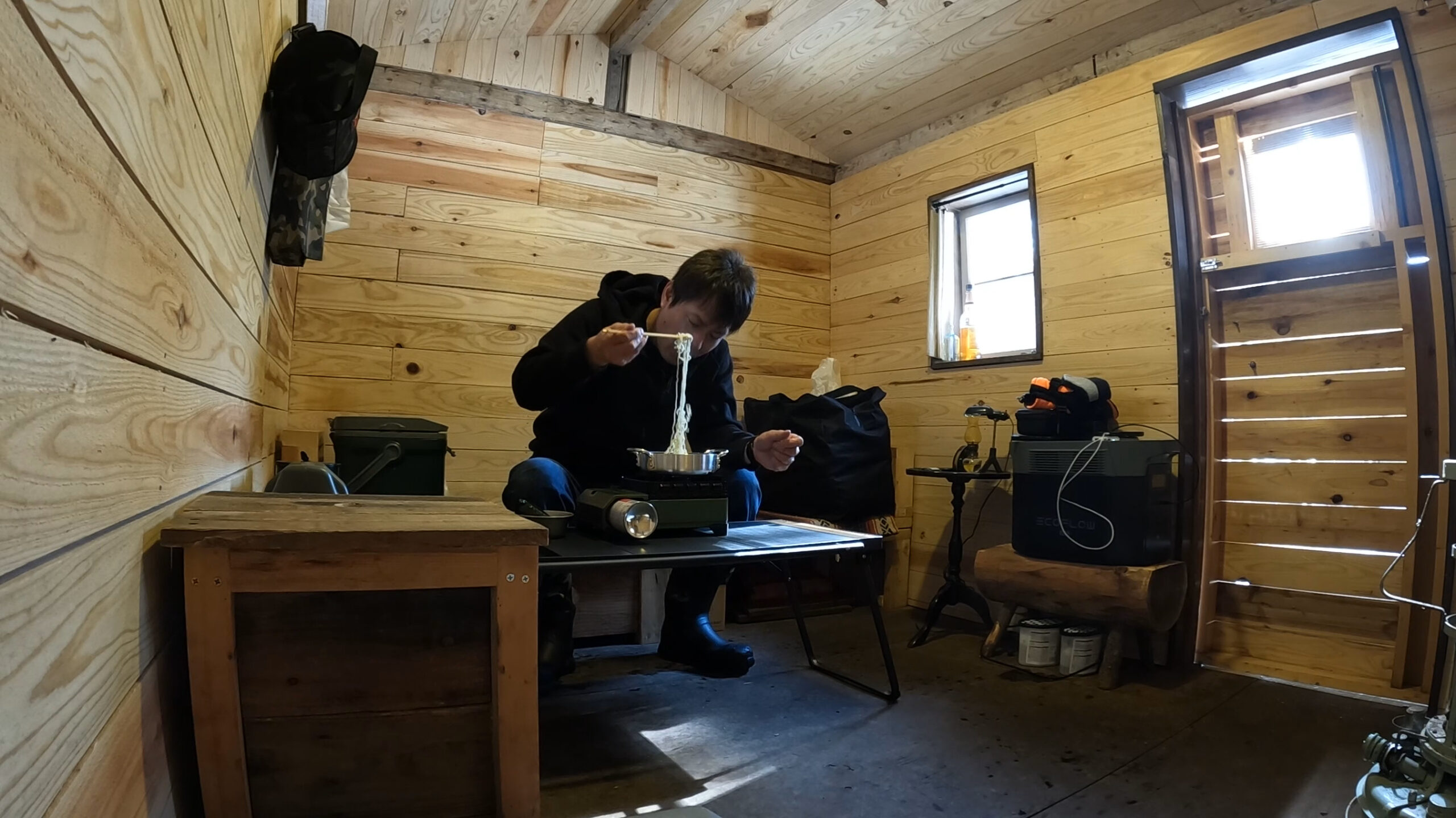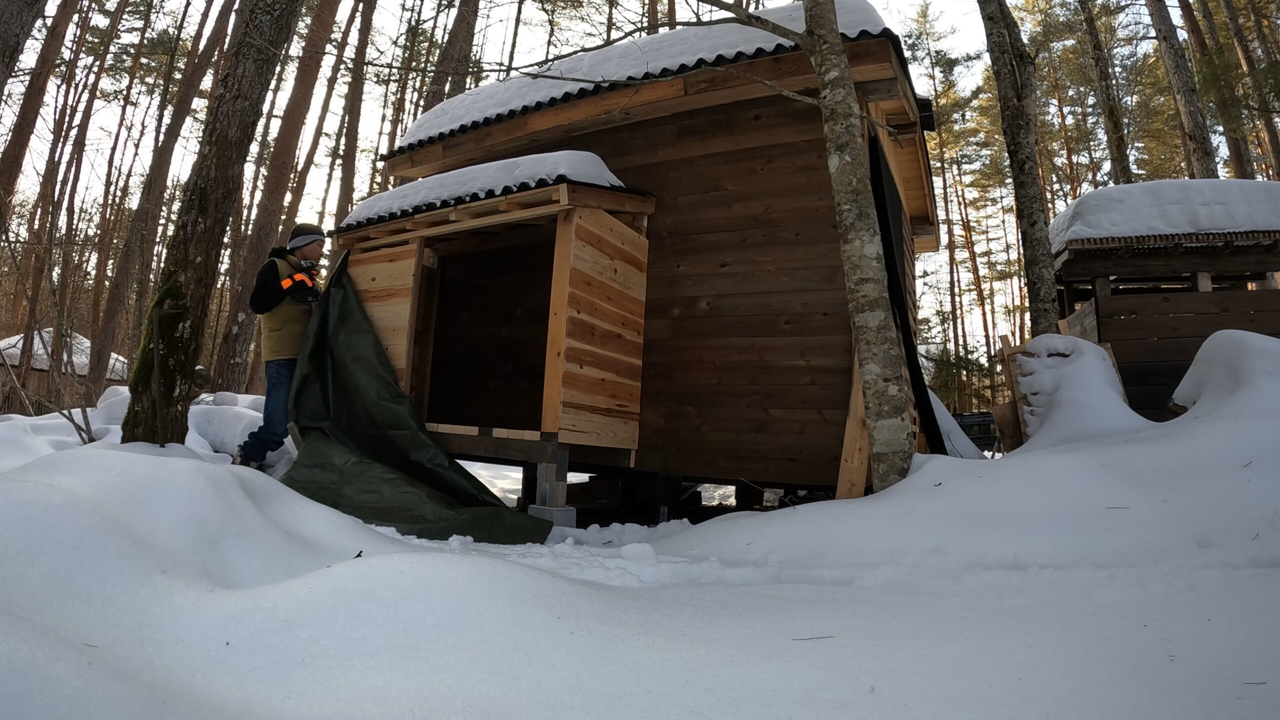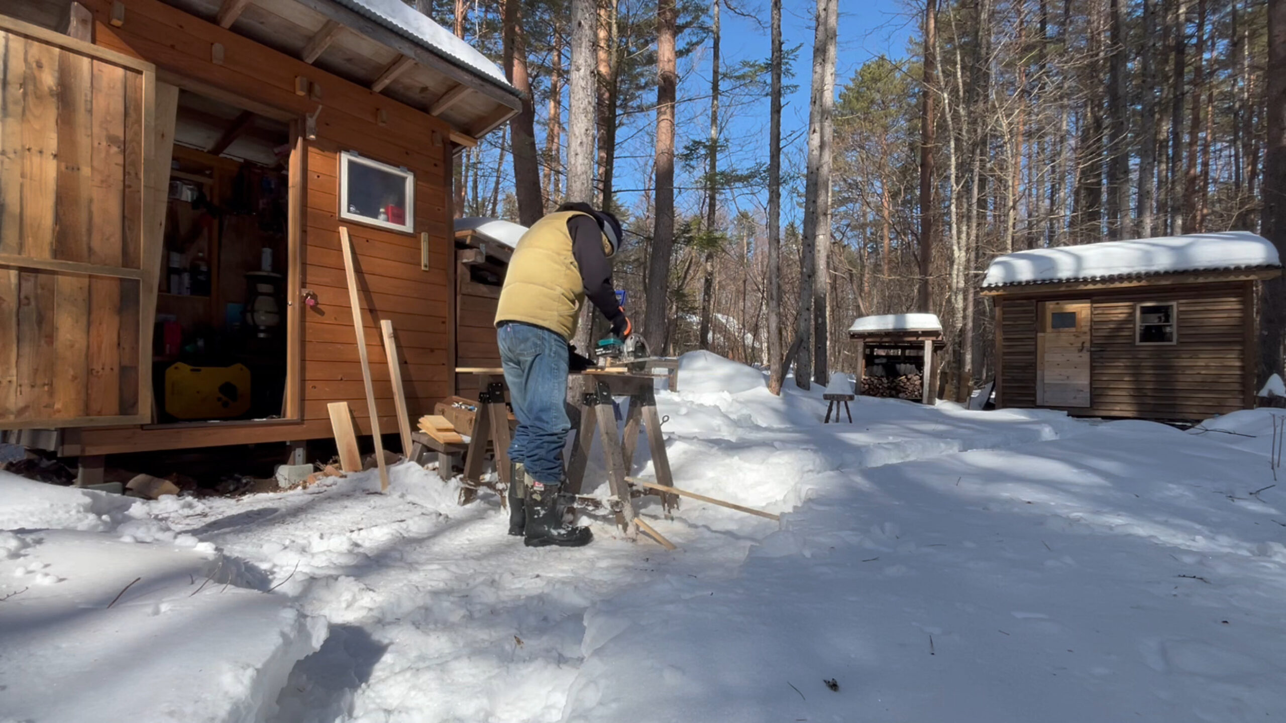 2020年の8月に開拓をスタートして、物置小屋、薪棚、雨水貯水システム、そして小さな小さな山小屋を建てました。