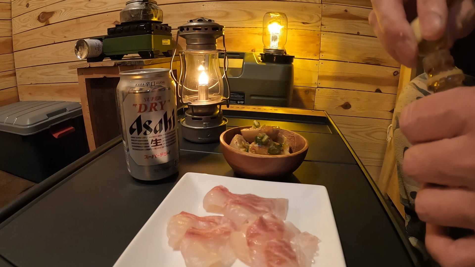 本日のおつまみは真鯛のお刺身と味付け卵です。