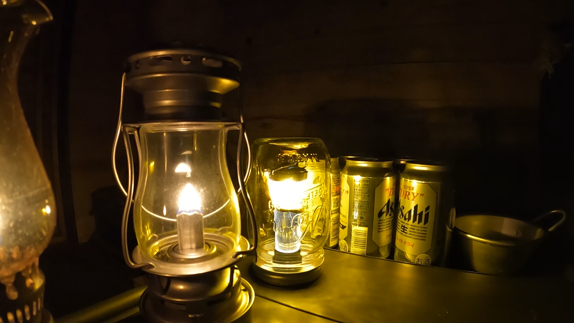 ゆらゆらゆらめくランプの炎…ボトルランタンの黄色い灯り…