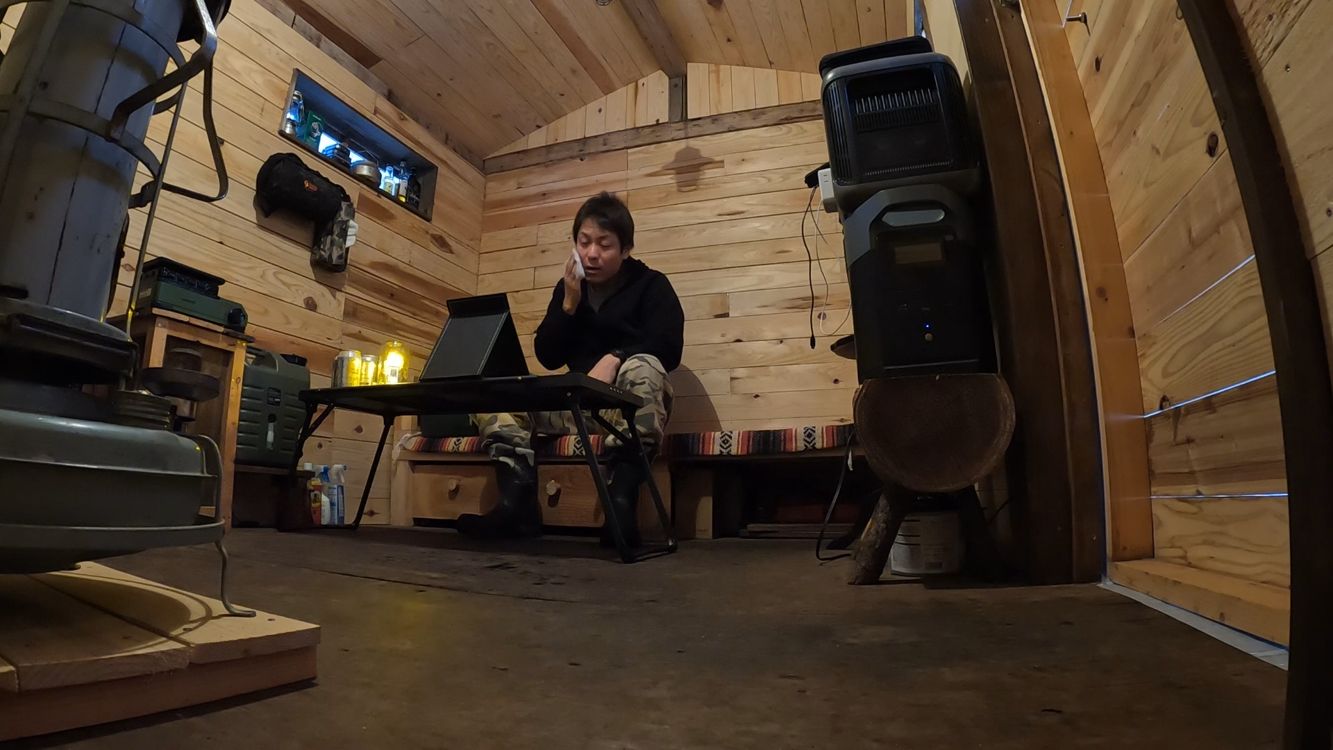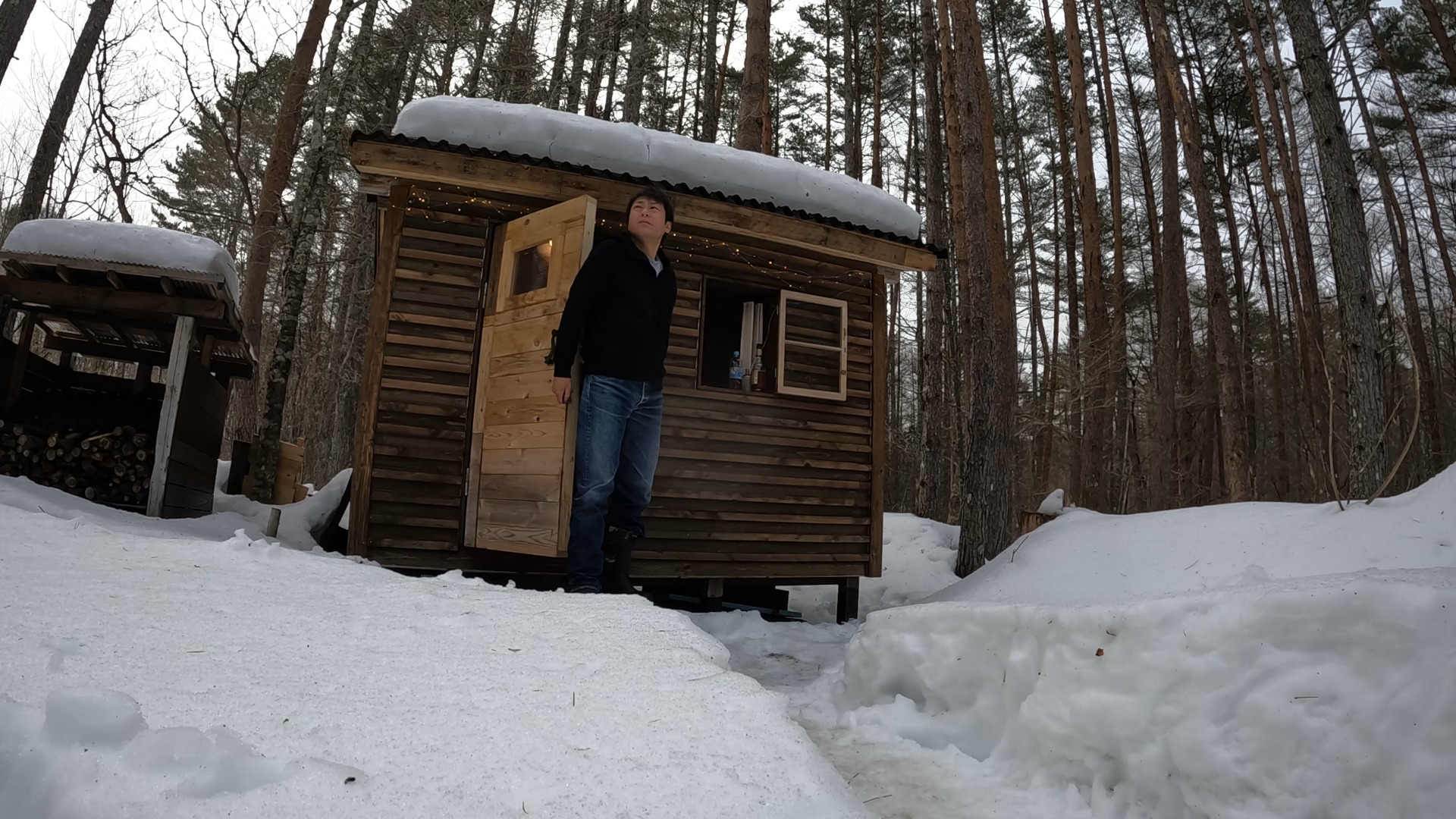 2020年の8月に開拓をスタートして、物置小屋、薪棚、雨水貯水システム、そして小さな小さな山小屋を建てました。