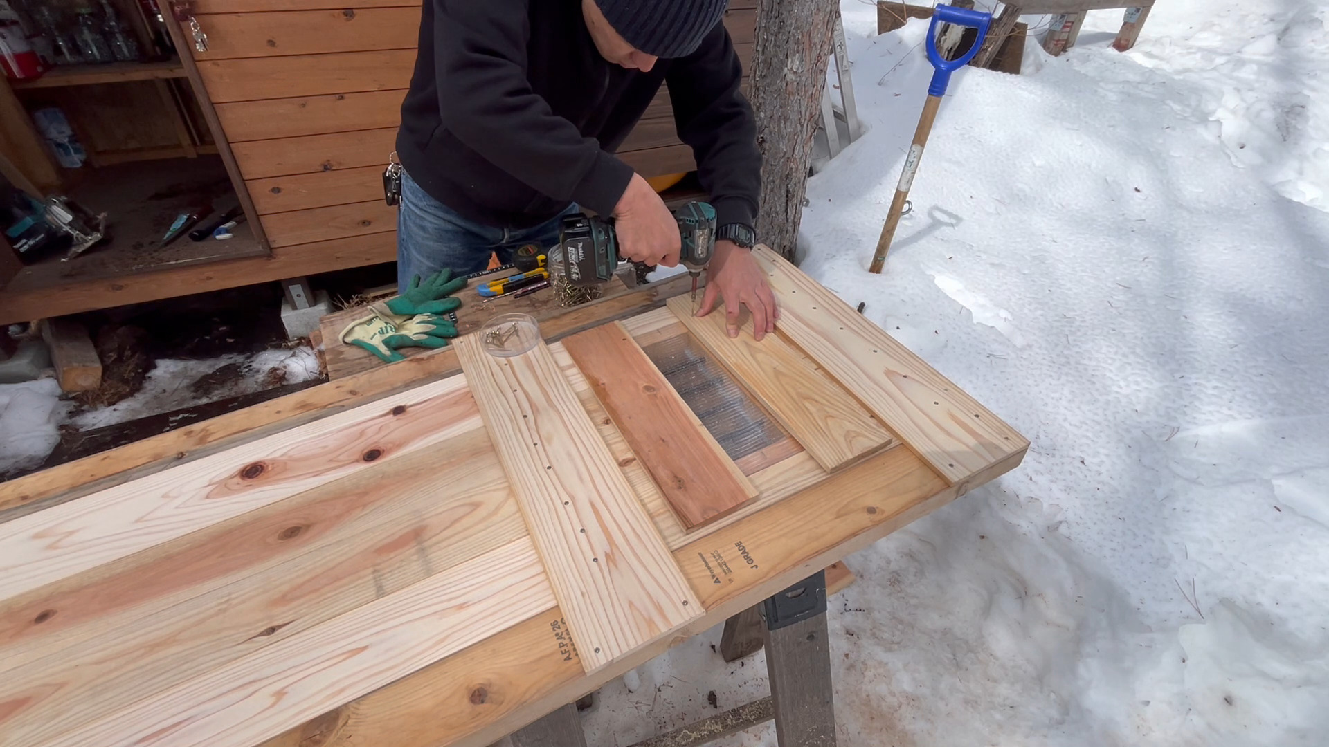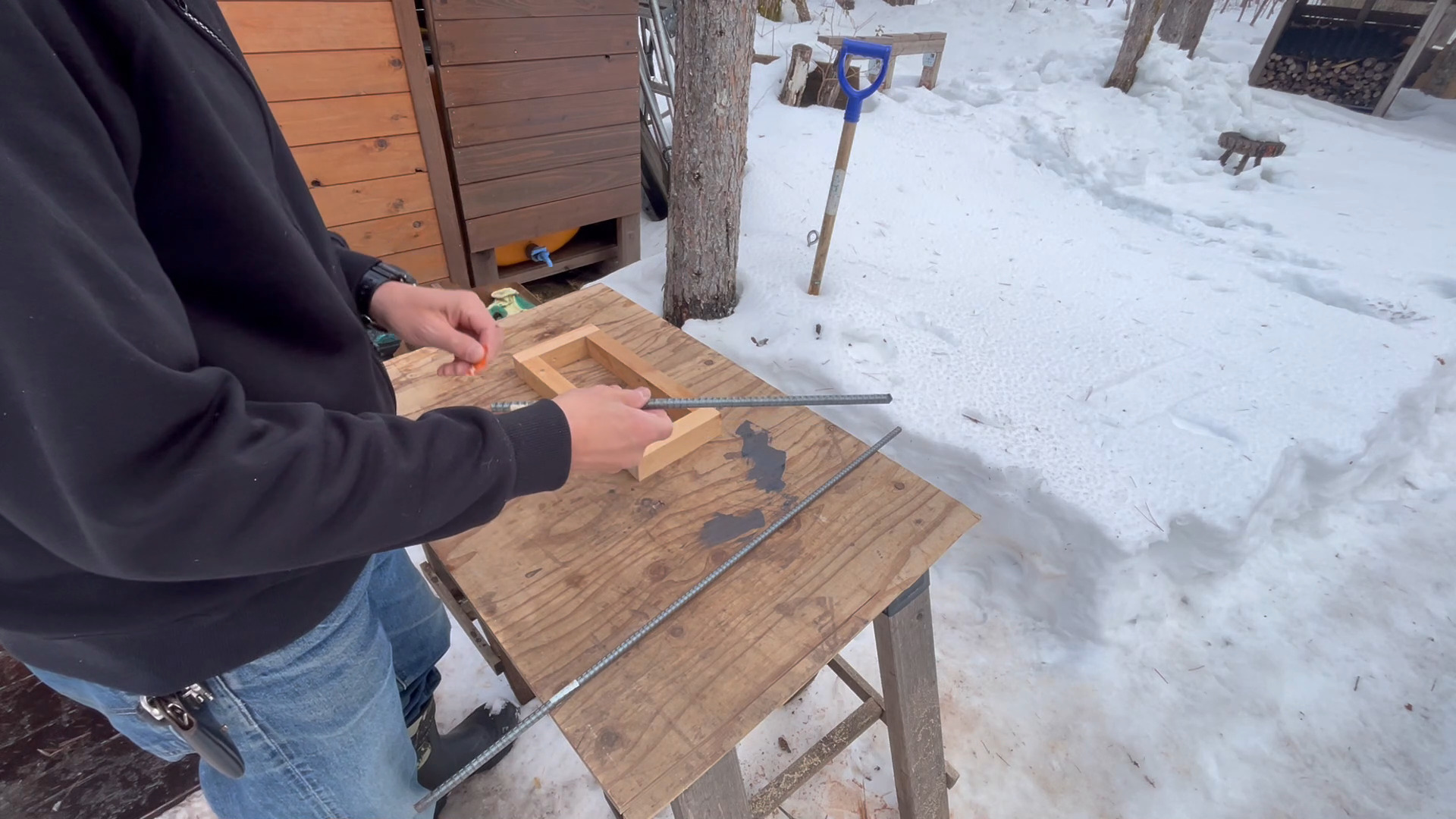 今は自作した山小屋の扉の作り替えをしていて、前回はここまで作った状態です。