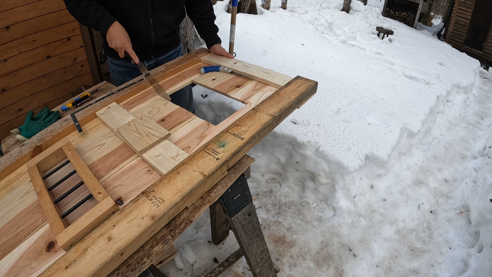 今回は扉に明かり取りの小窓を取り付けていきます。