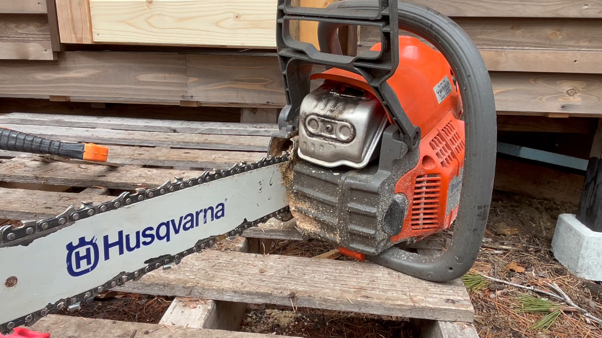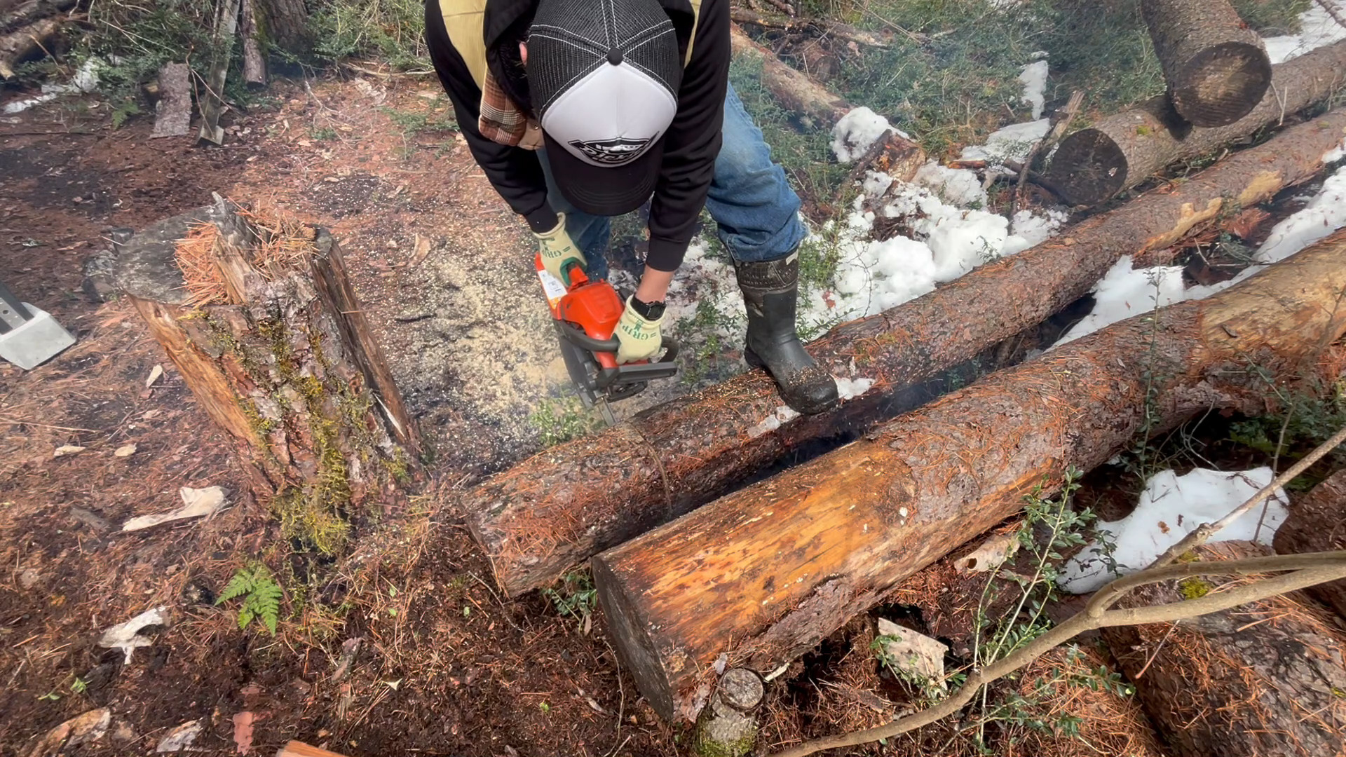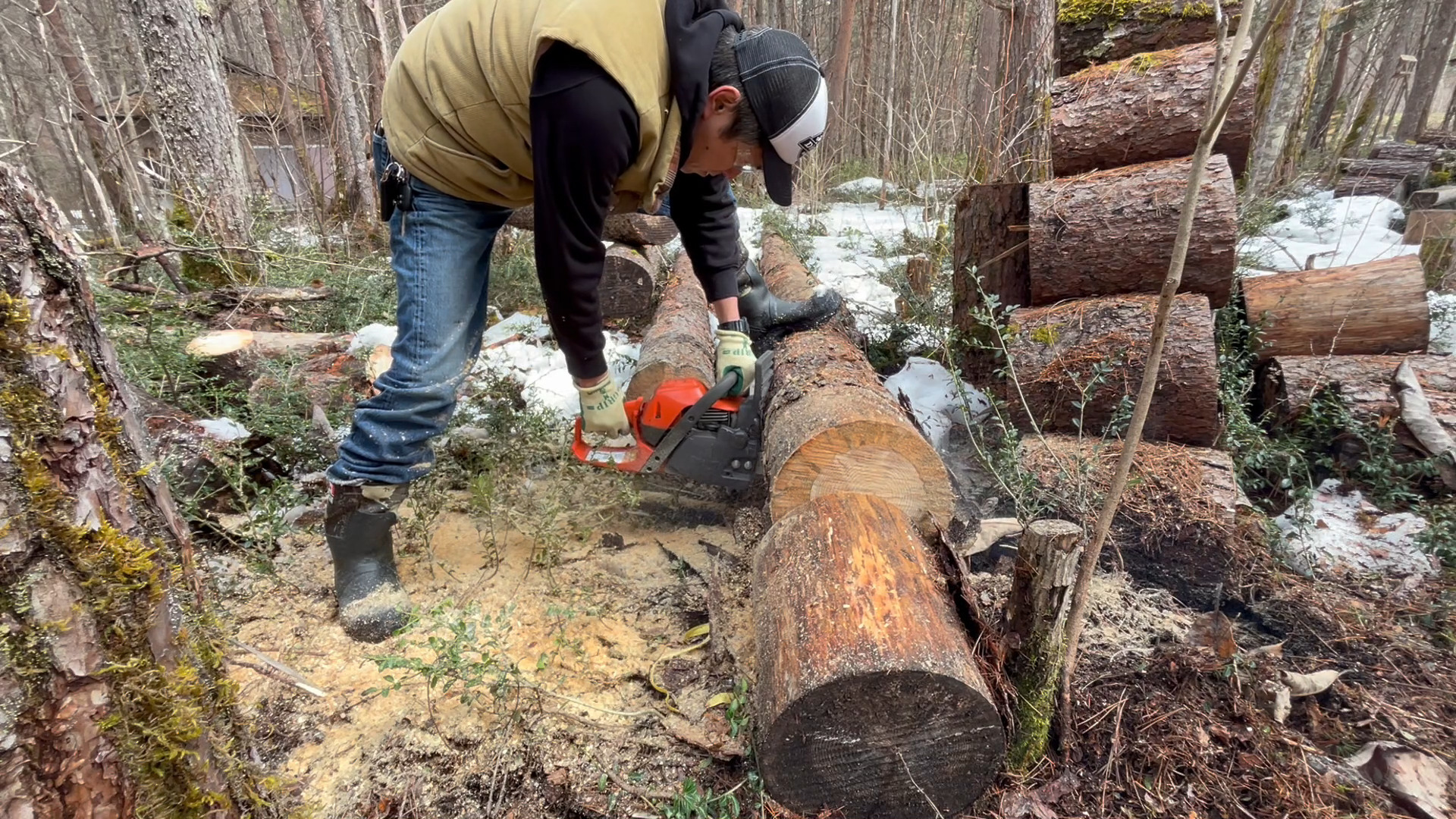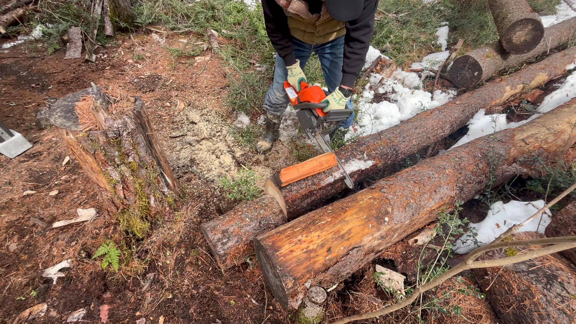 チェーンソー作業も随分久々ですね。