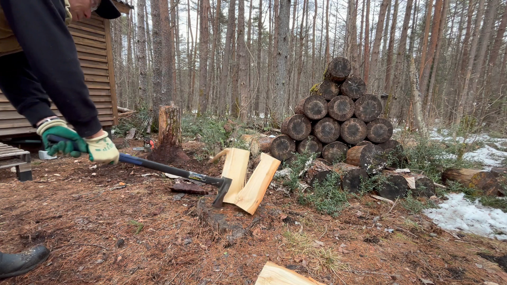 なんとなく、久々に薪割りがしてみたくなったので斧を振っています。