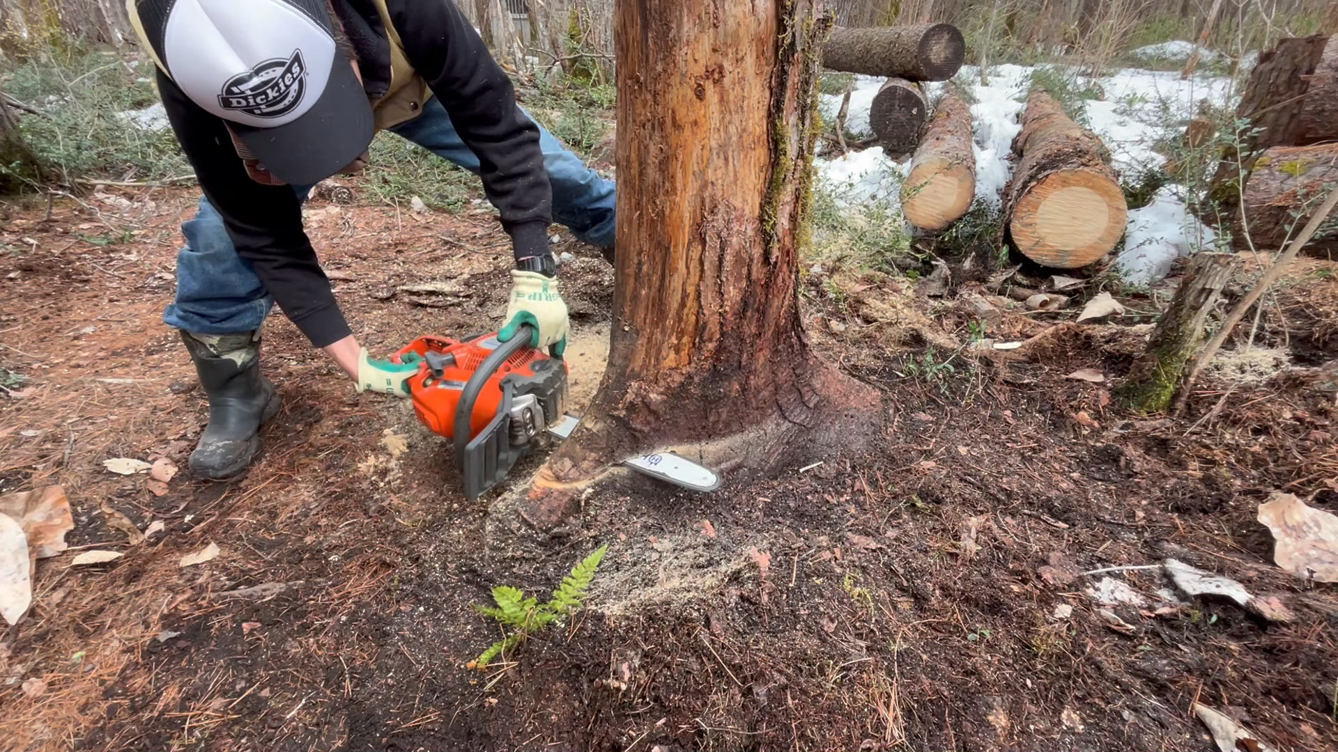 昔々に切り倒した唐松もデッキ製作に邪魔になるので切っていきます。