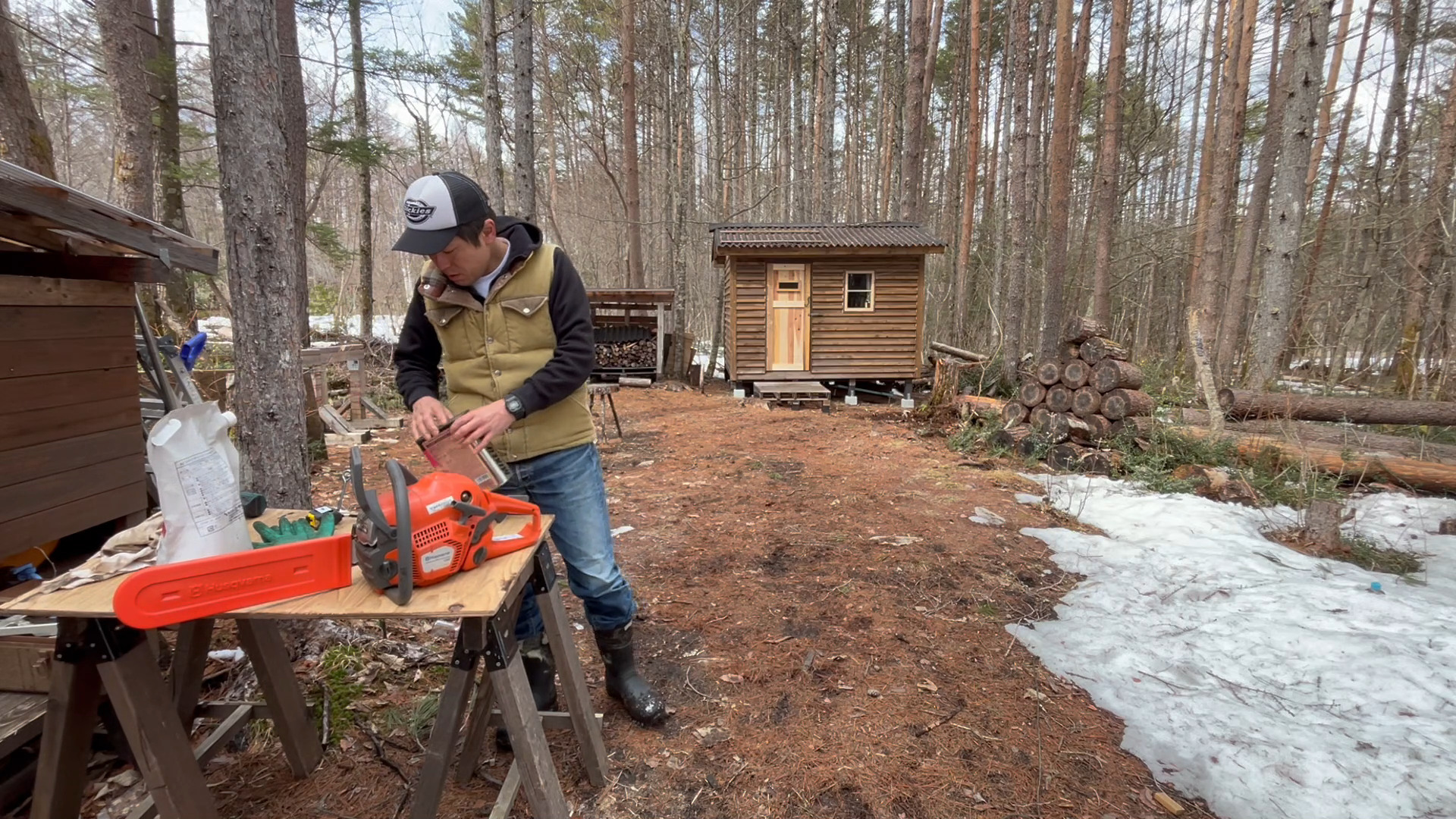 今回は自作の山小屋にウッドデッキを作る準備を開始したのでその様子をお送りしていきたいと思います。