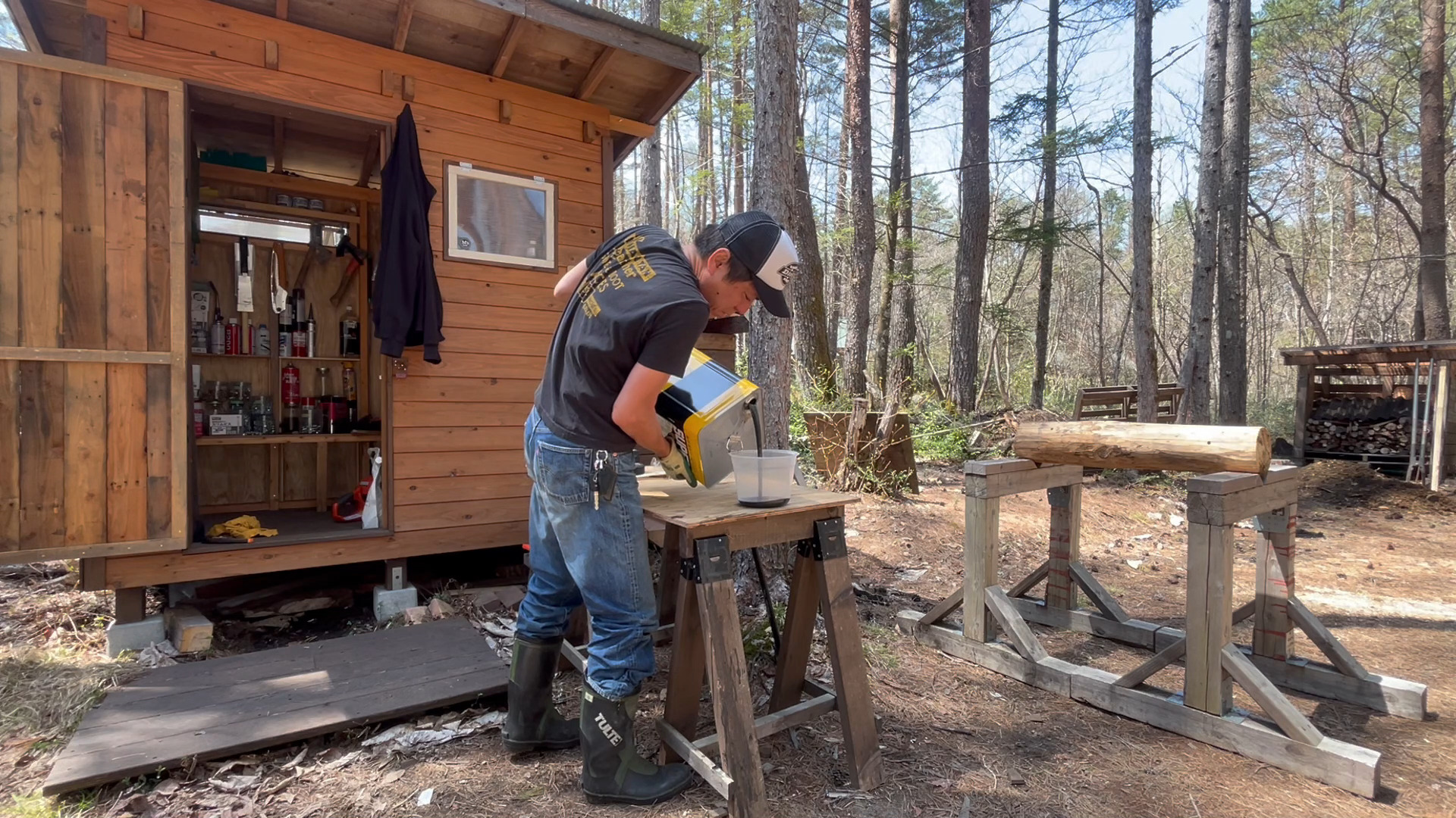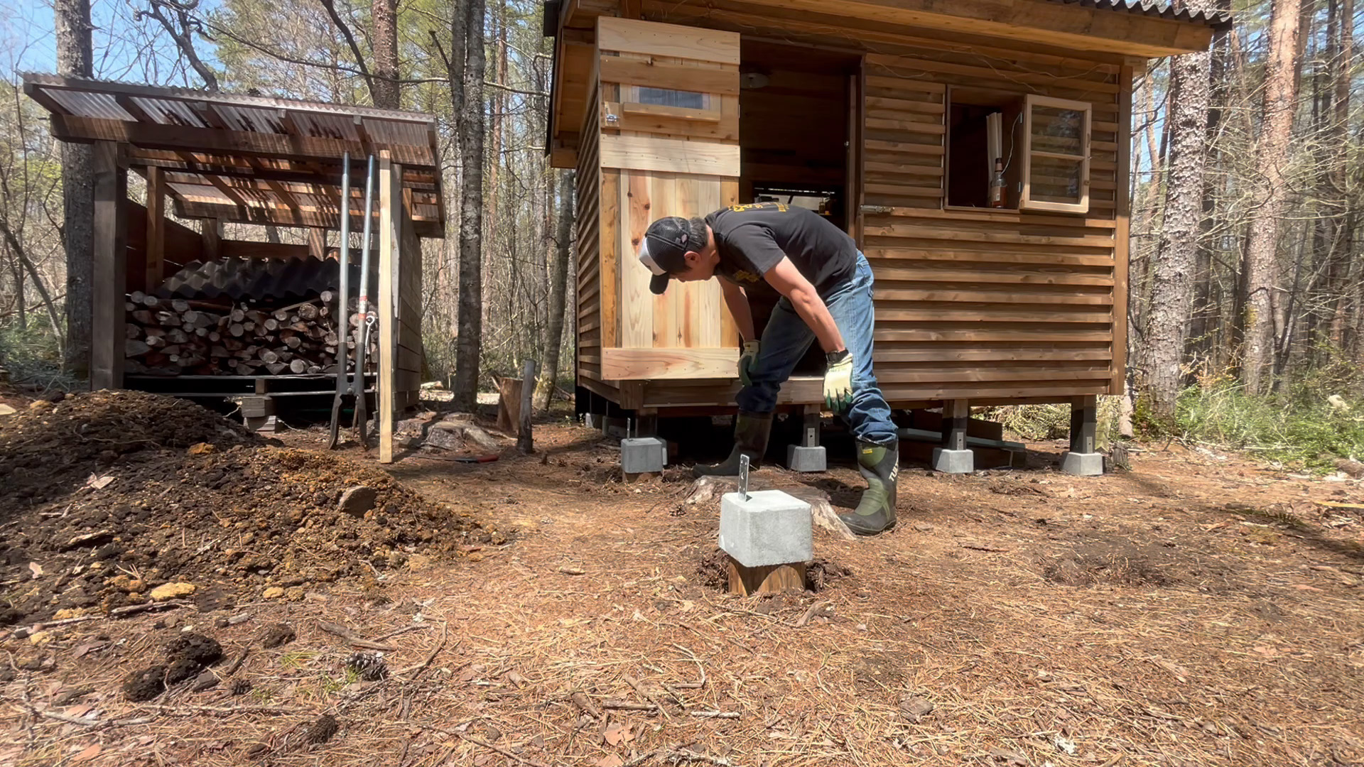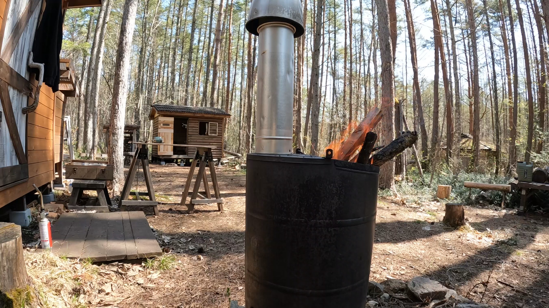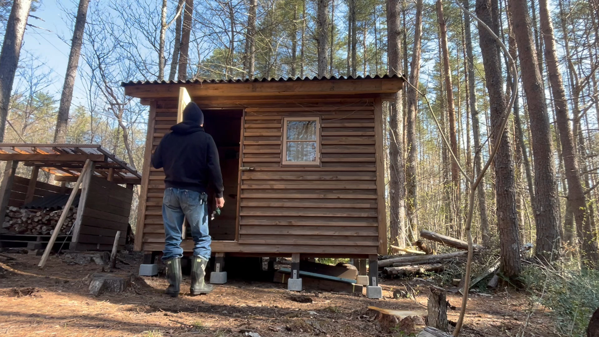 2020年の8月に開拓をスタートして、物置小屋、薪棚、雨水貯水システム、そして小さな小さな山小屋を建てました。