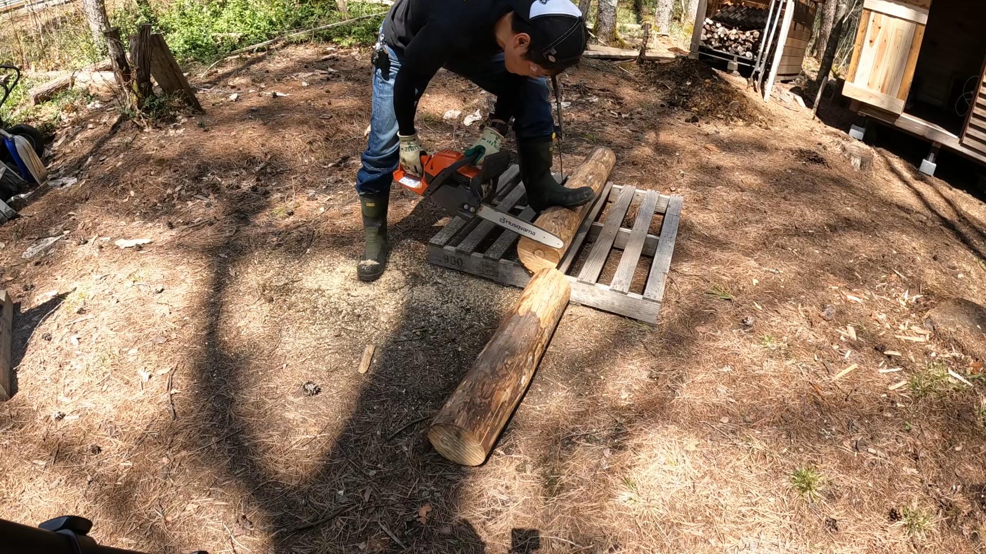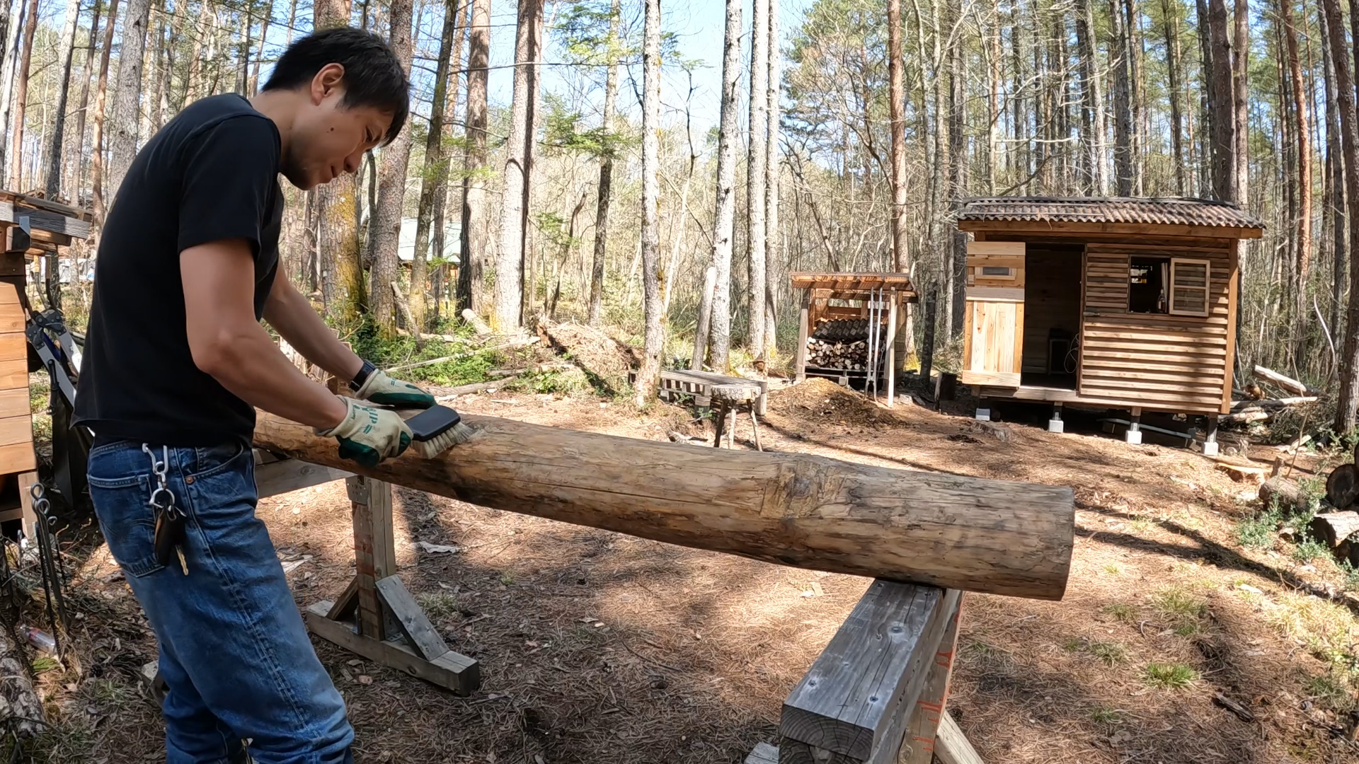 諸事情により丸太小屋の製作は断念しましたが加工済みの丸太は何かに使えるなと思って保管しておいたのです。