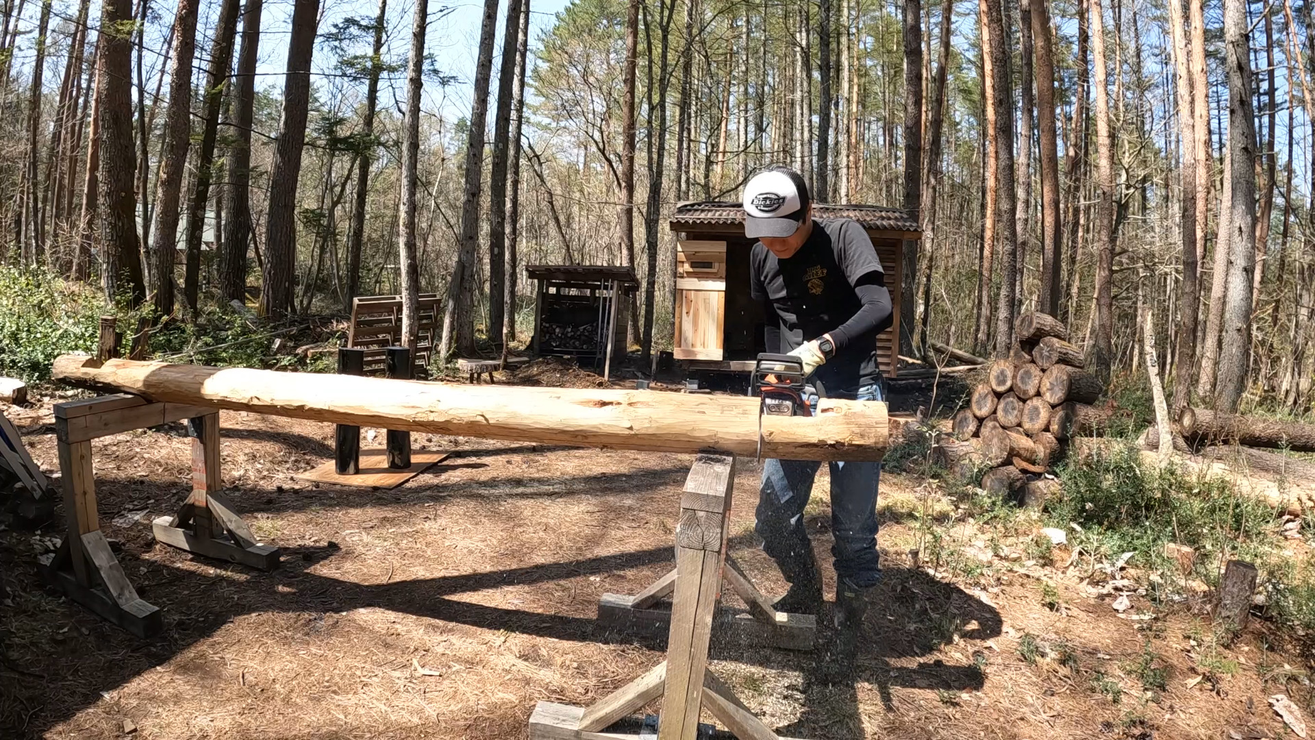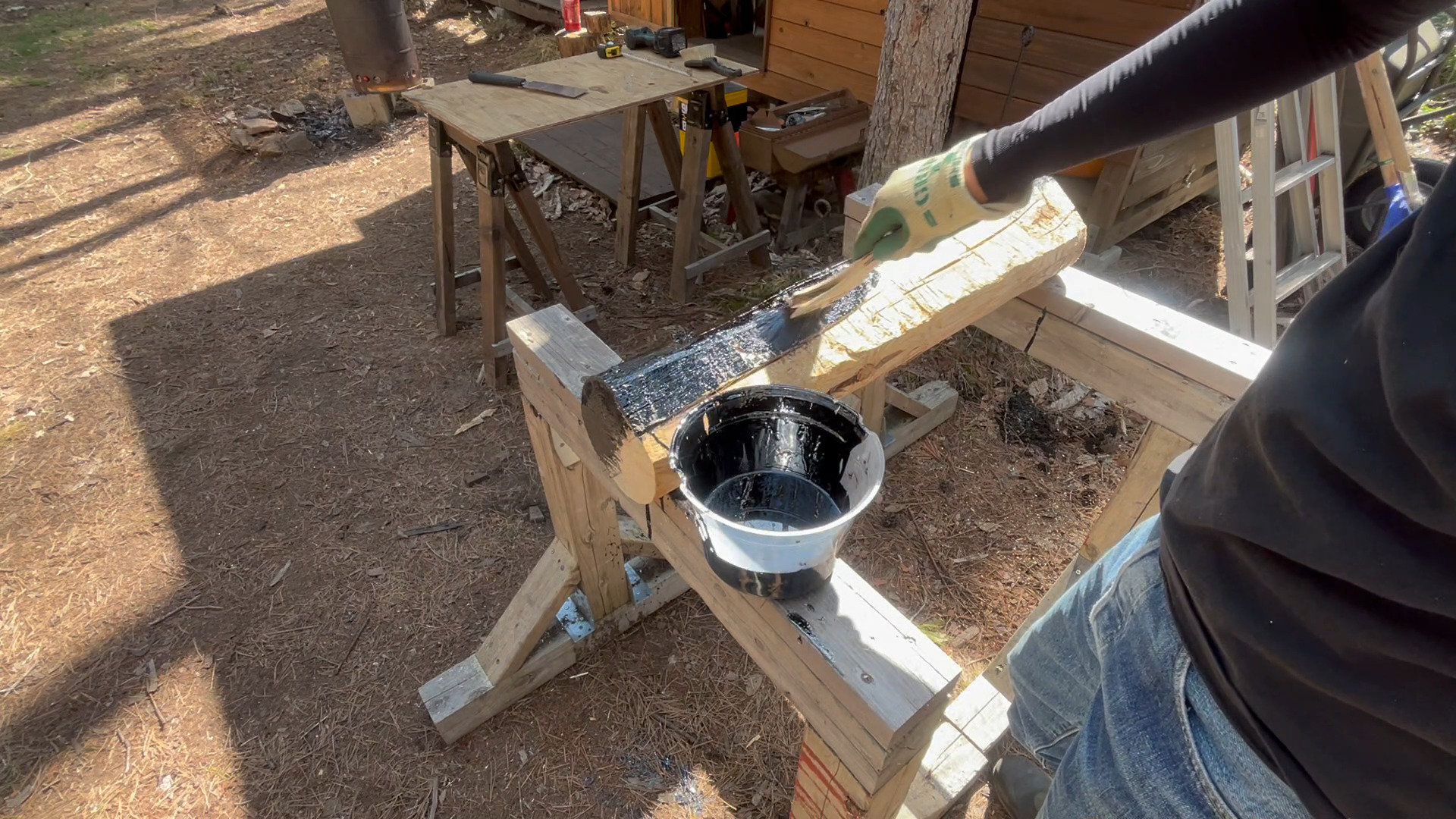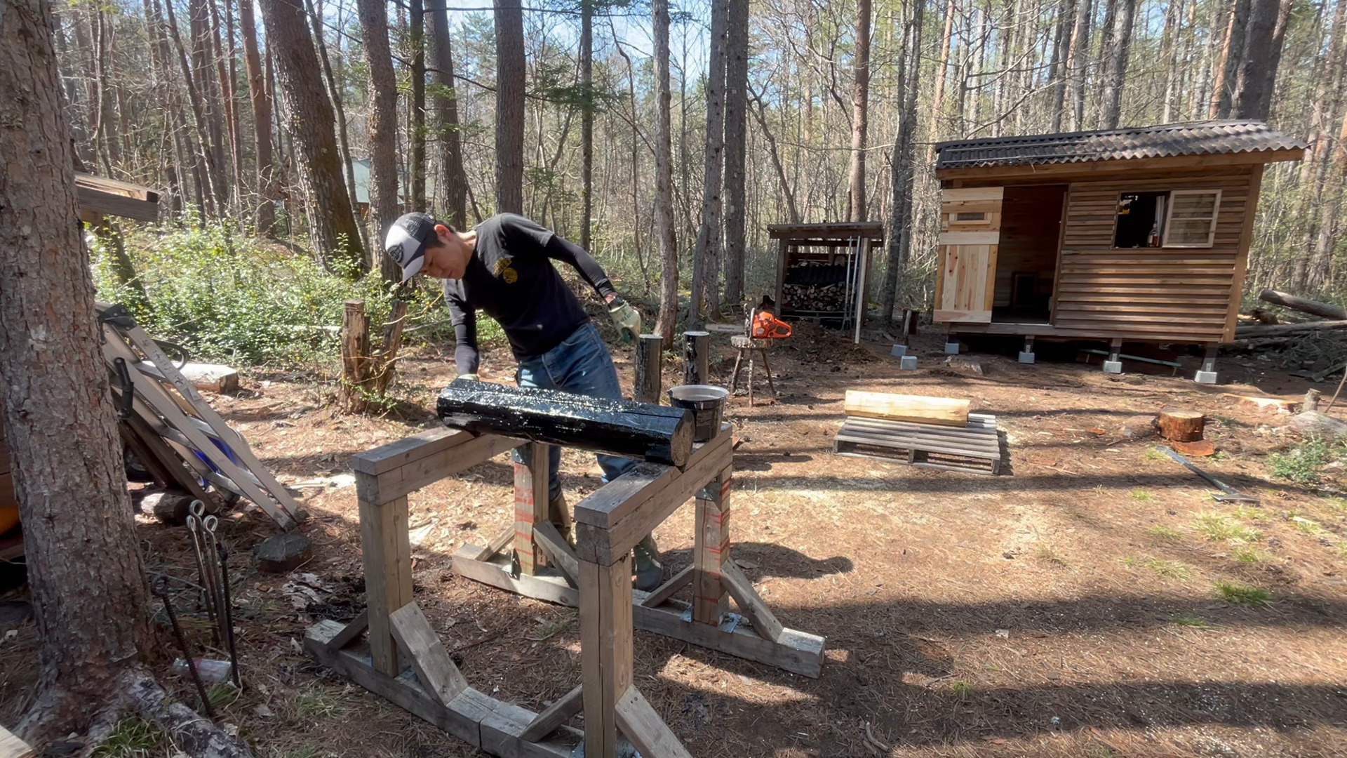基礎に使う丸太はまだまだ必要なので今回も丸太の加工、防腐処理をしていきたいと思います。