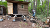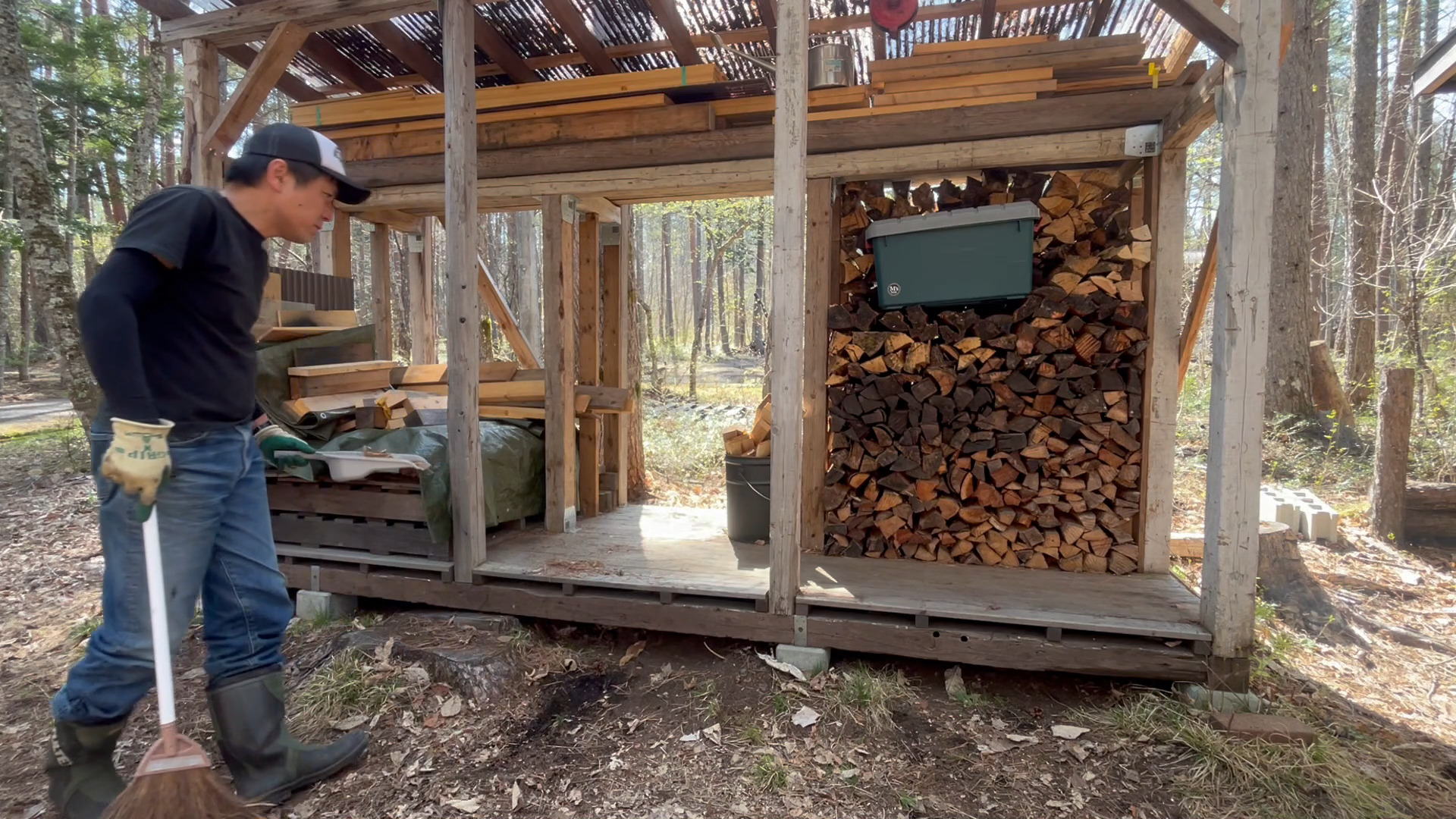 2020年の8月に開拓をスタートして、物置小屋、薪棚、雨水貯水システム、そして小さな小さな山小屋を建てました。