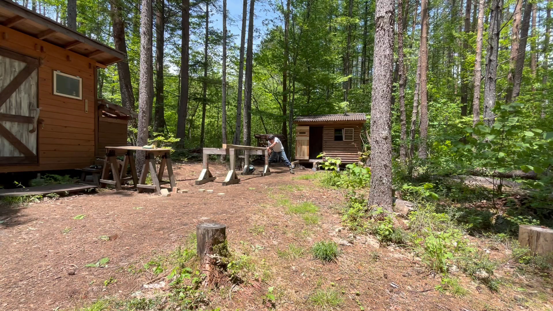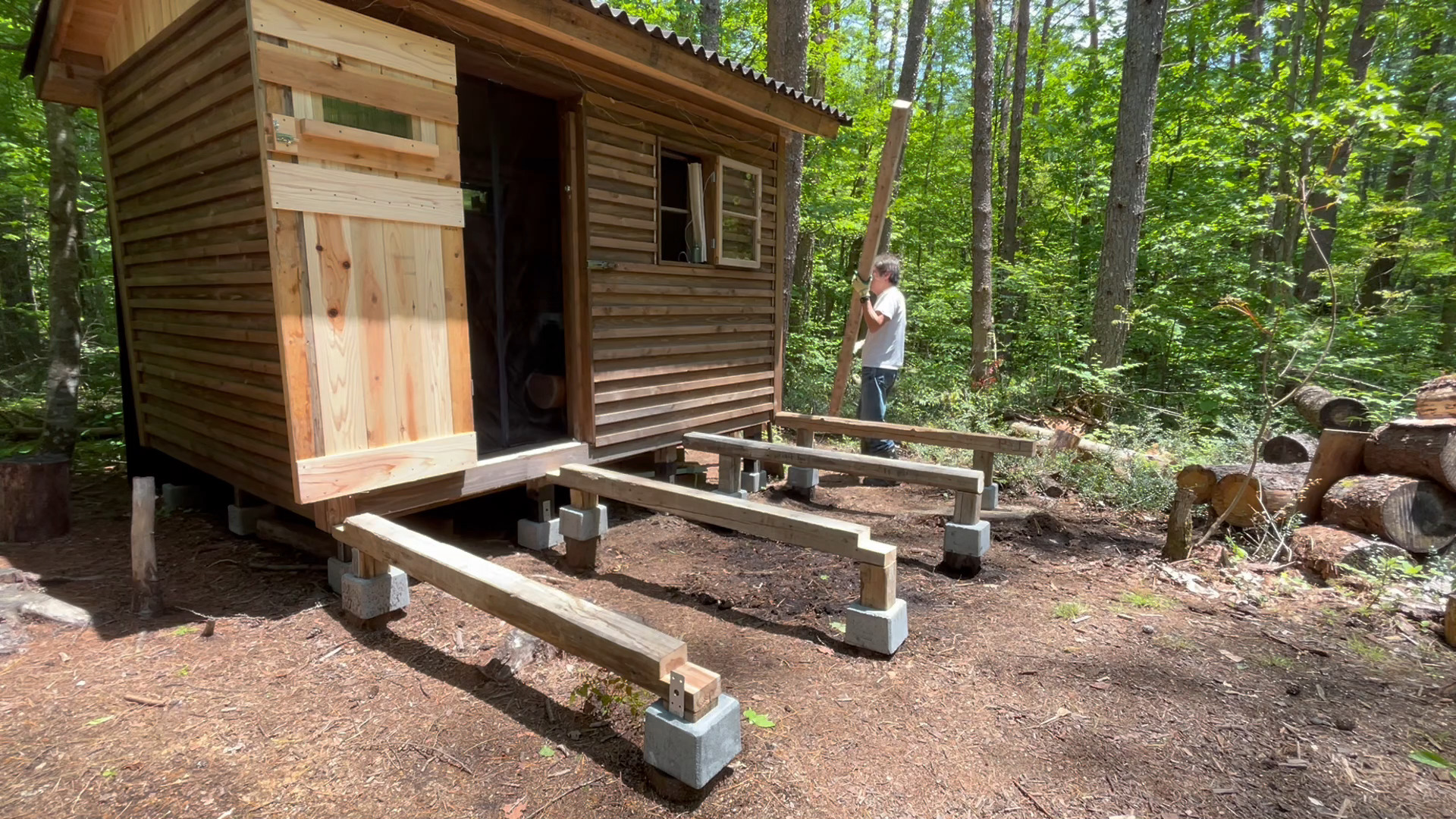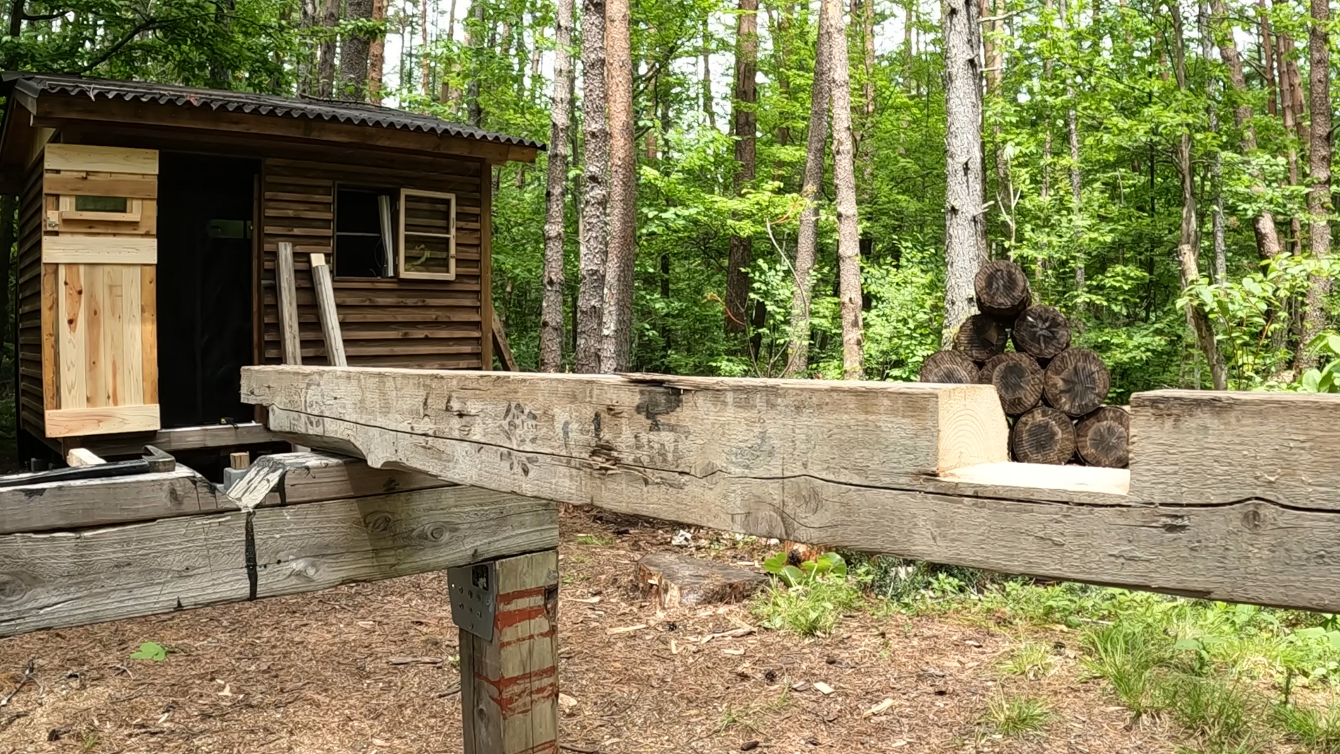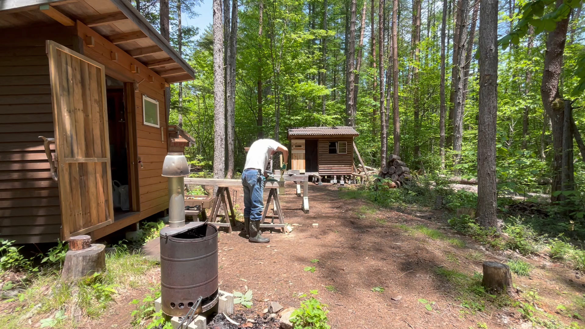 2020年の8月に開拓をスタートして、物置小屋、薪棚、雨水貯水システム、そして小さな小さな山小屋を建てました。