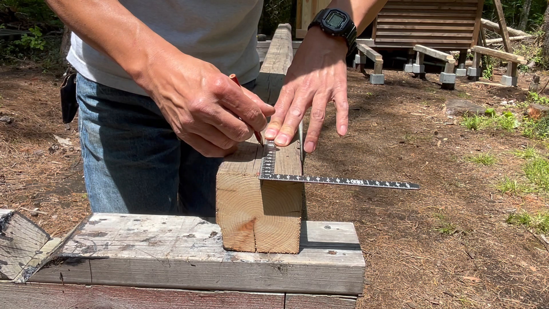 次にさっき用意したバタ角を置いて切り欠き部分を確認します。
