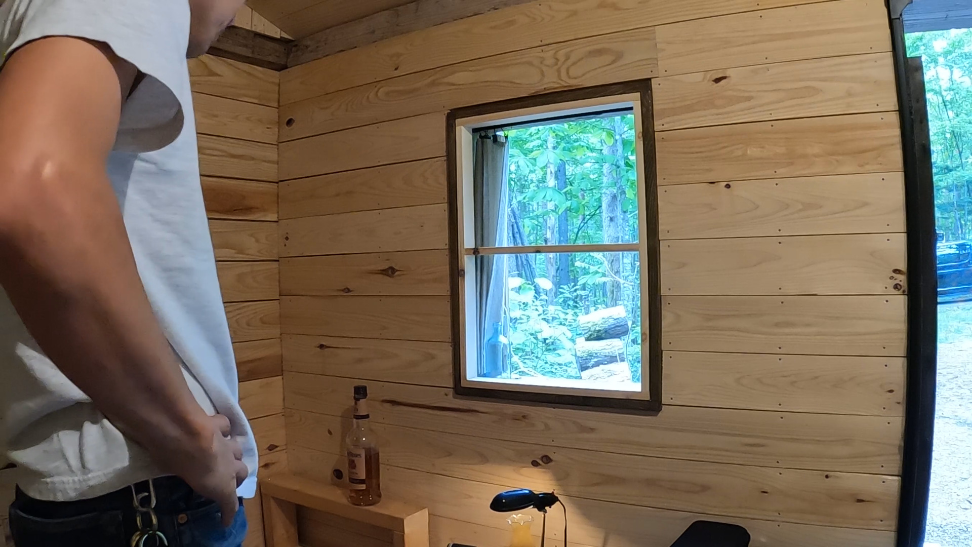 自作の山小屋には出入り口の扉と後は窓が2箇所あります。