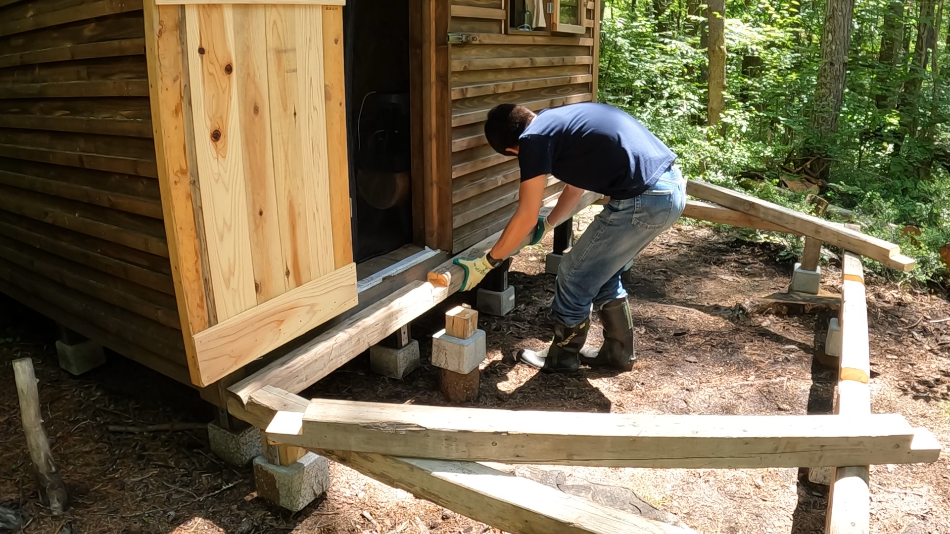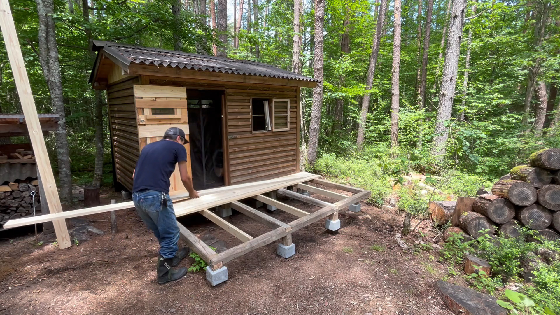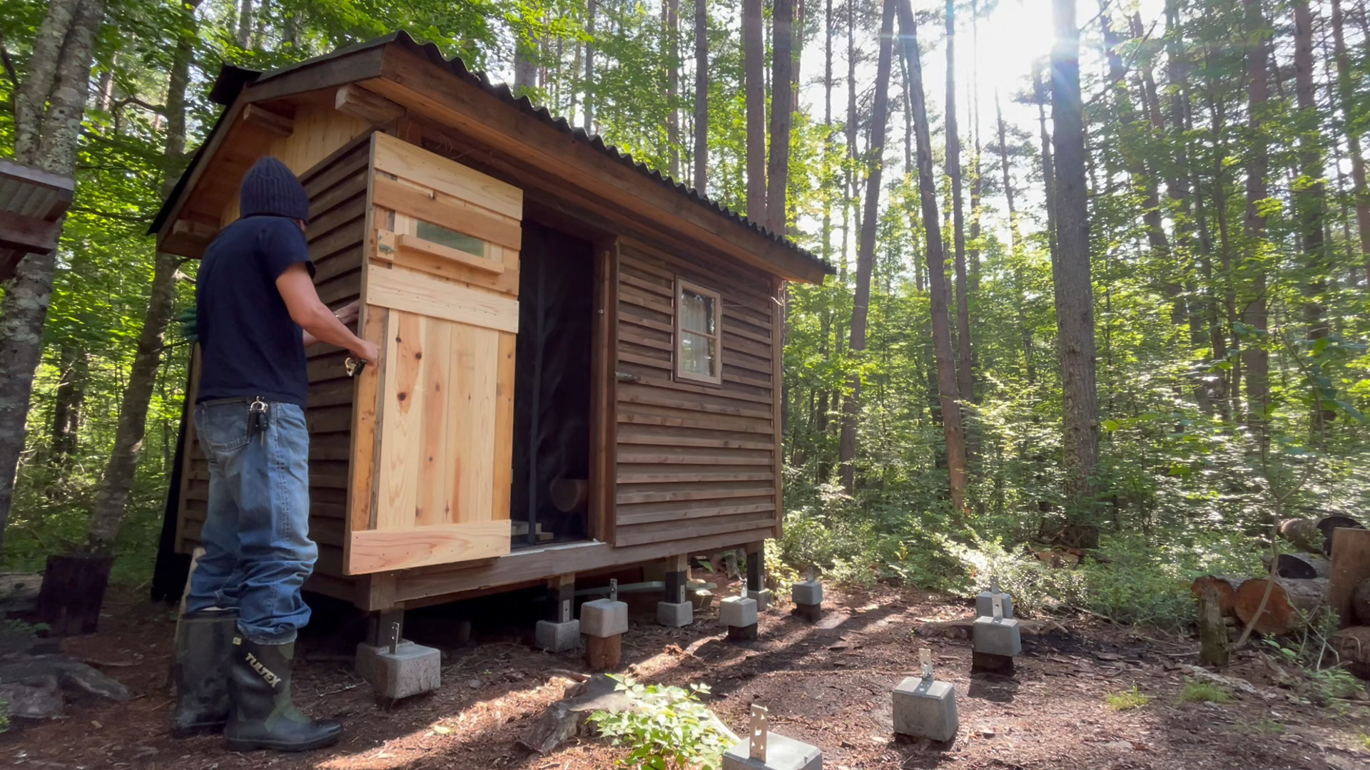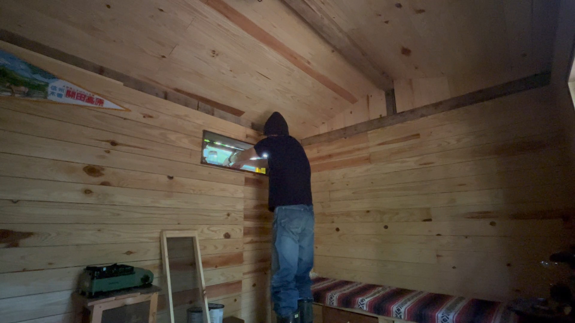 2020年の8月に開拓をスタートして、物置小屋、薪棚、雨水貯水システム、そして小さな小さな山小屋を建てました。