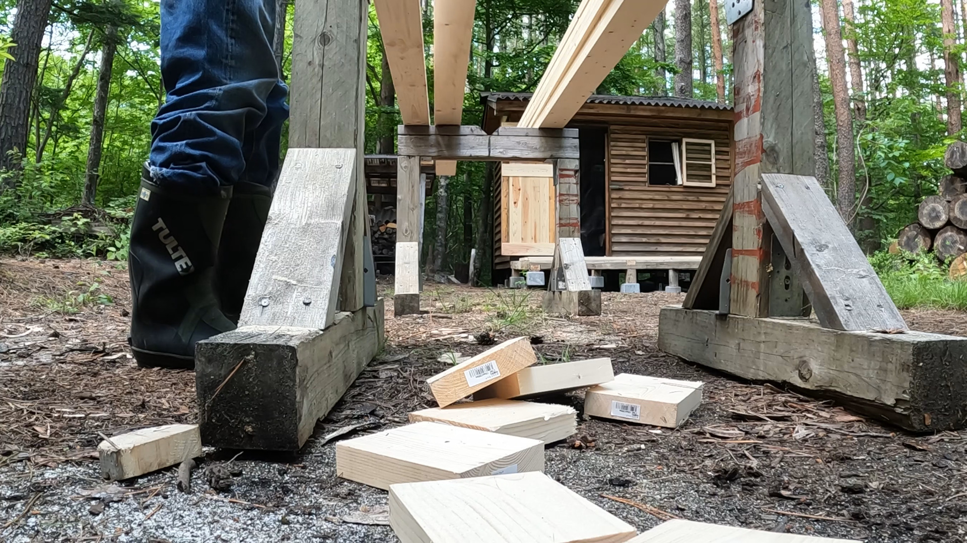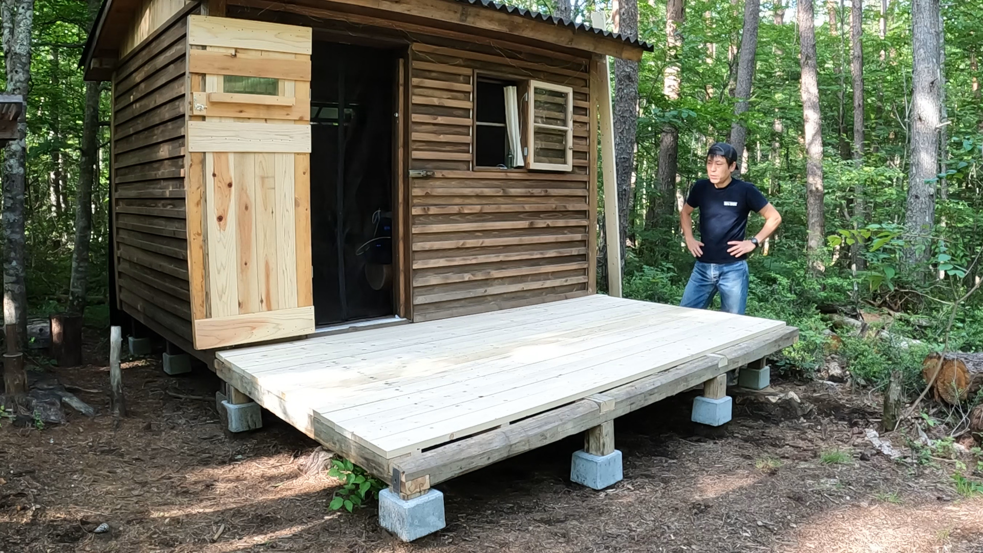 山の中って人工的な水平が無いのでこうやってデッキを作ると水平のありがたみが凄くよくわかりますね。