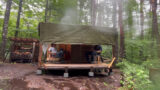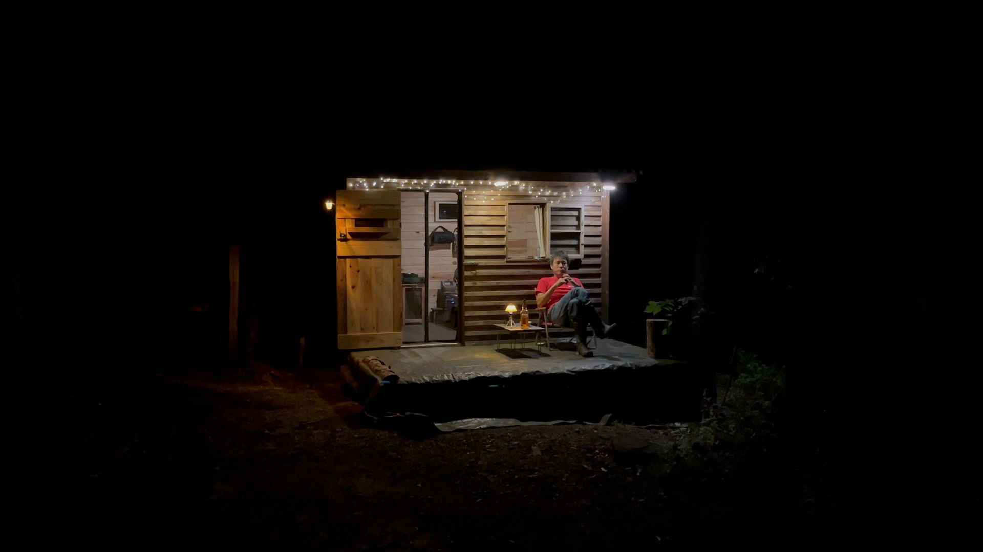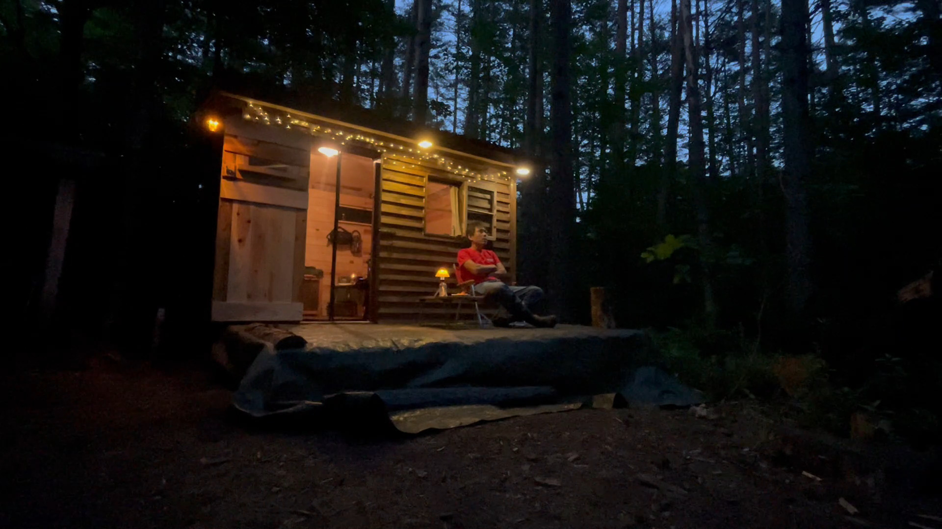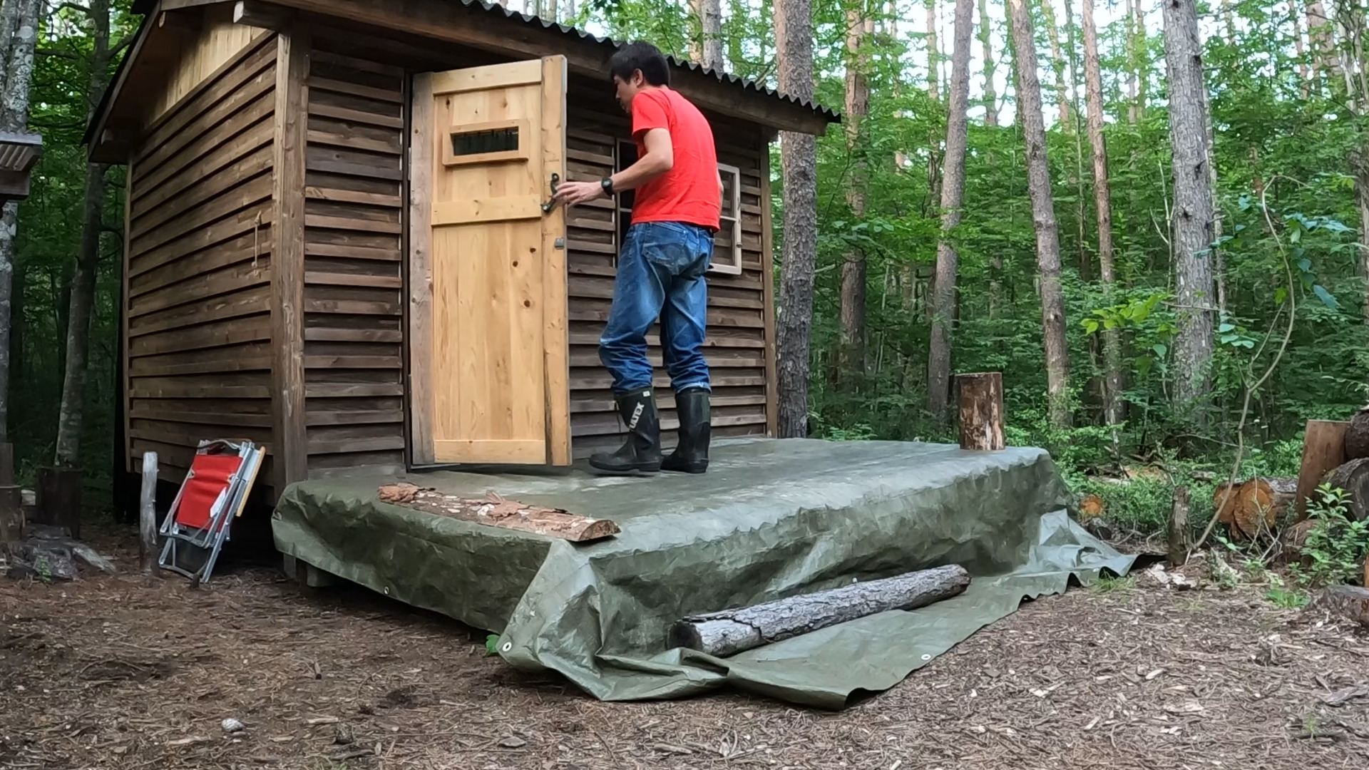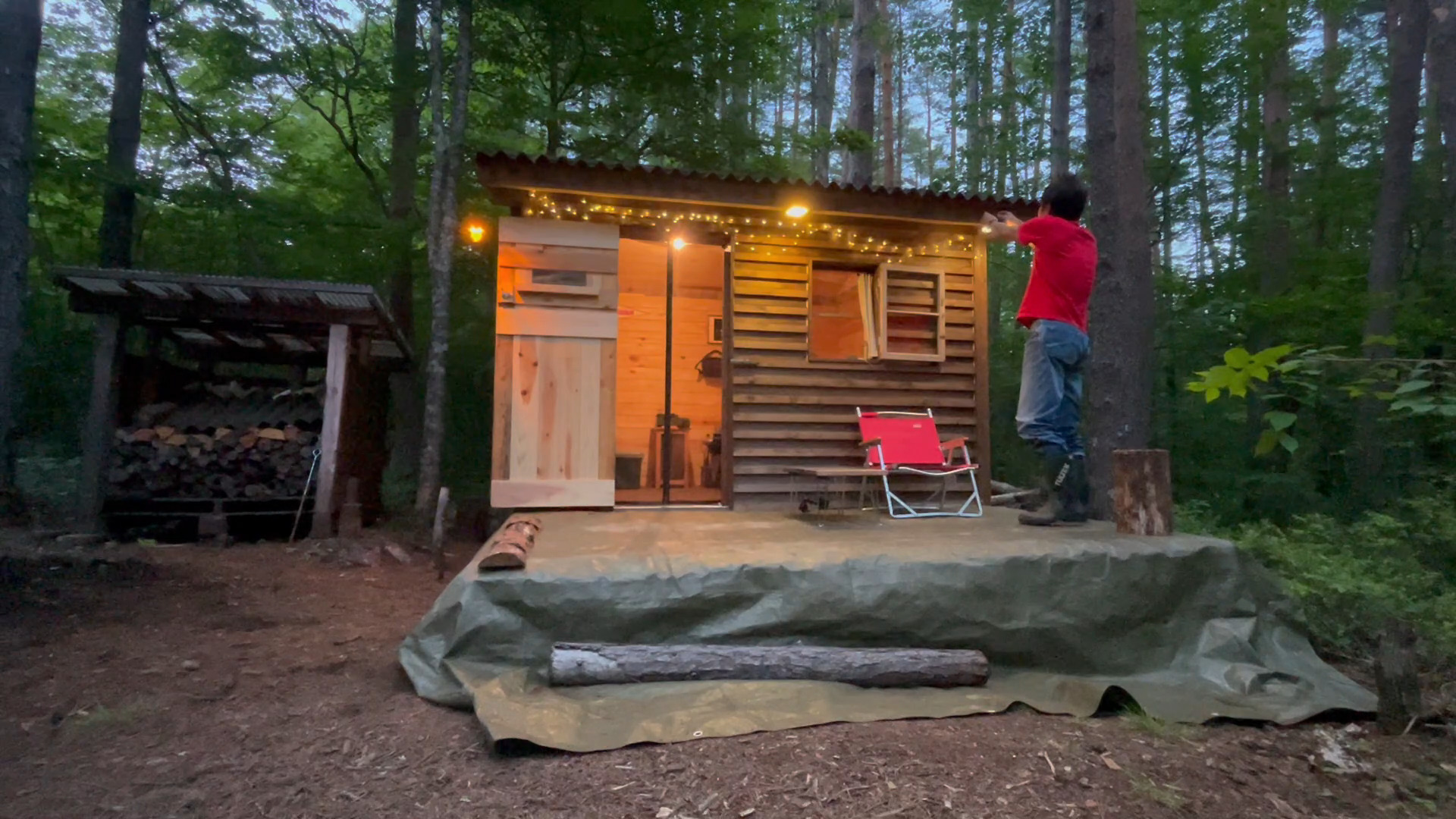 2020年の8月に開拓をスタートして、物置小屋、薪棚、雨水貯水システム、そして小さな小さな山小屋を建てました。