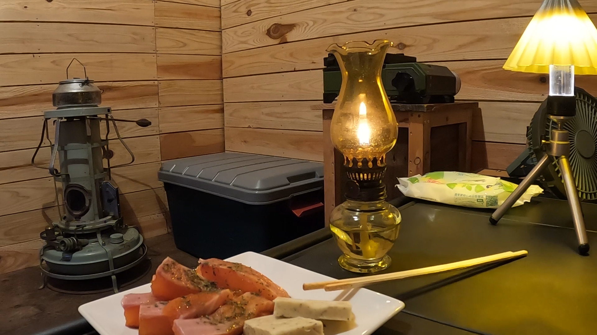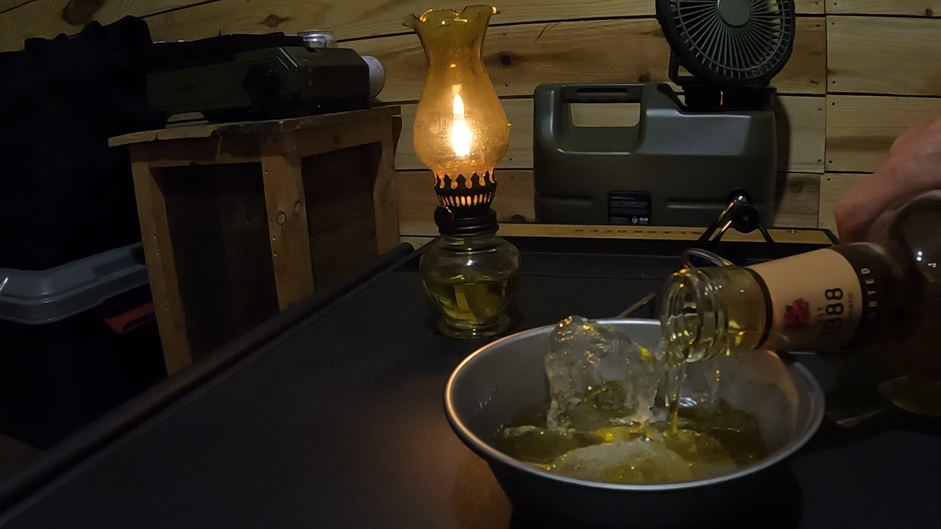 お気に入りのオイルランタンにも火を灯して雰囲気アップを図ります。