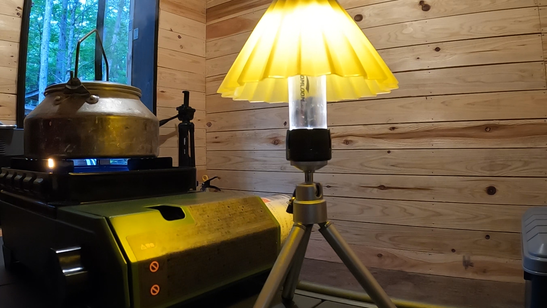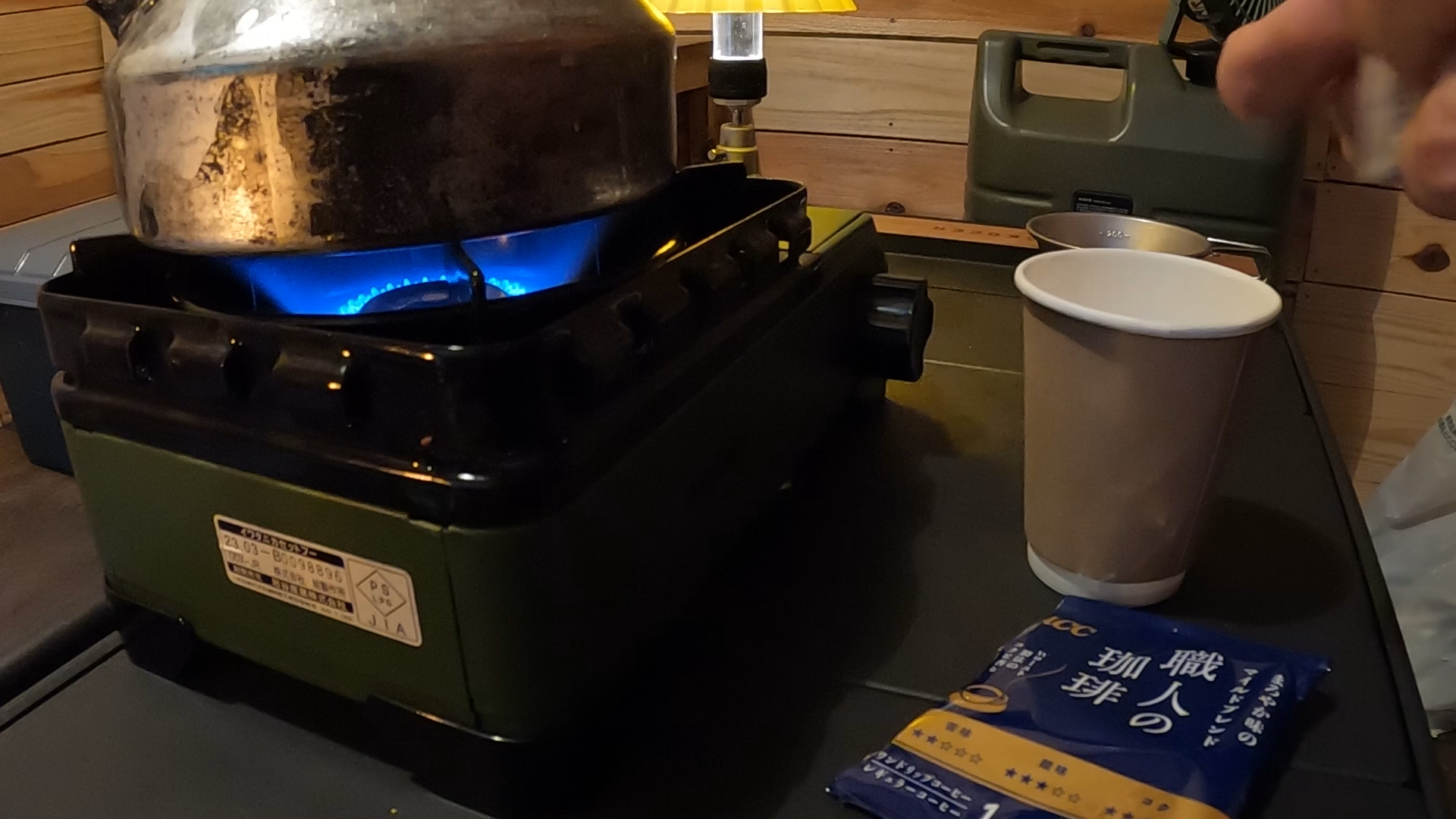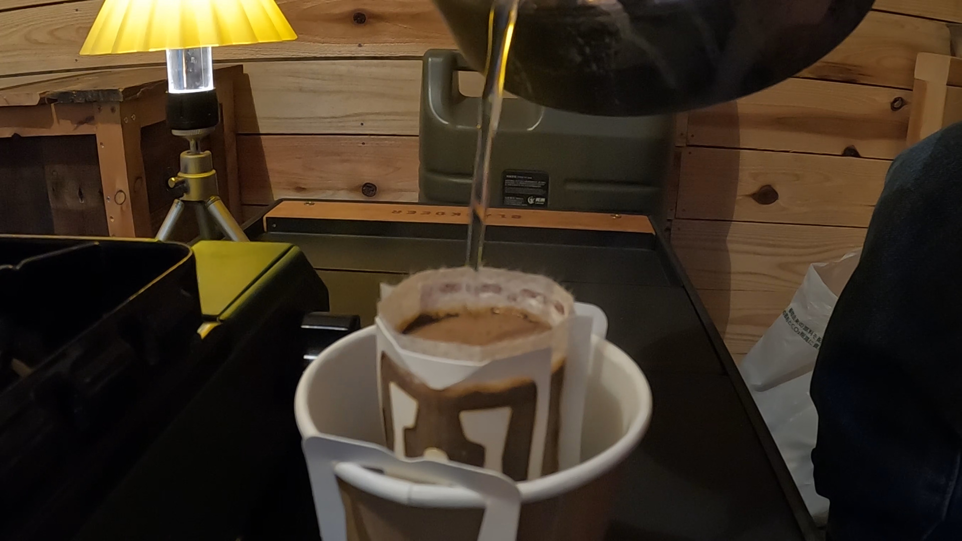 ニューアイテムのコーヒードリッパーを使ったテーブルランタンが夜の山小屋を彩ります。