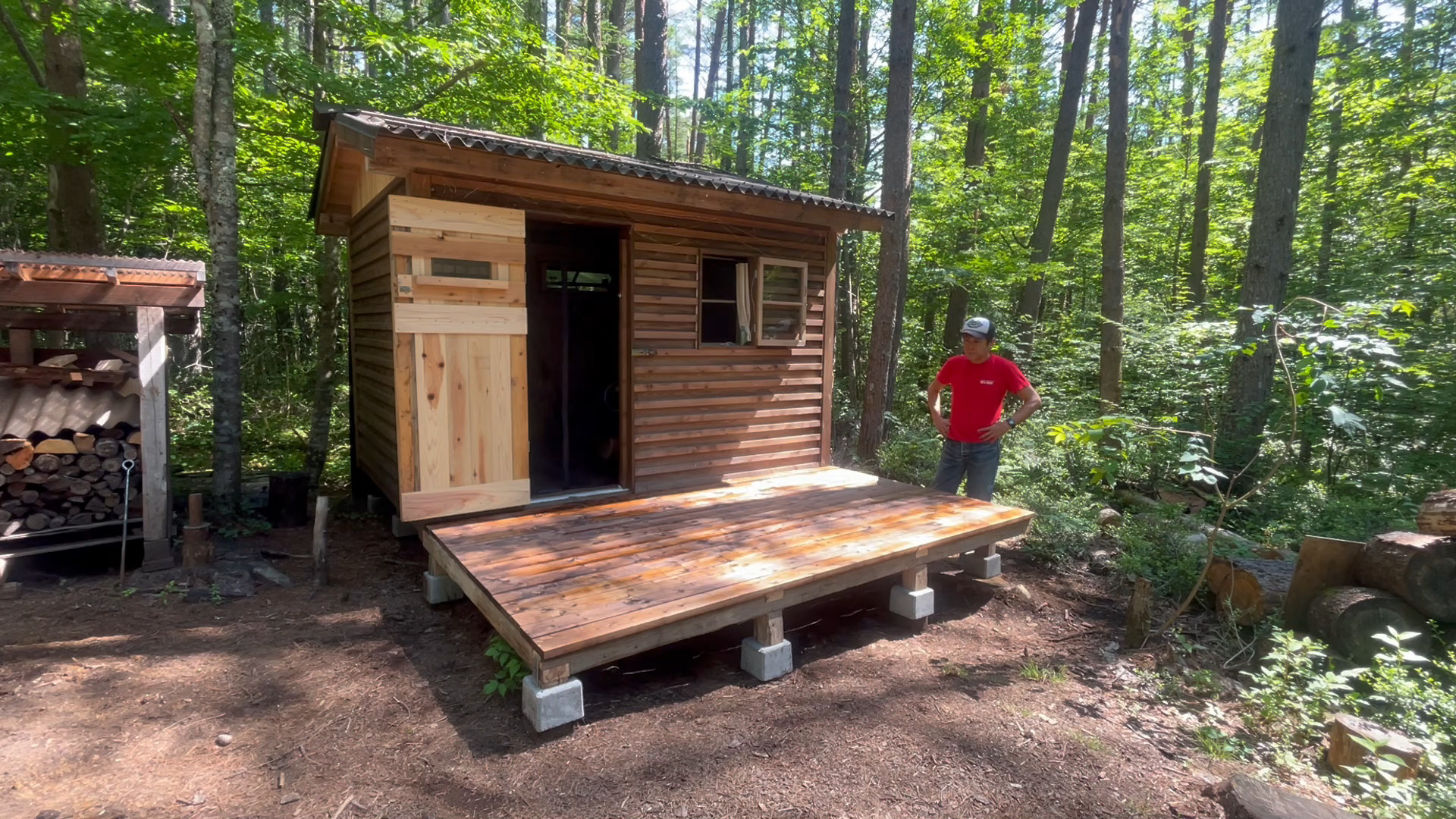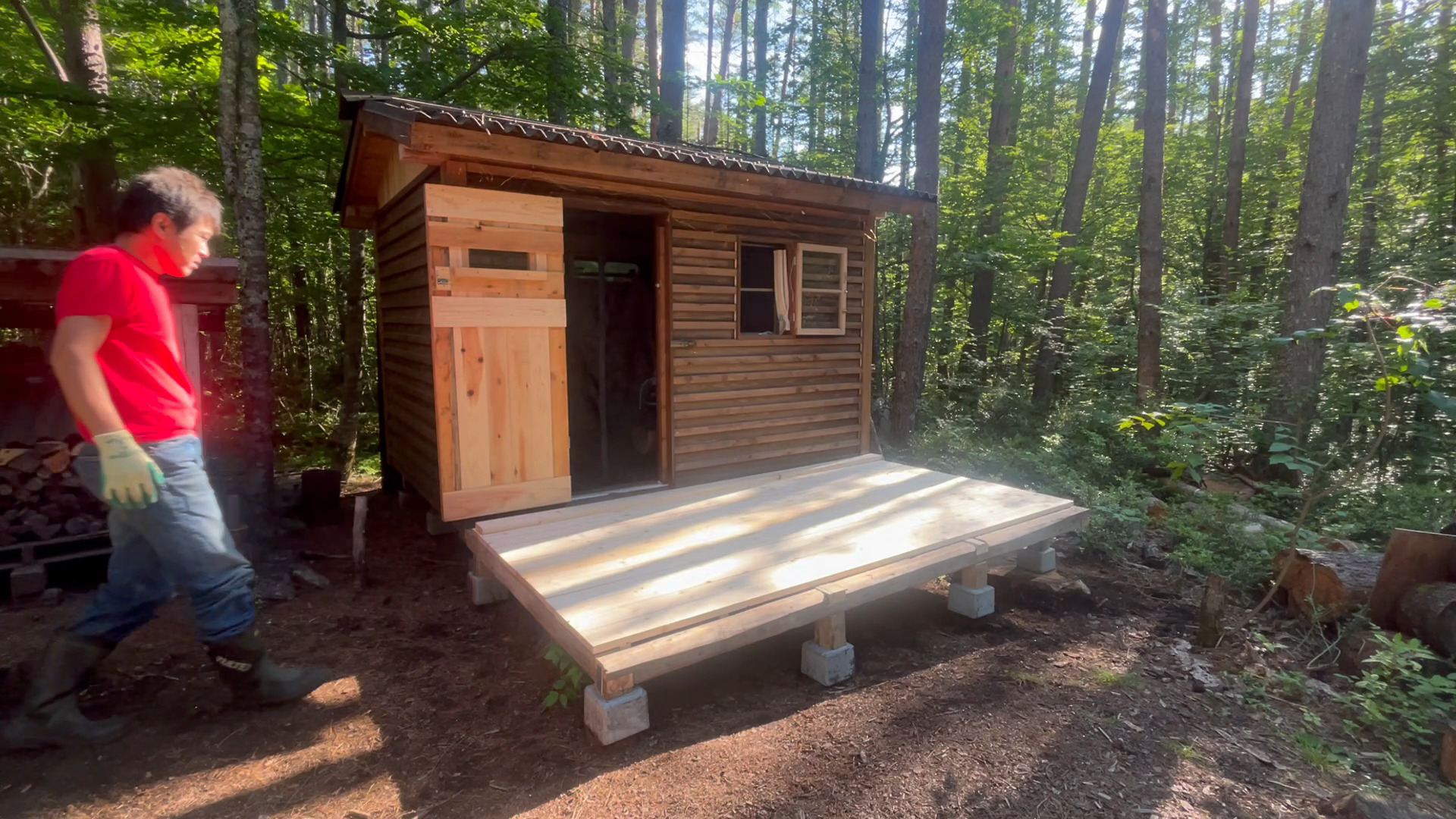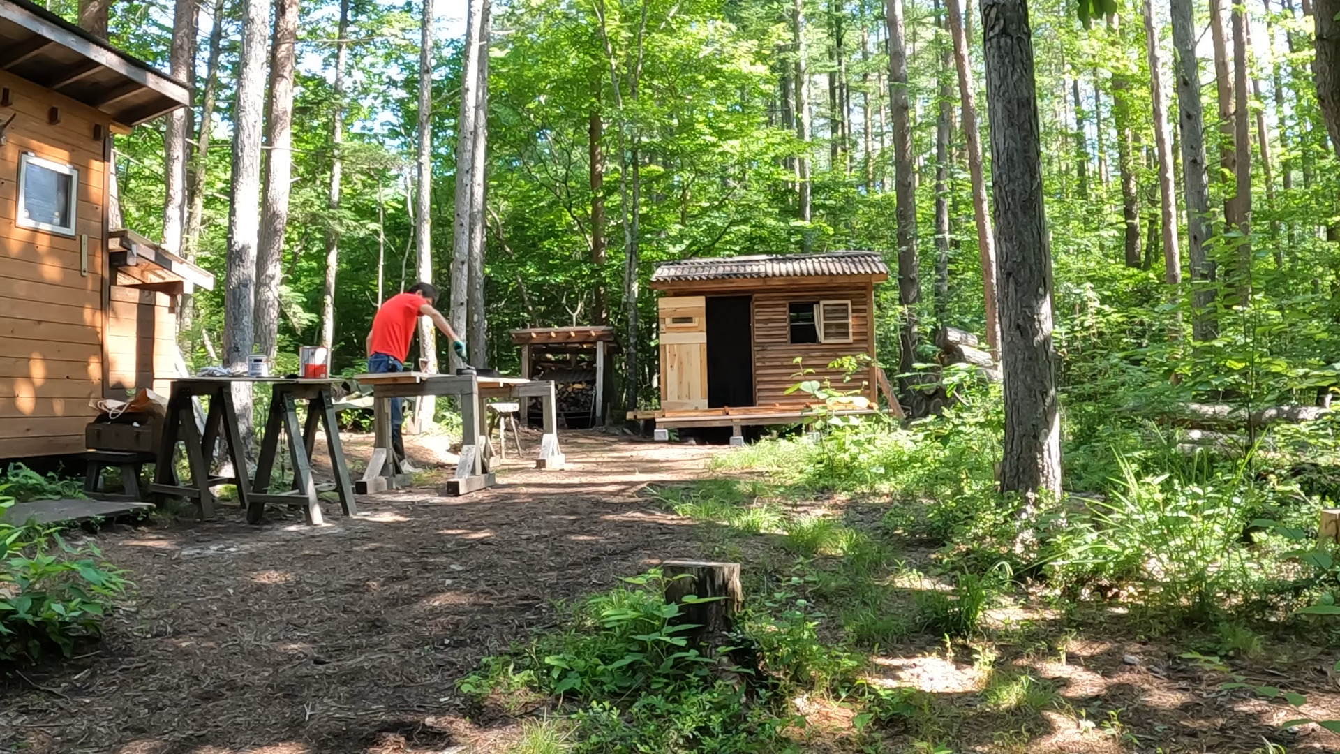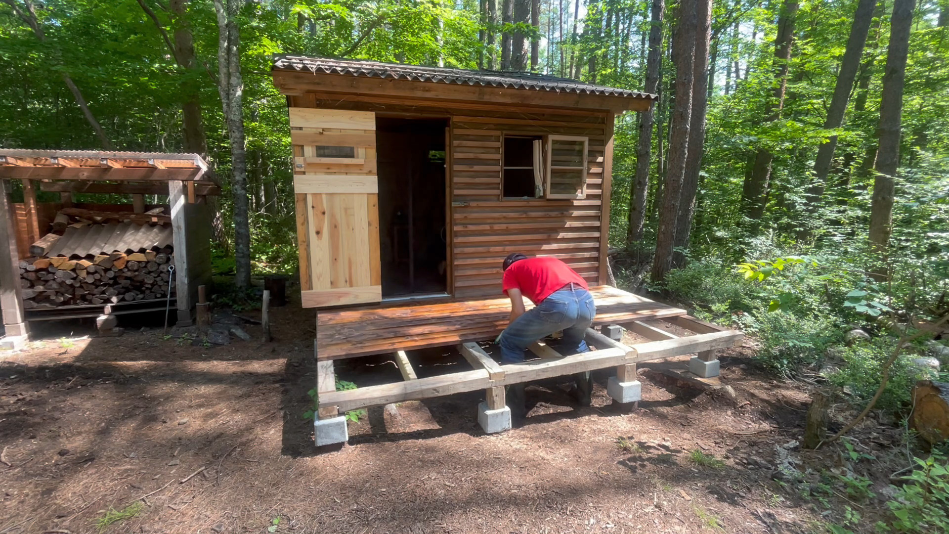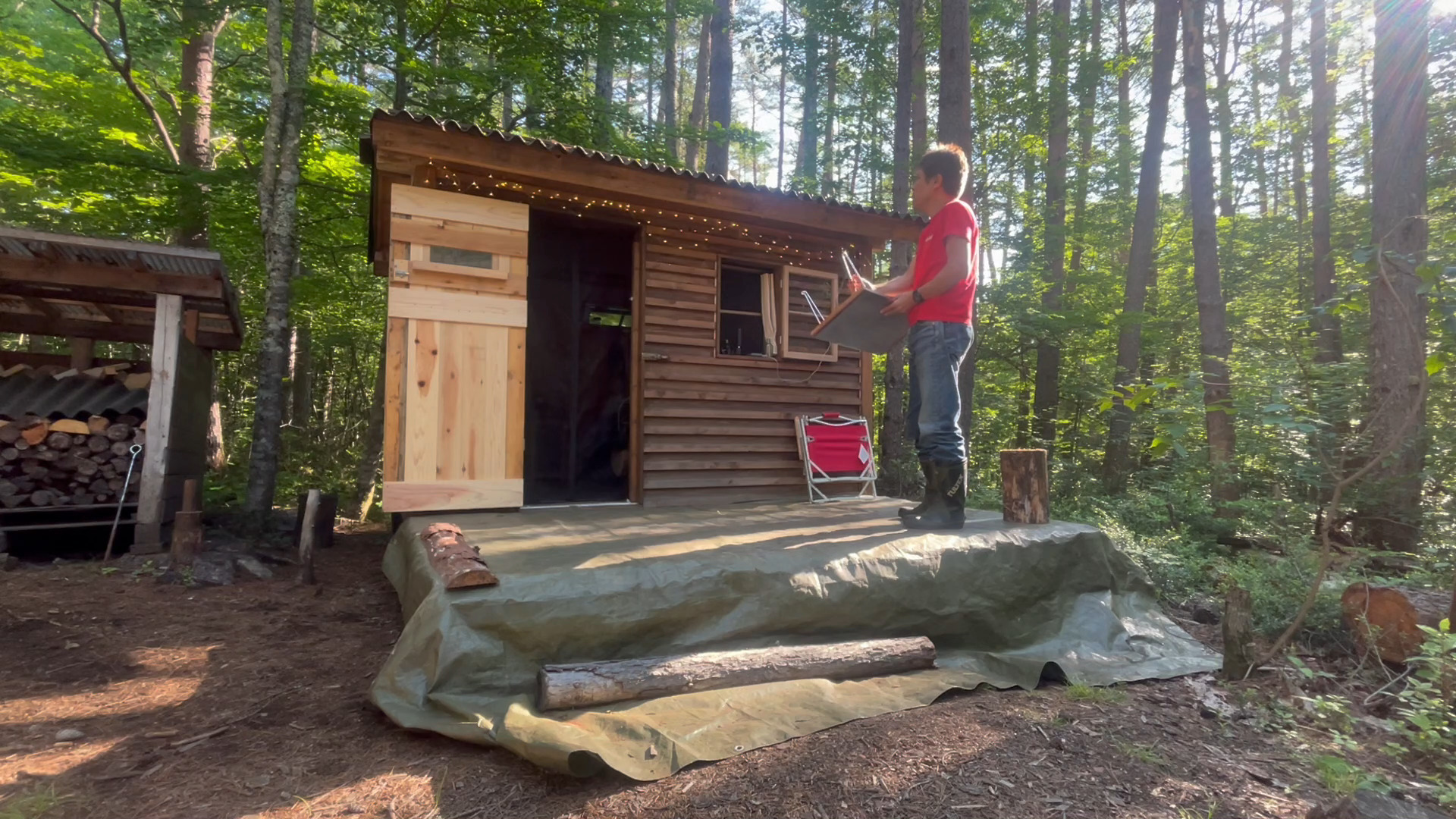 2020年の8月に開拓をスタートして、物置小屋、薪棚、雨水貯水システム、そして寝泊まり出来る小さな小さな山小屋を建てました。