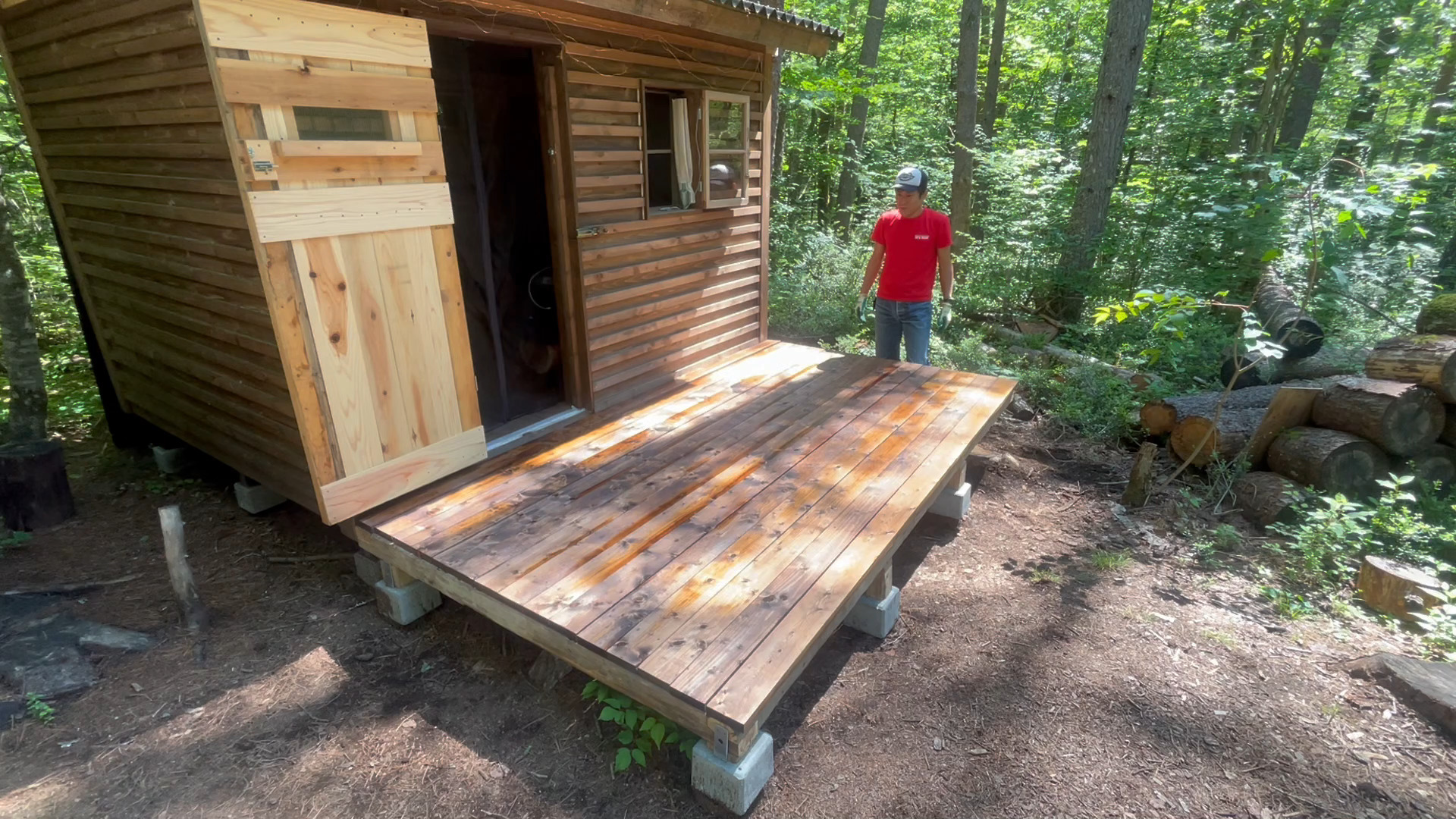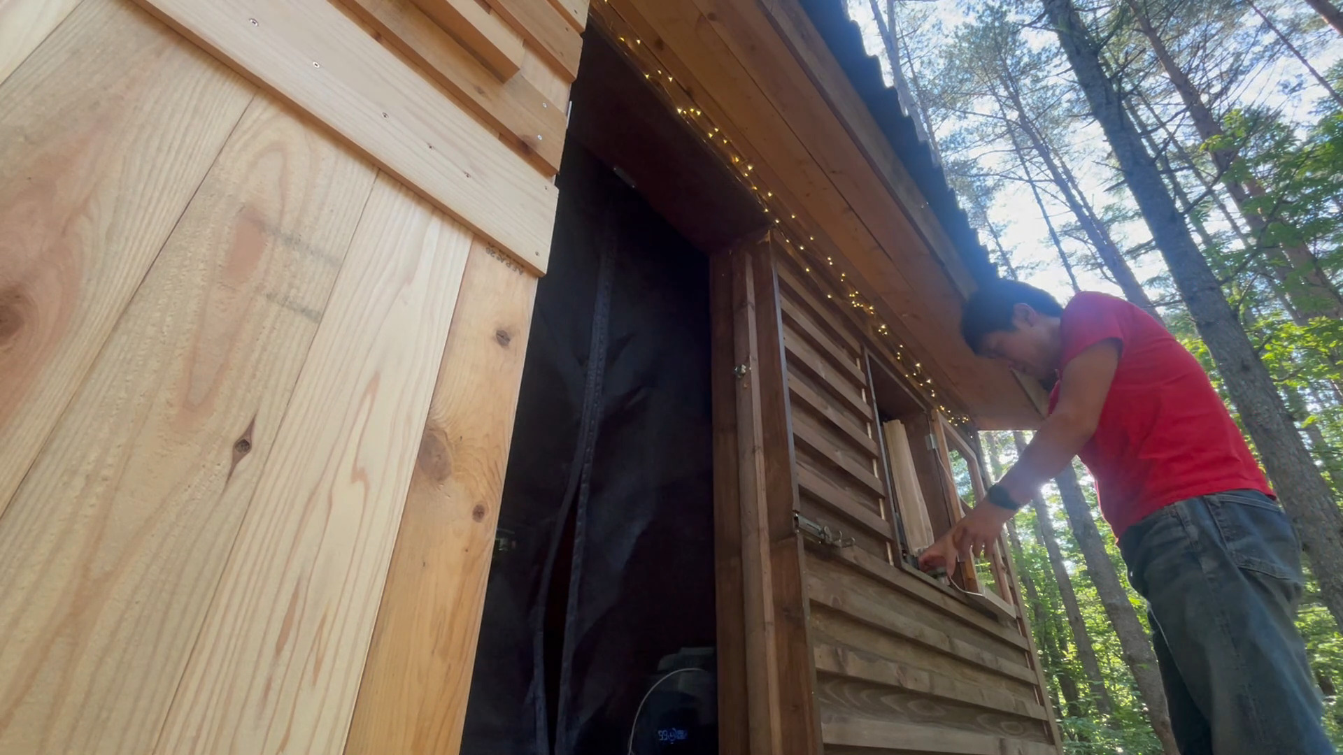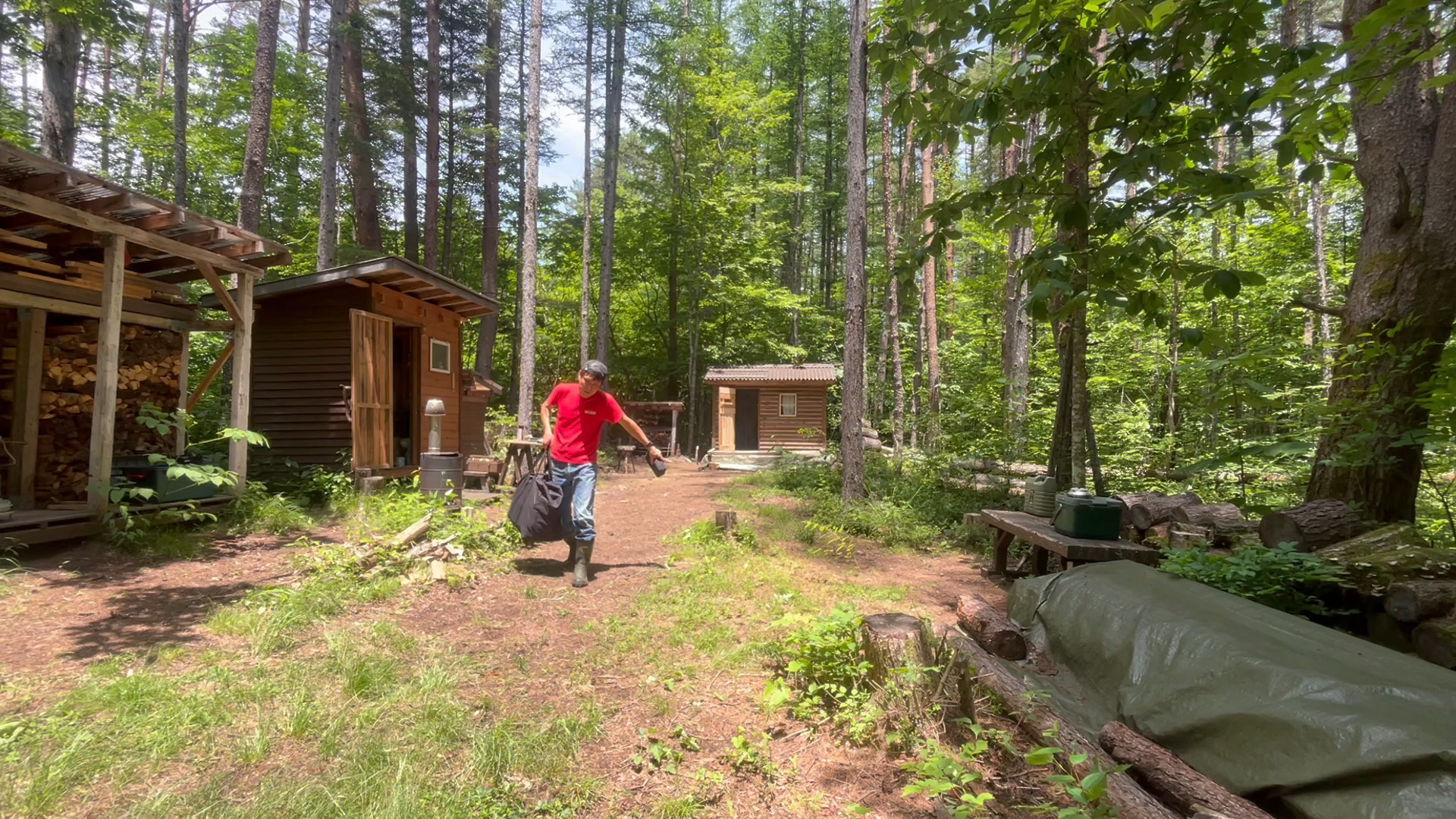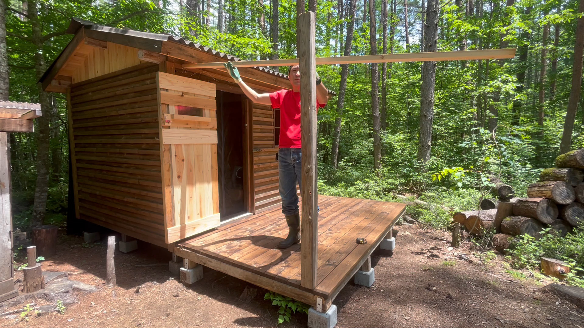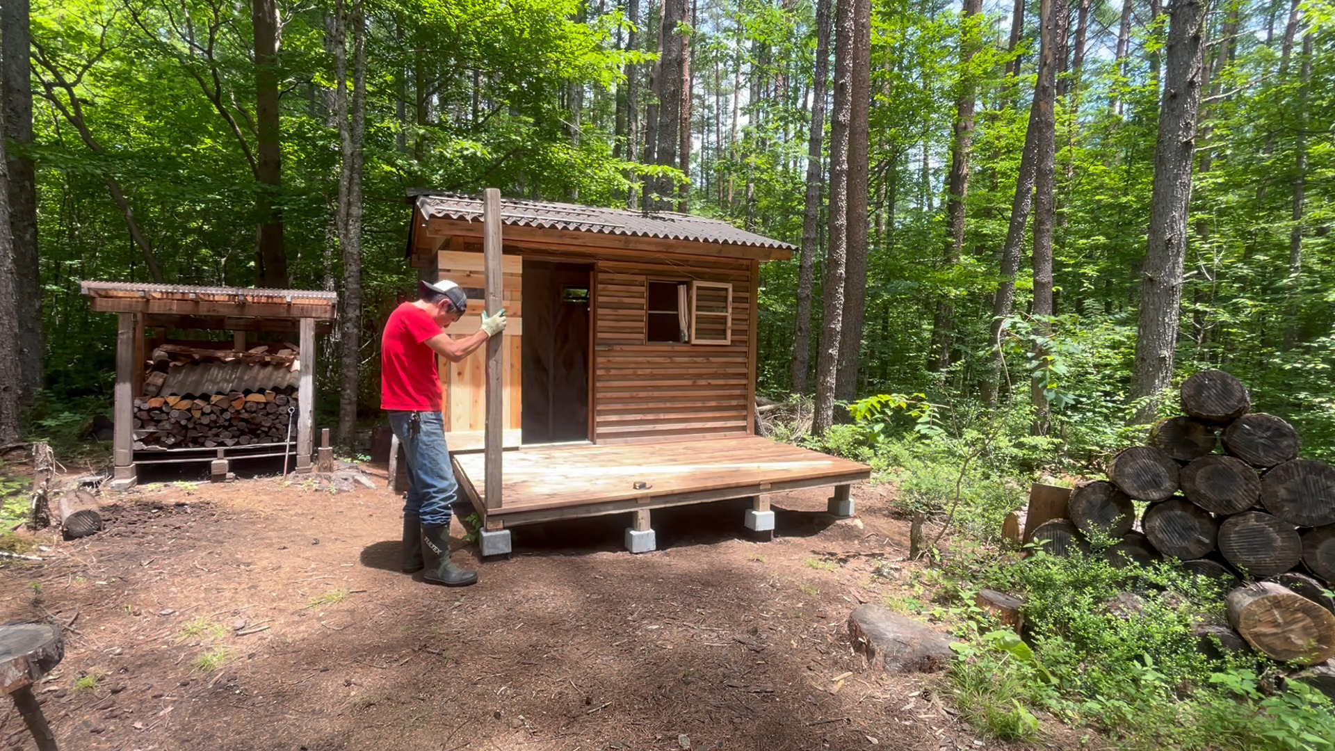 2020年の8月に開拓をスタートして、物置小屋、薪棚、雨水貯水システム、そして寝泊まり出来る小さな小さな山小屋を建てました。