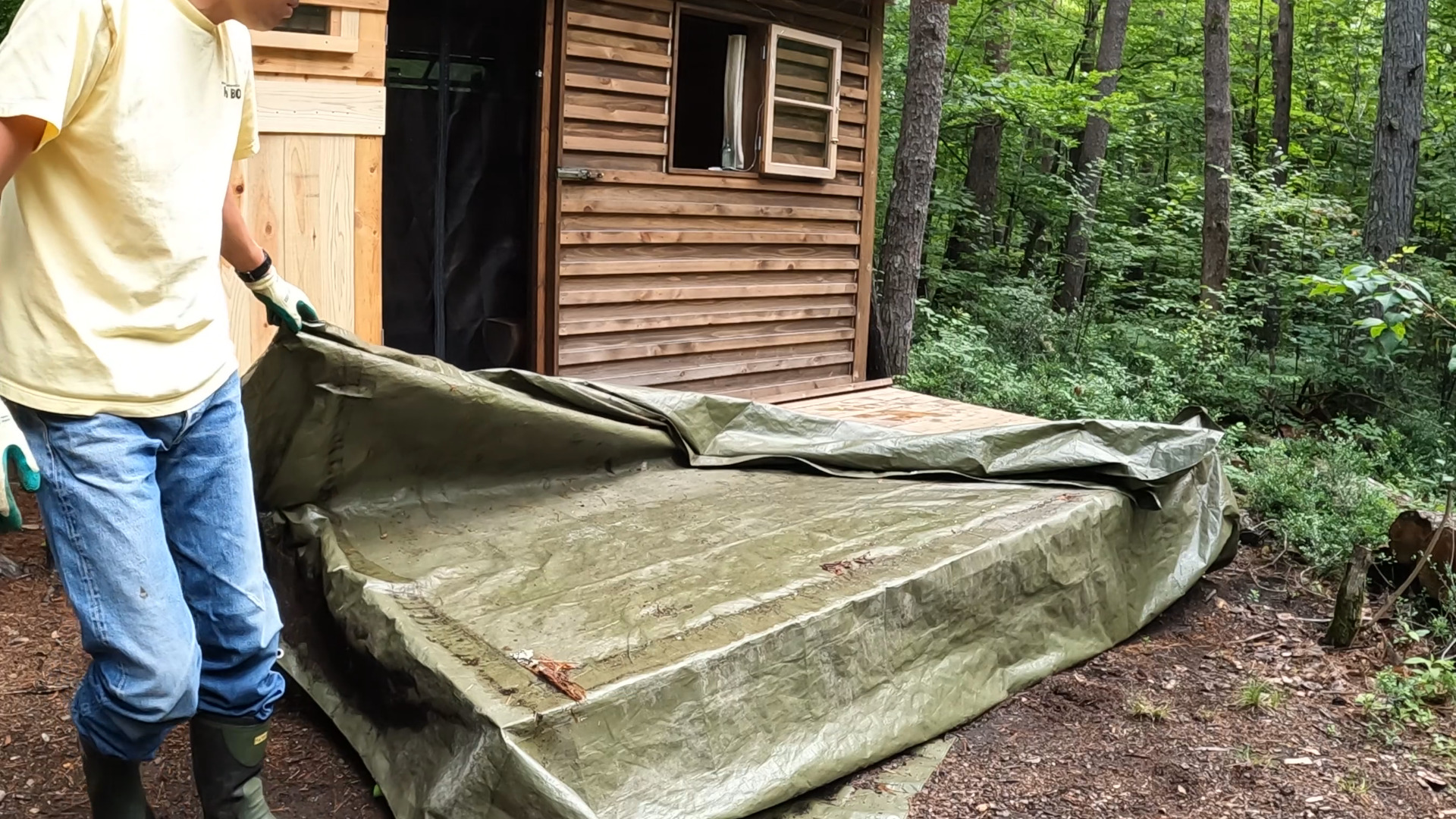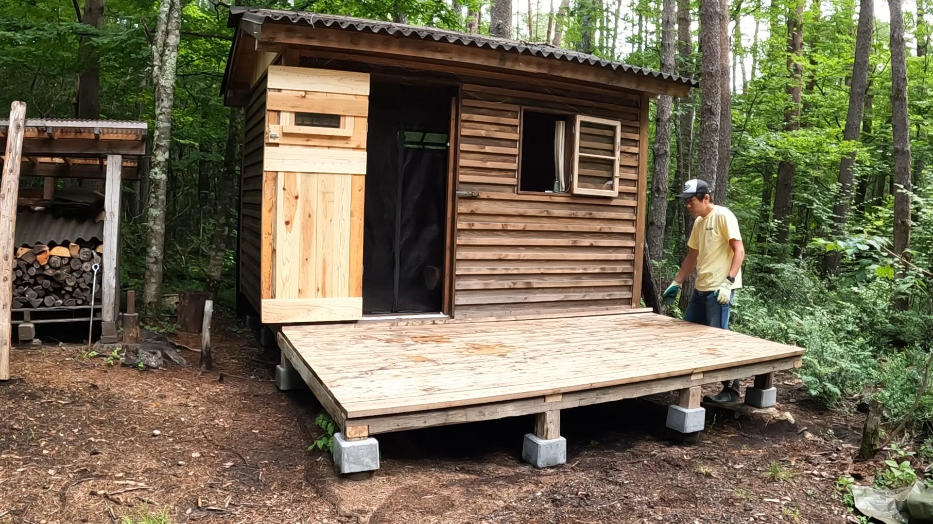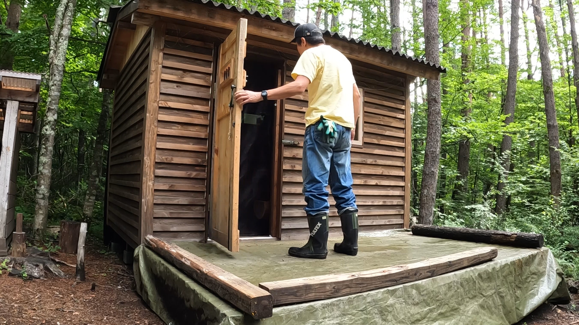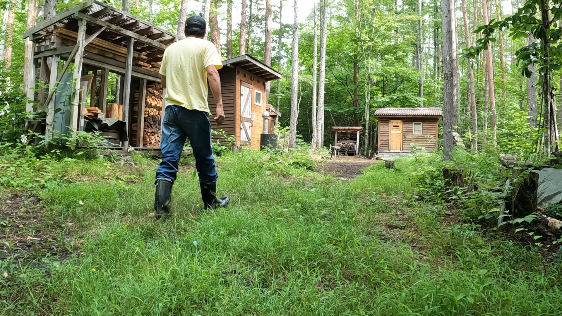 2020年の8月に開拓をスタートして、物置小屋、薪棚、雨水貯水システム、そして寝泊まり出来る小さな小さな山小屋を建てました。