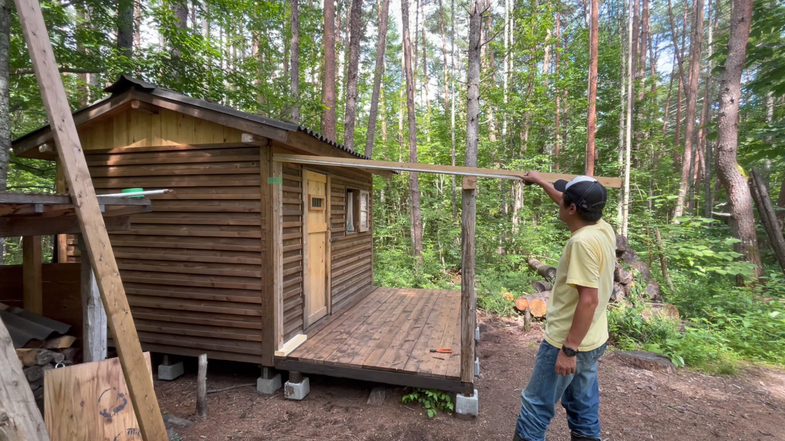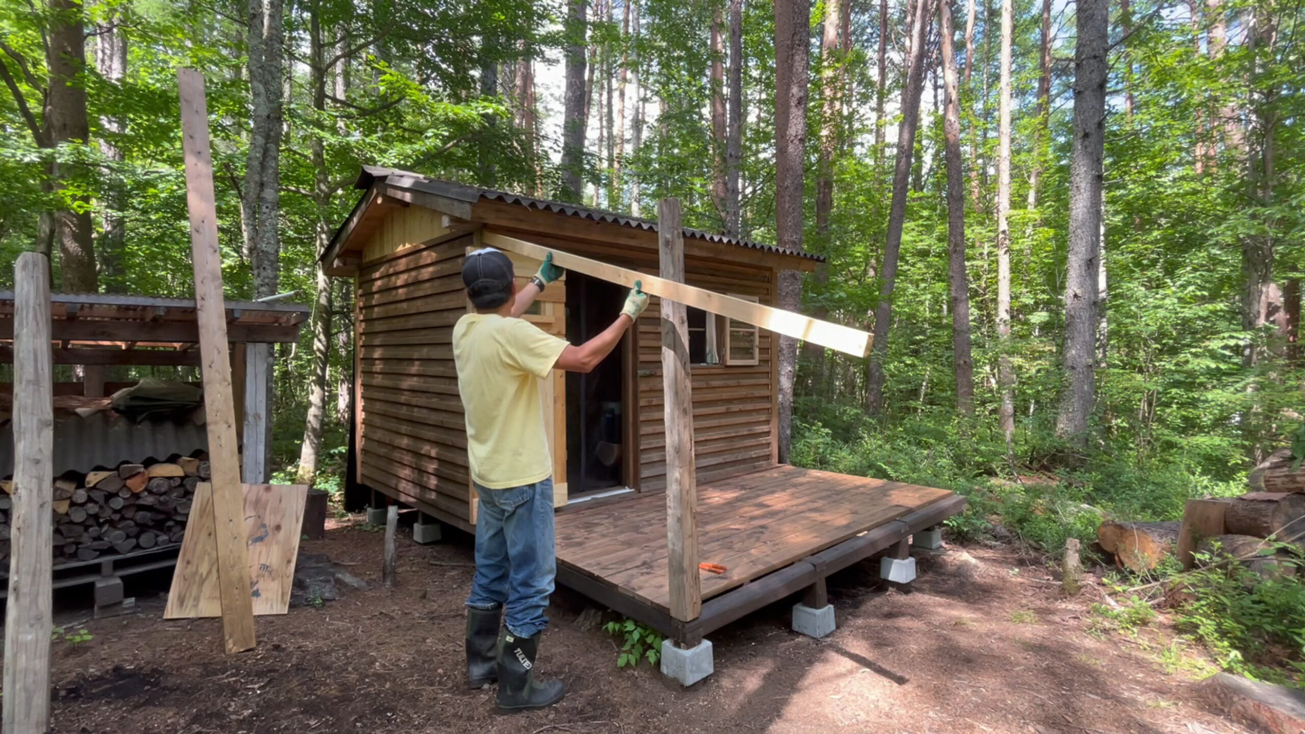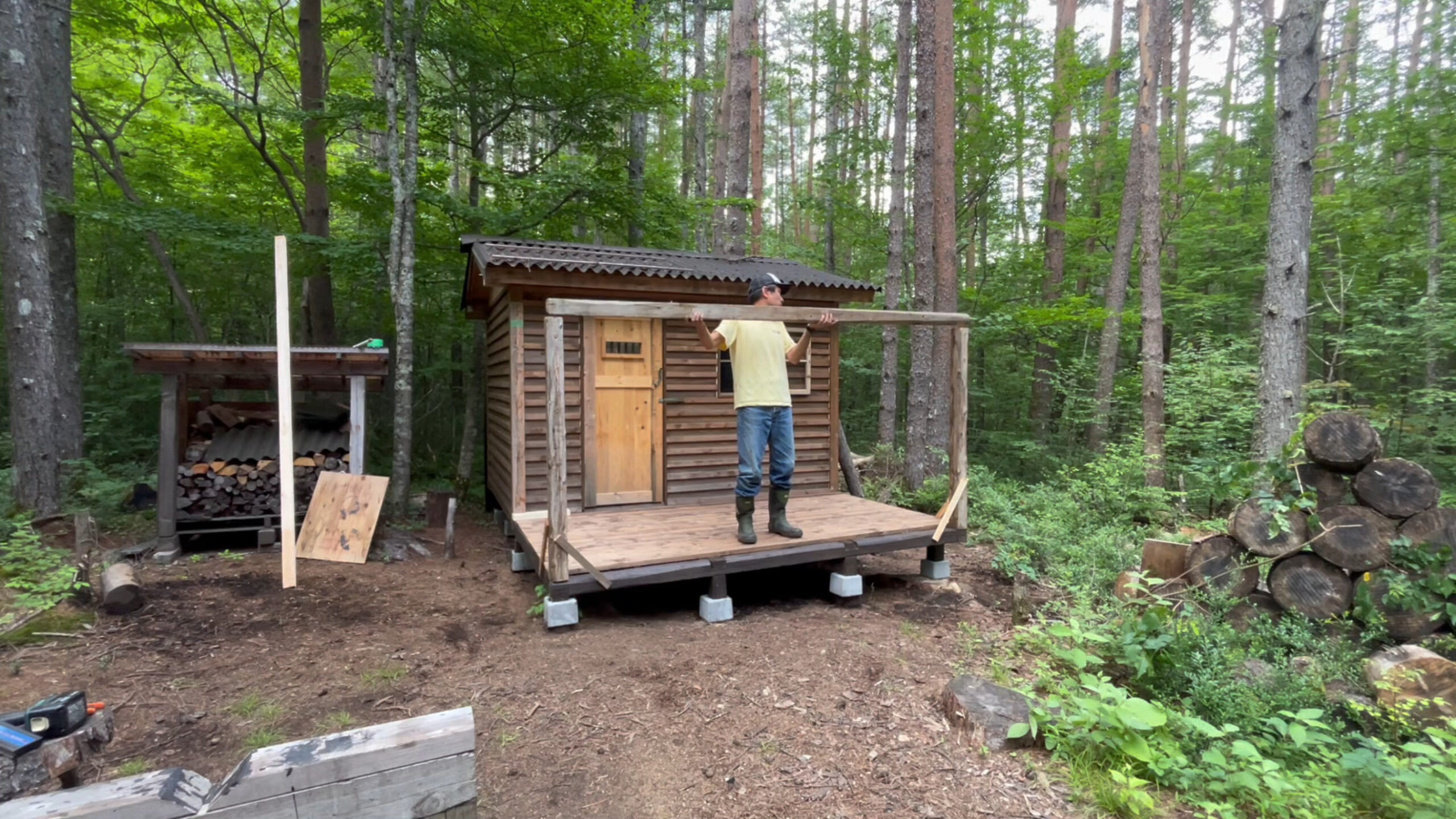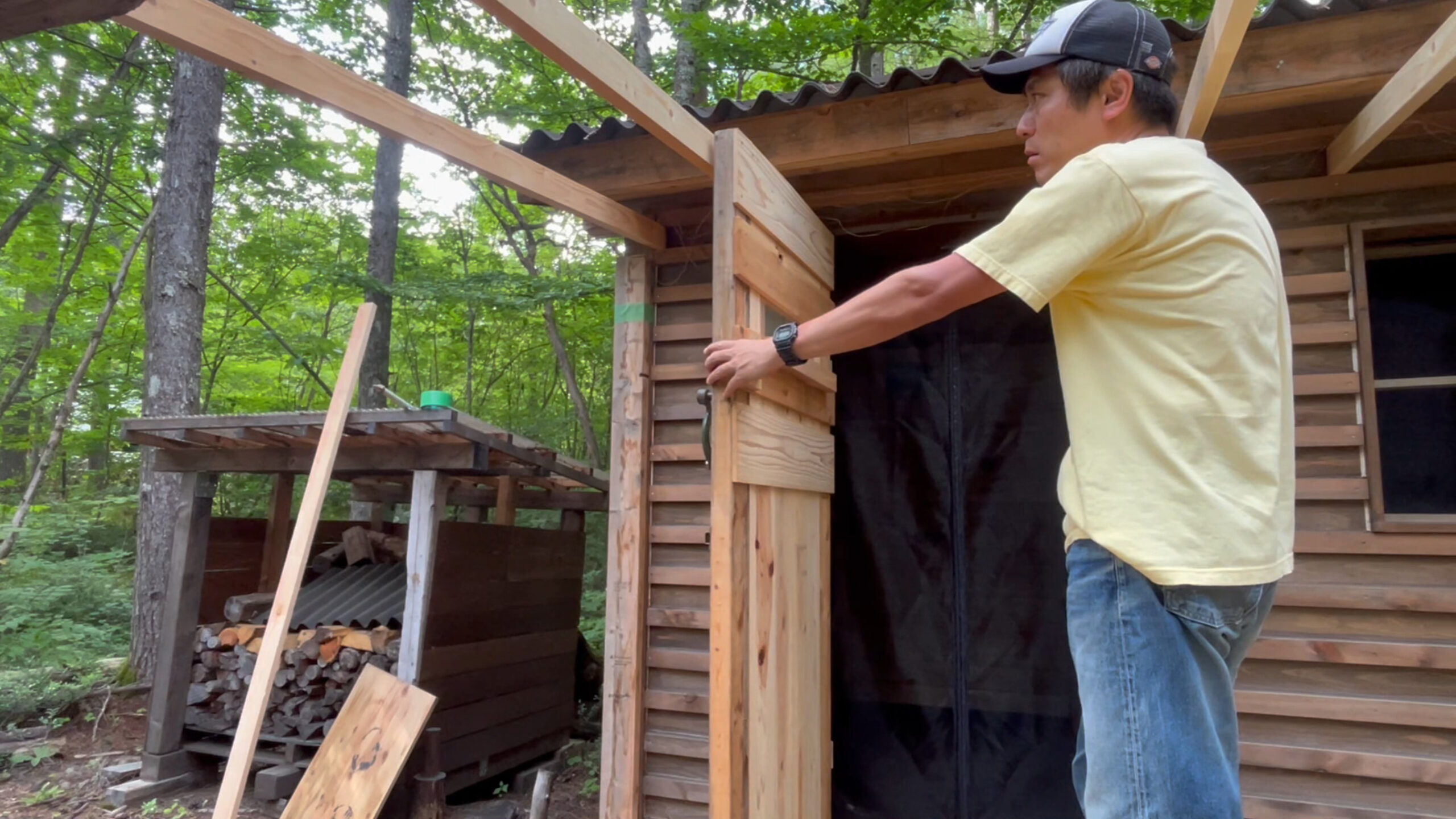 2020年の8月に開拓をスタートして、物置小屋、薪棚、雨水貯水システム、そして寝泊まり出来る小さな小さな山小屋を建てました。