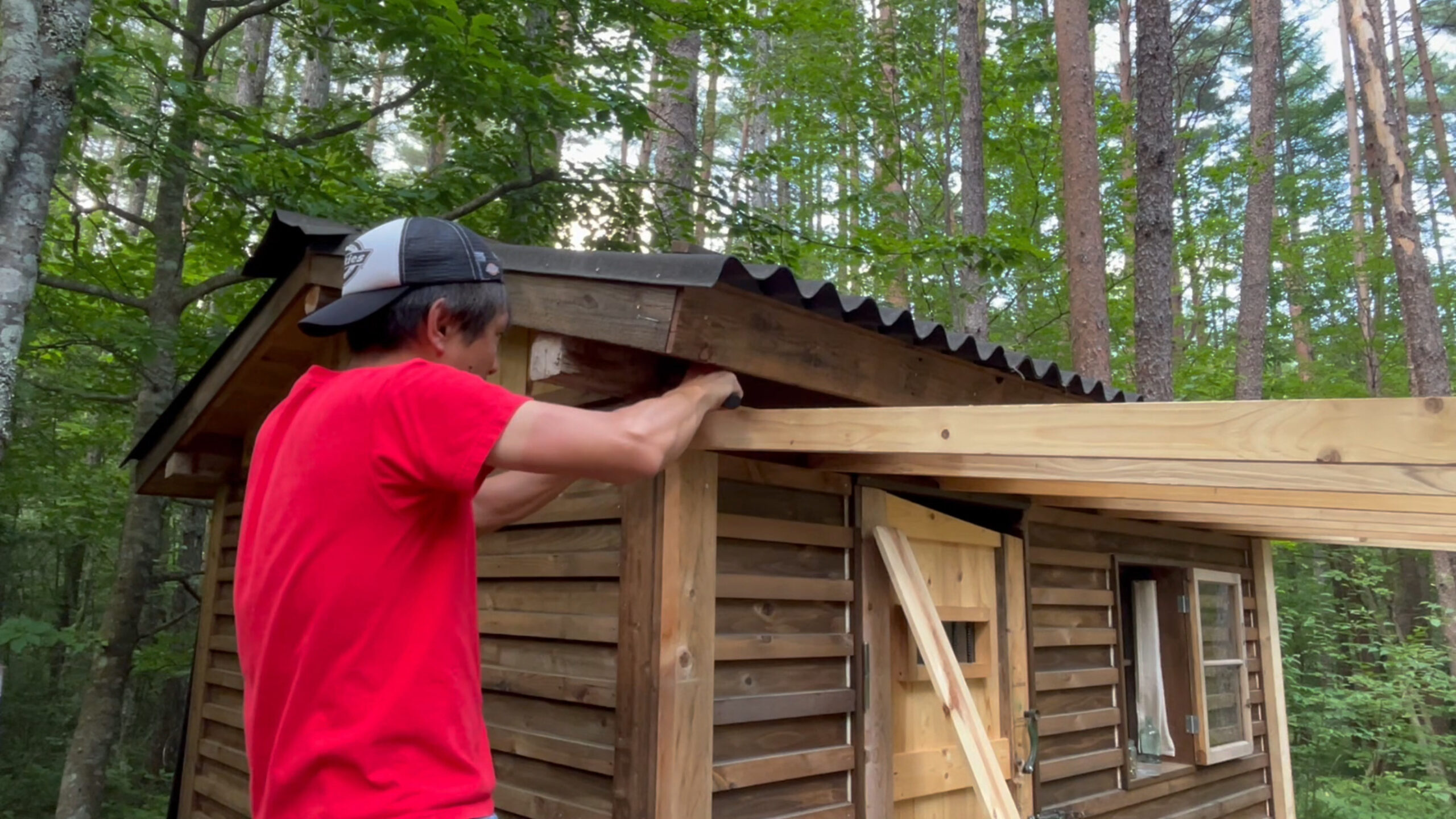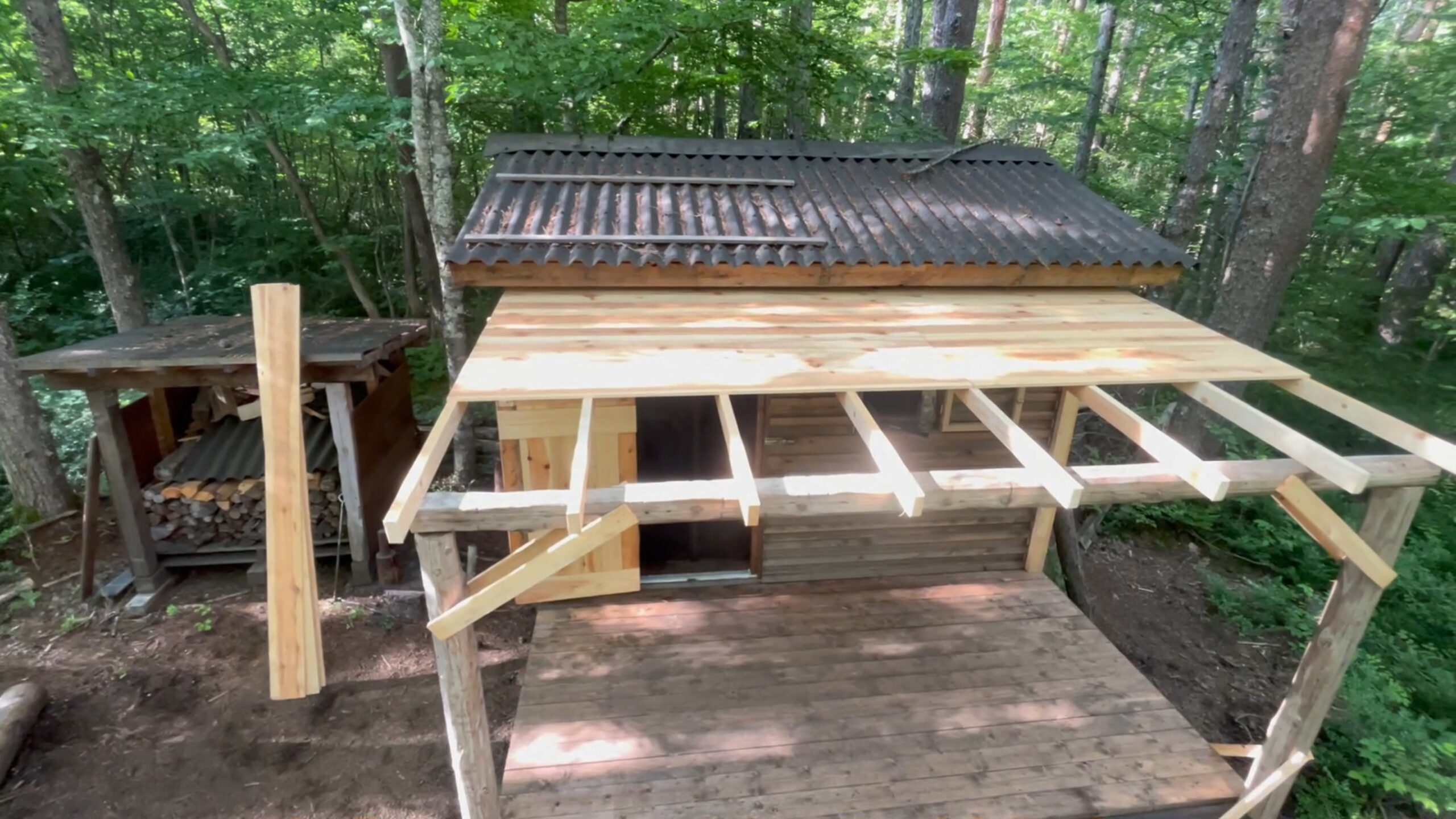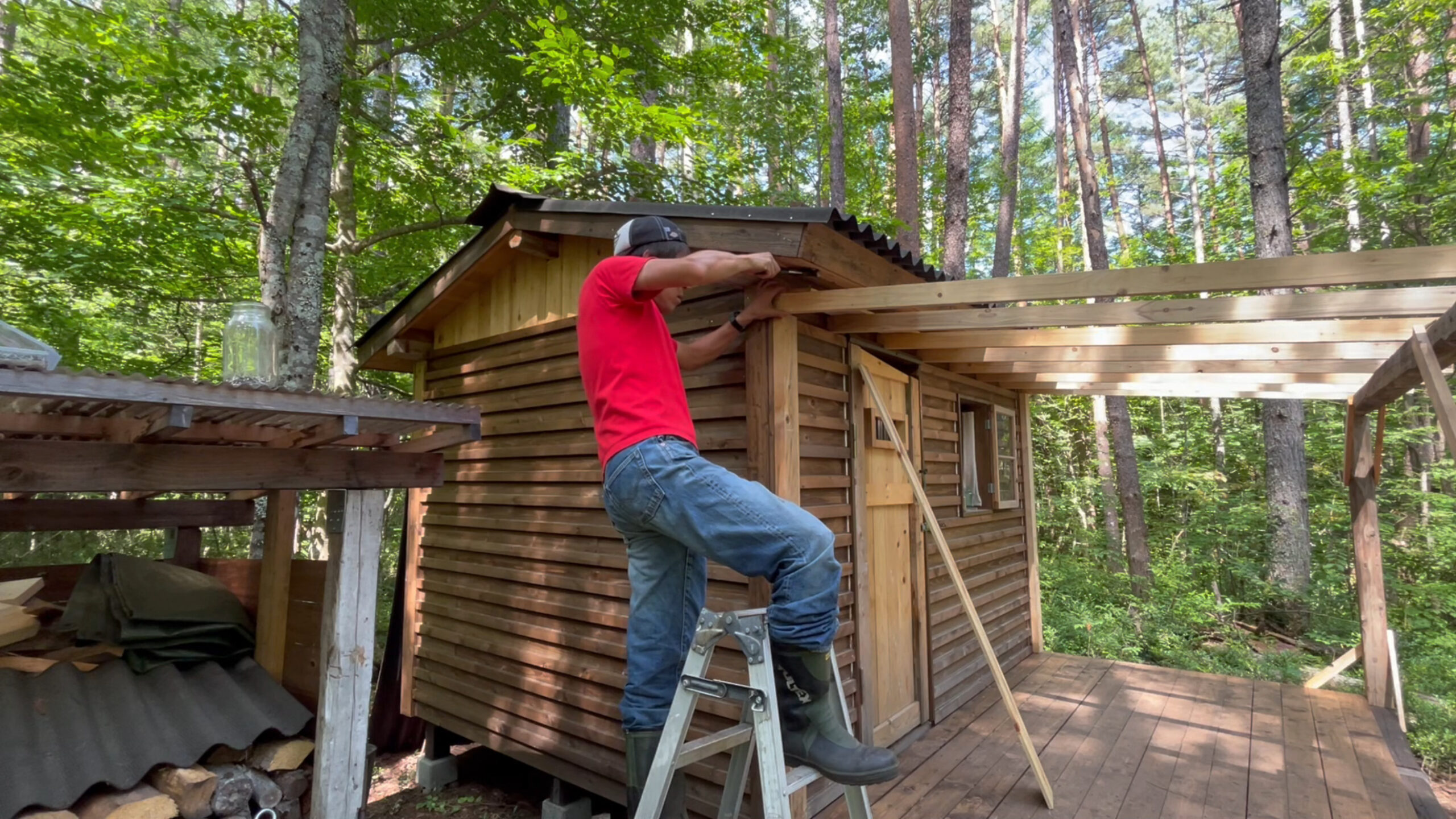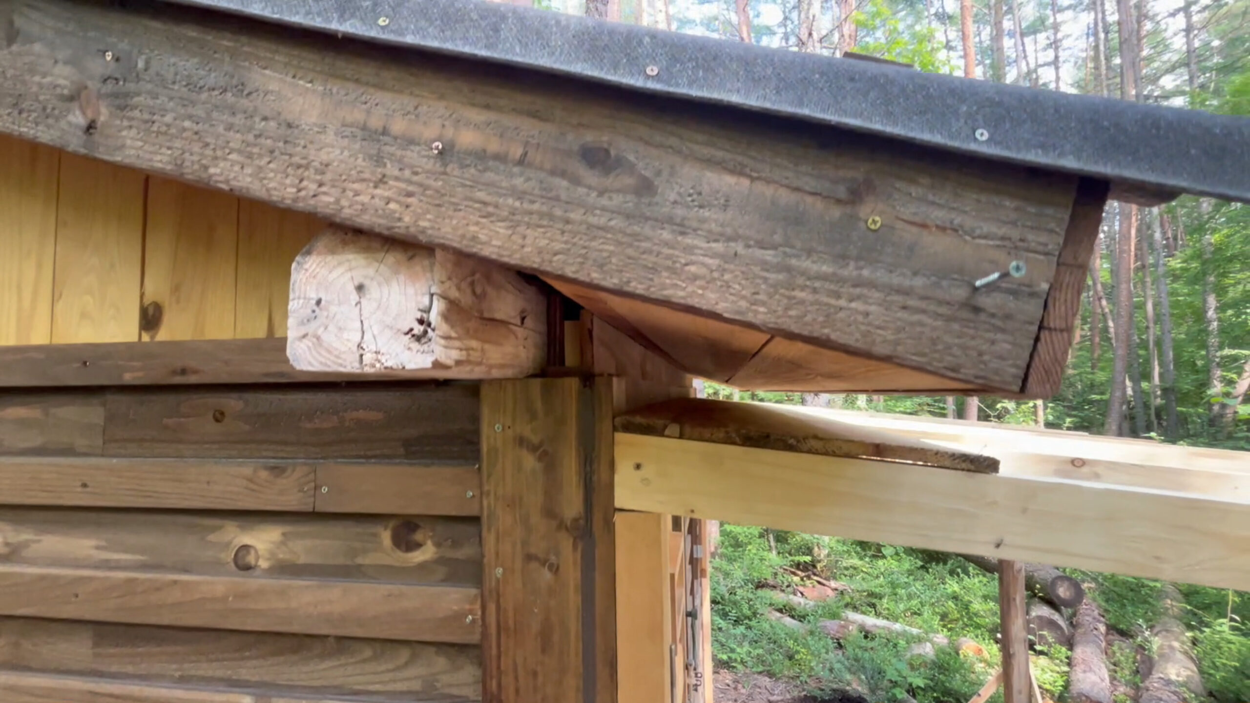今回は屋根の下地の施工をしていくのですがご覧の様に小屋の軒先とデッキの屋根の隙間がかなり狭くなっています。