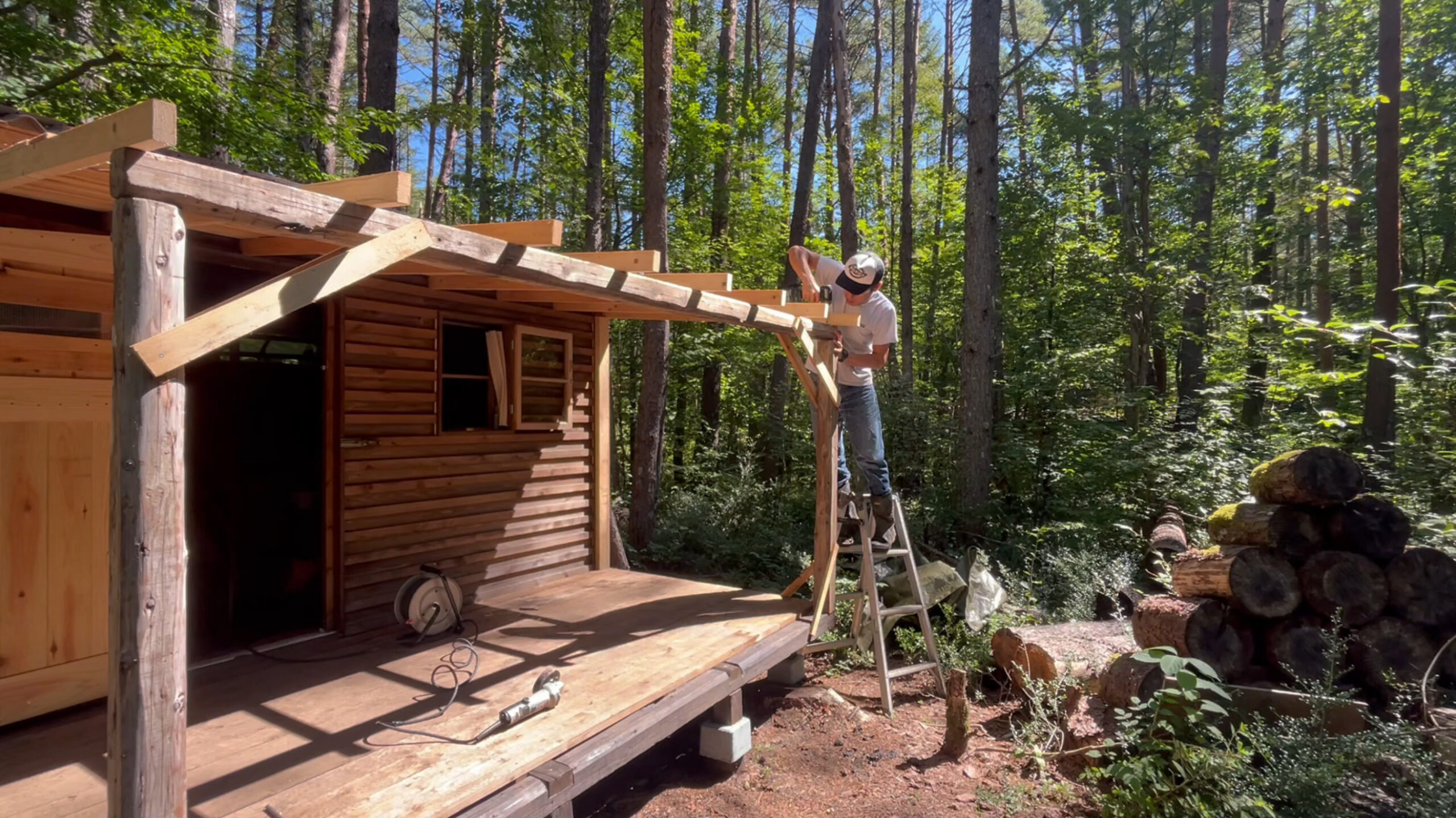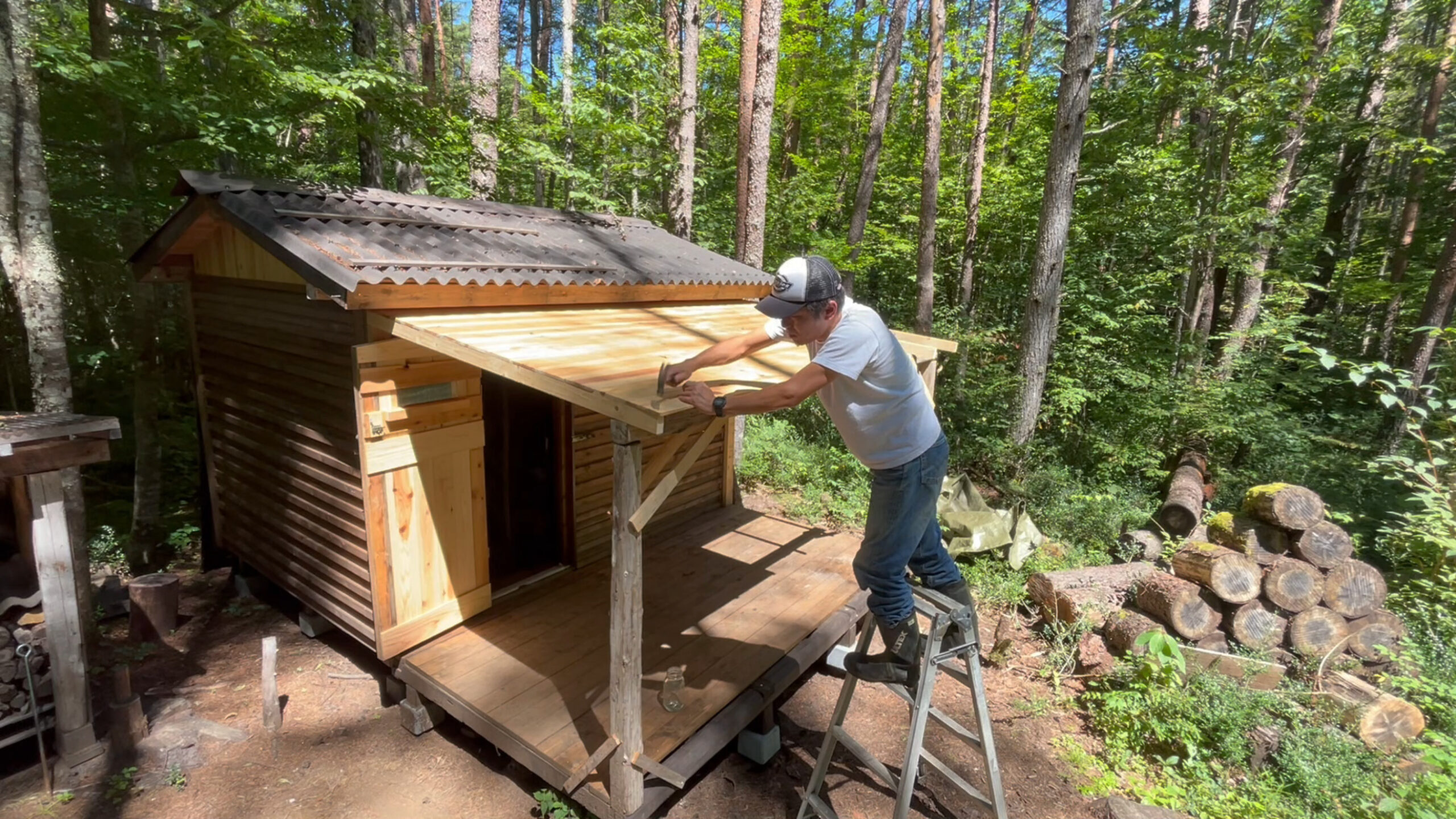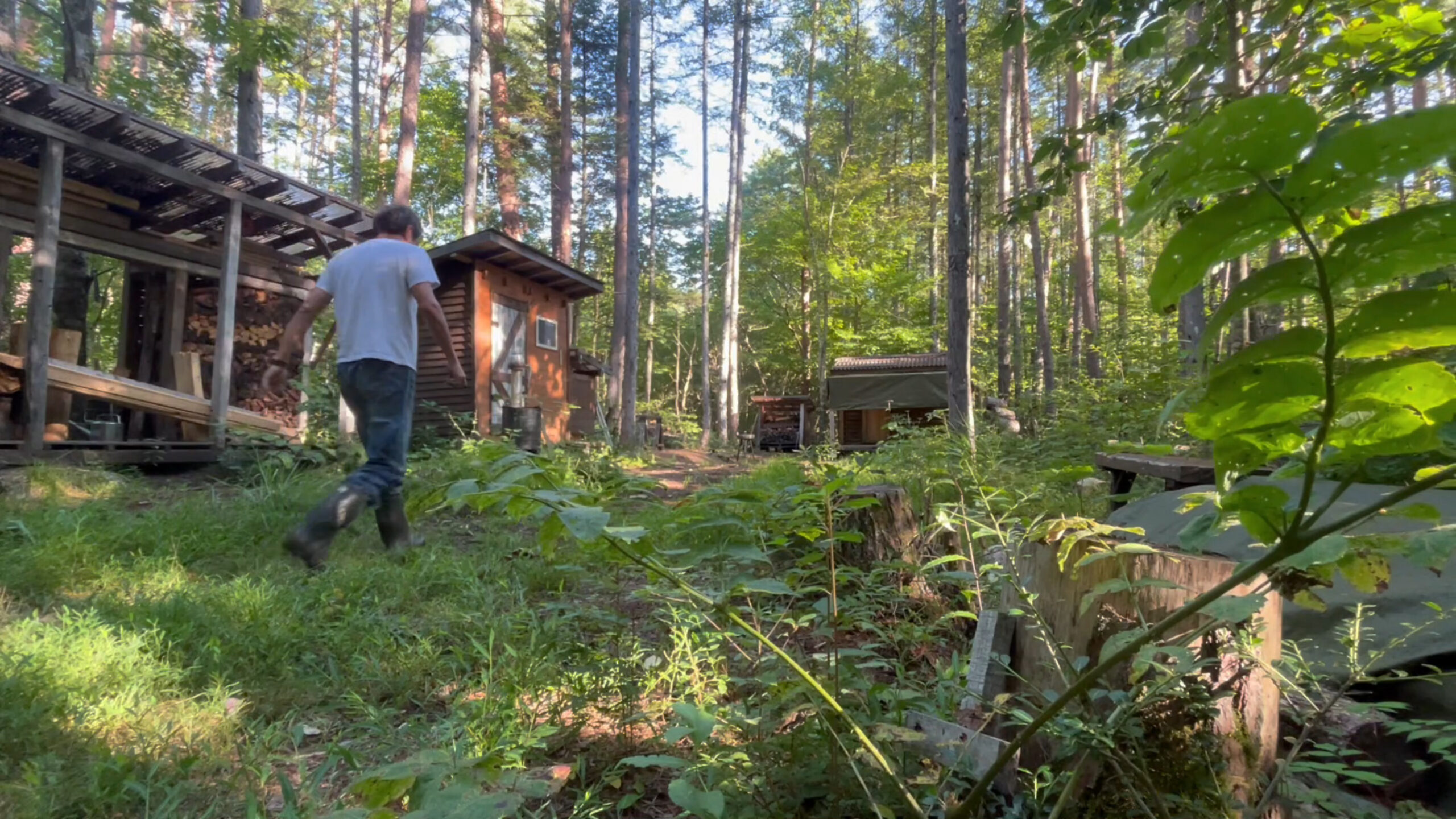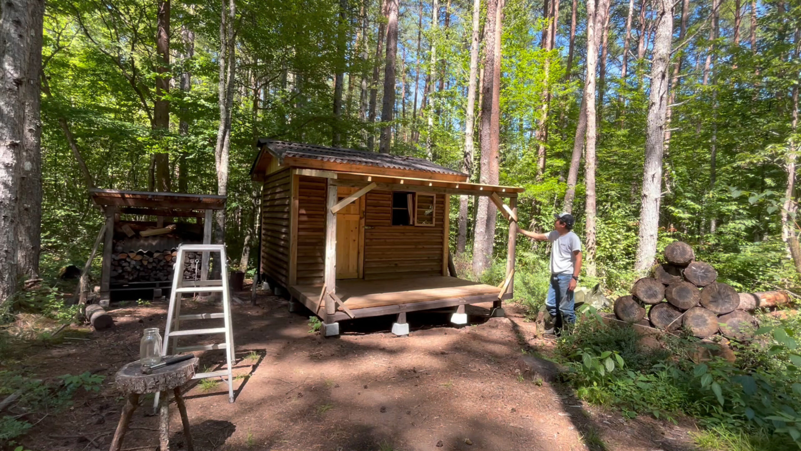 2020年の8月に開拓をスタートして、物置小屋、薪棚、雨水貯水システム、そして寝泊まり出来る小さな小さな山小屋を建てました。