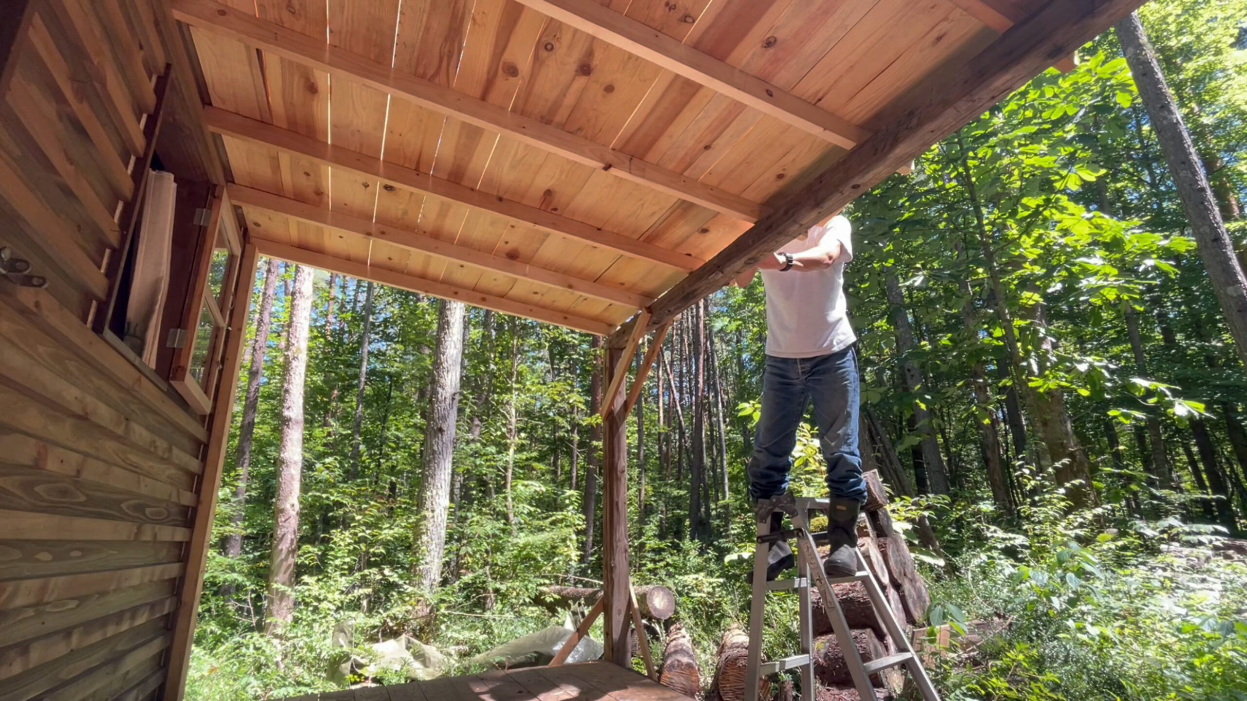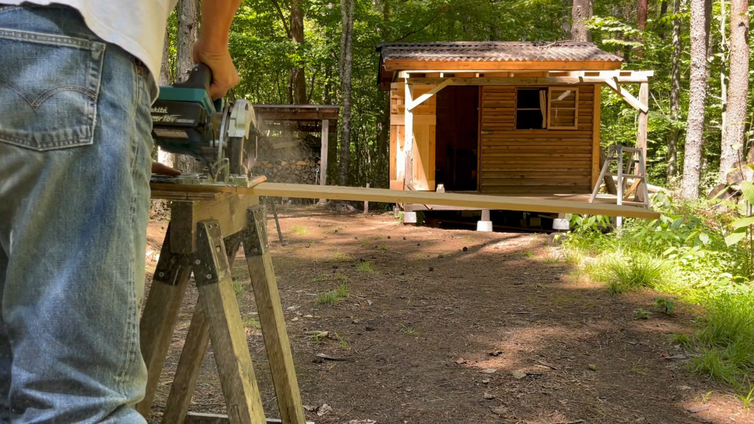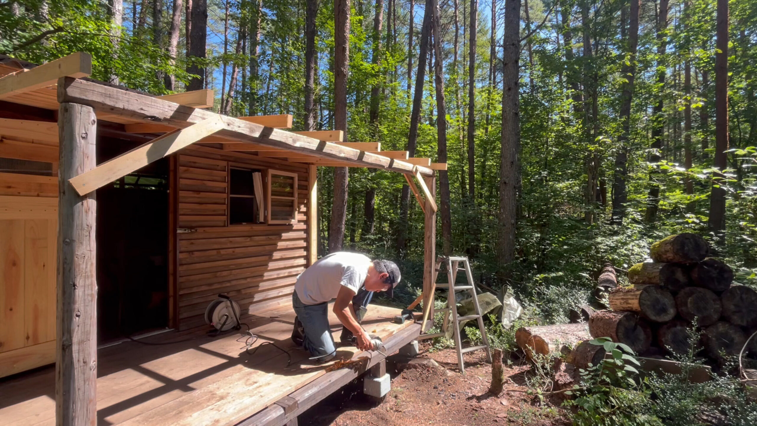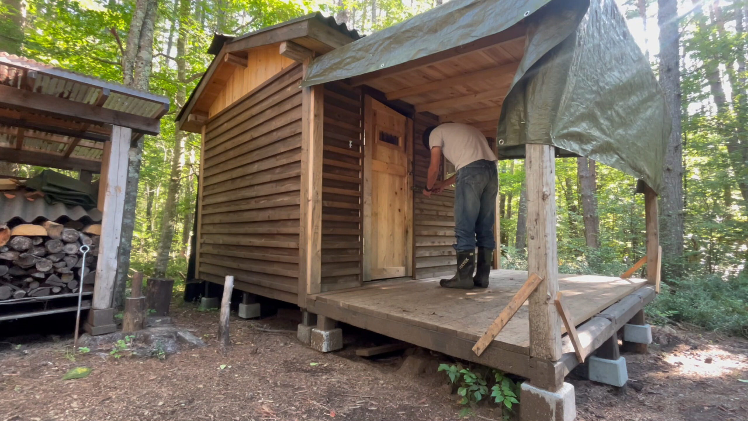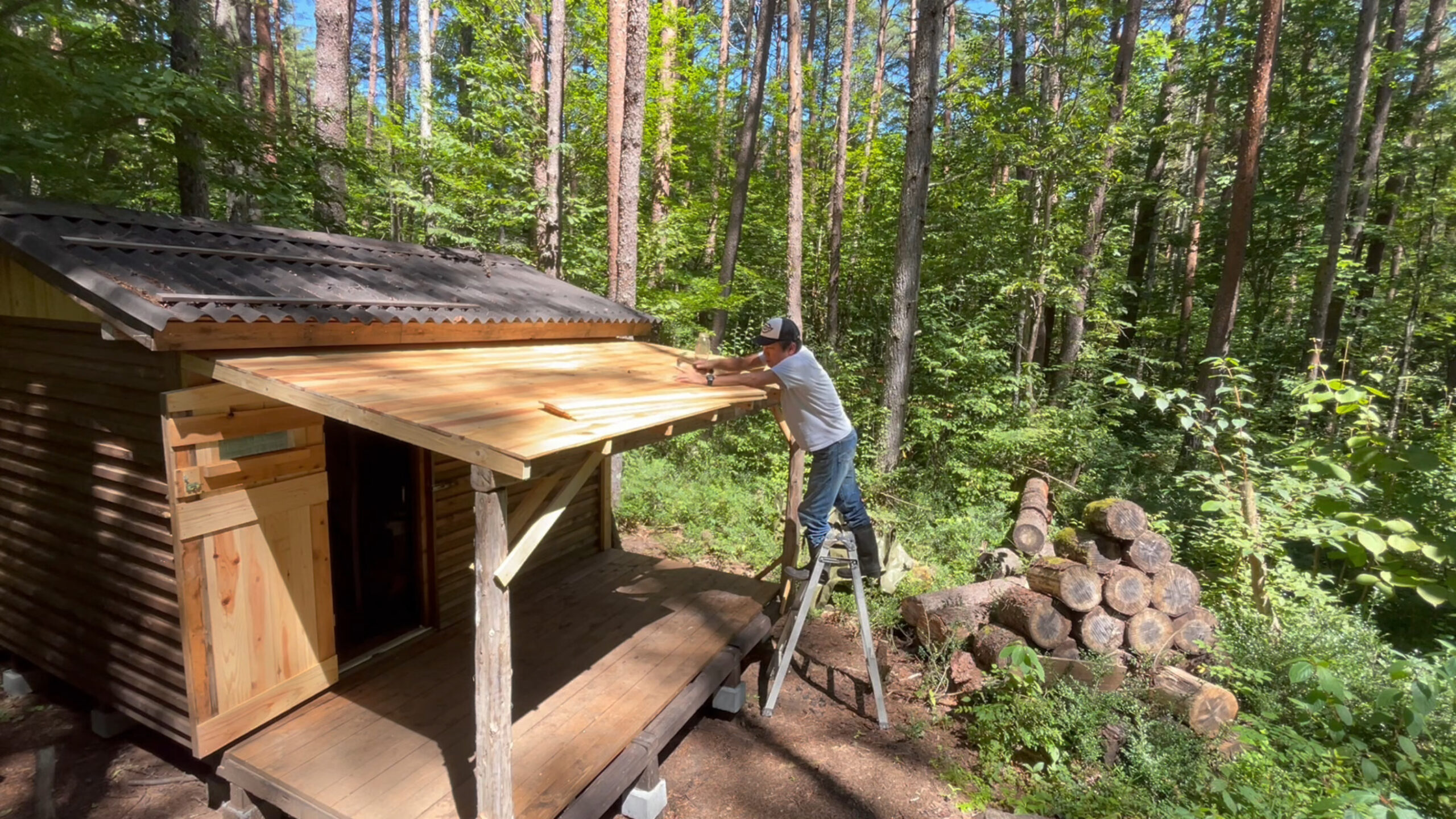 2020年の8月に開拓をスタートして、物置小屋、薪棚、雨水貯水システム、そして寝泊まり出来る小さな小さな山小屋を建てました。