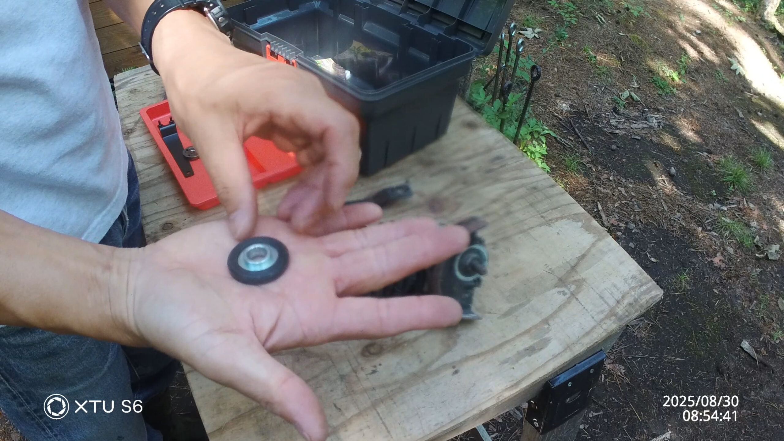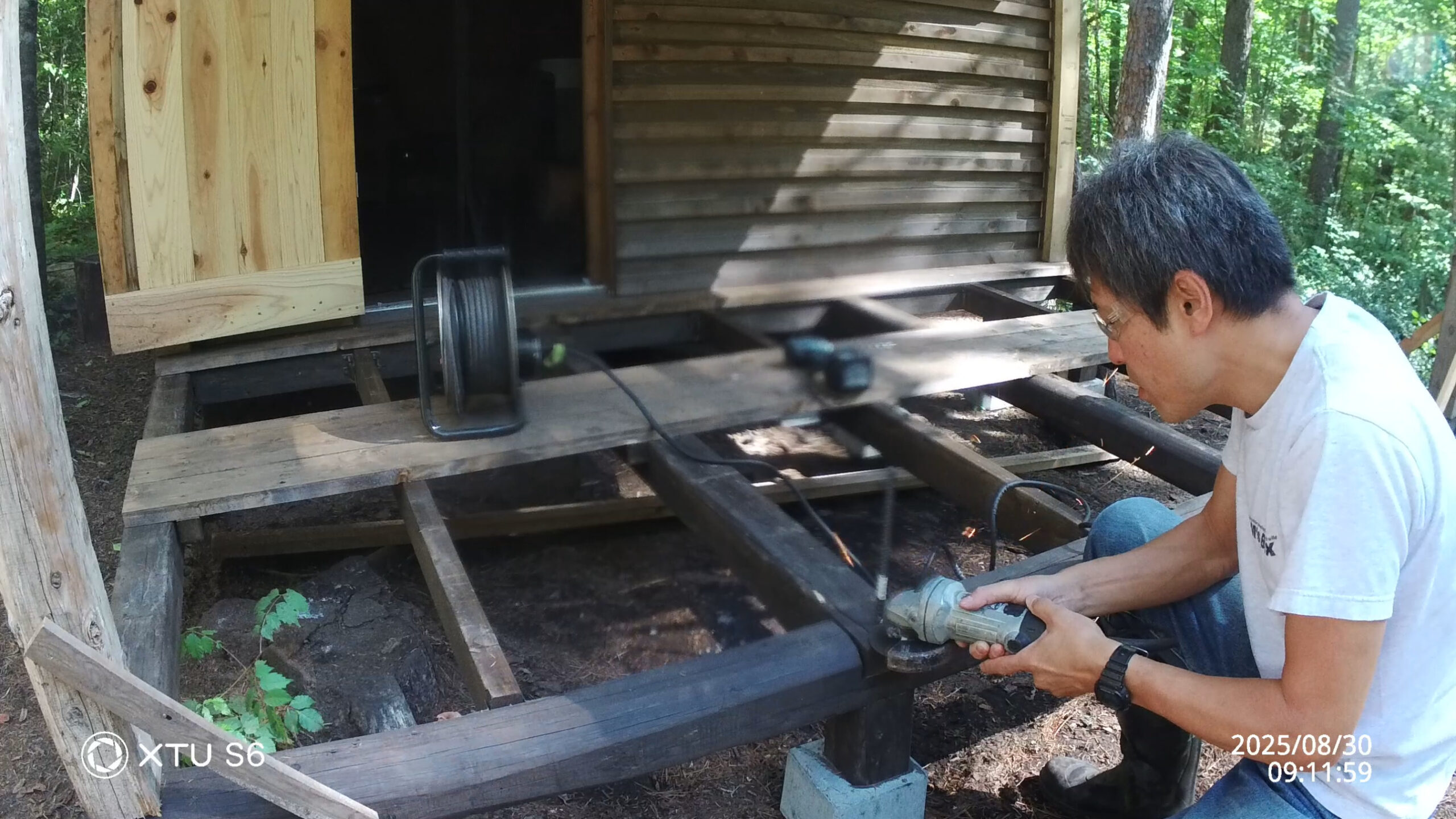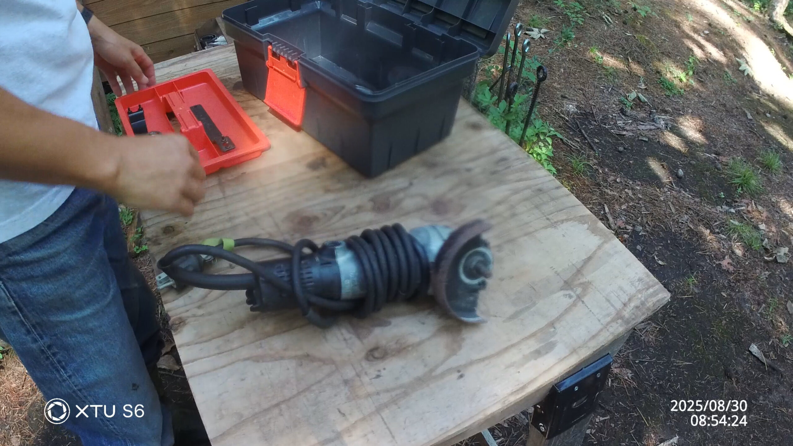 早速電源はポタ電で、グラインダーを使って作業をしていきます。