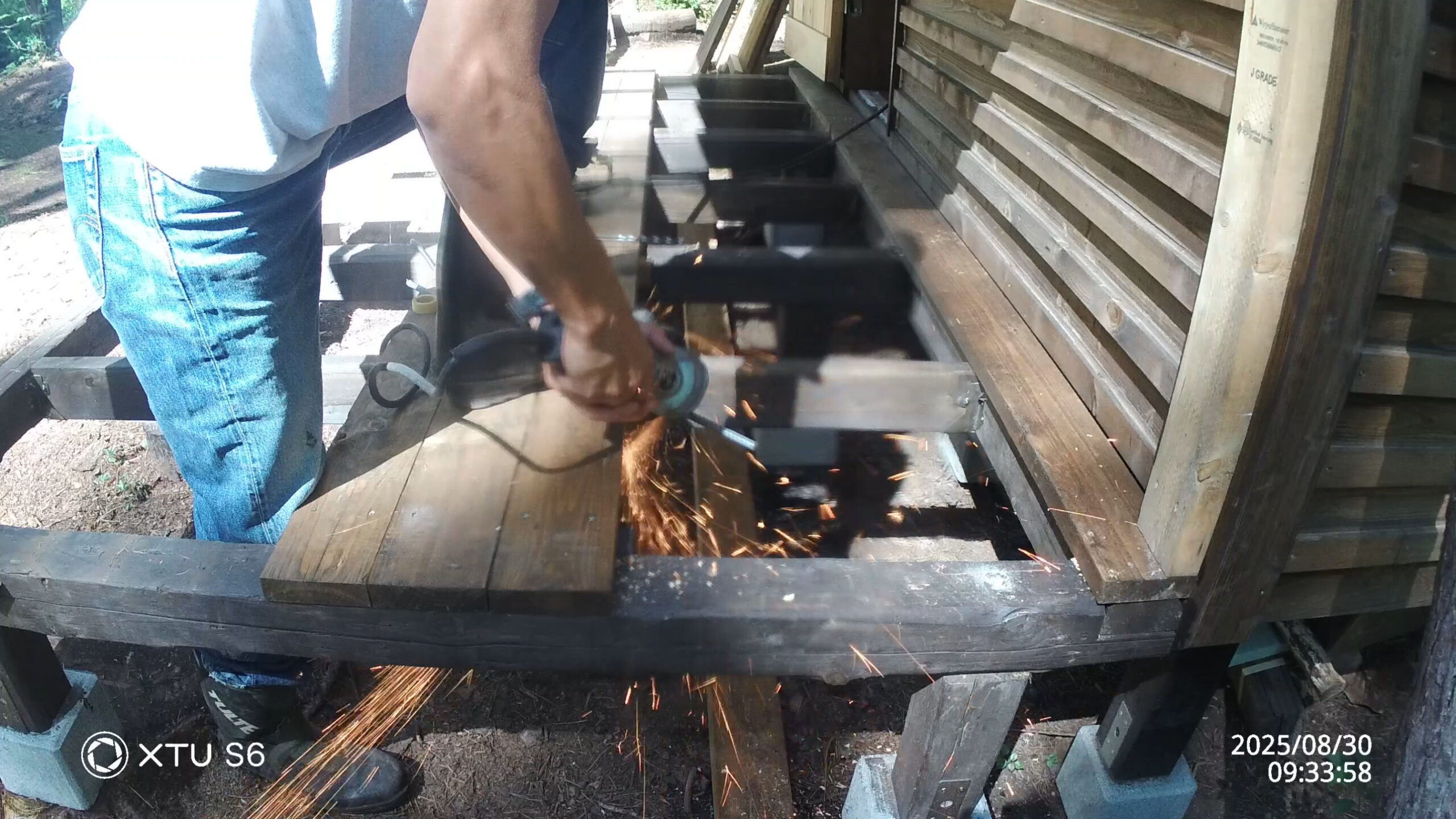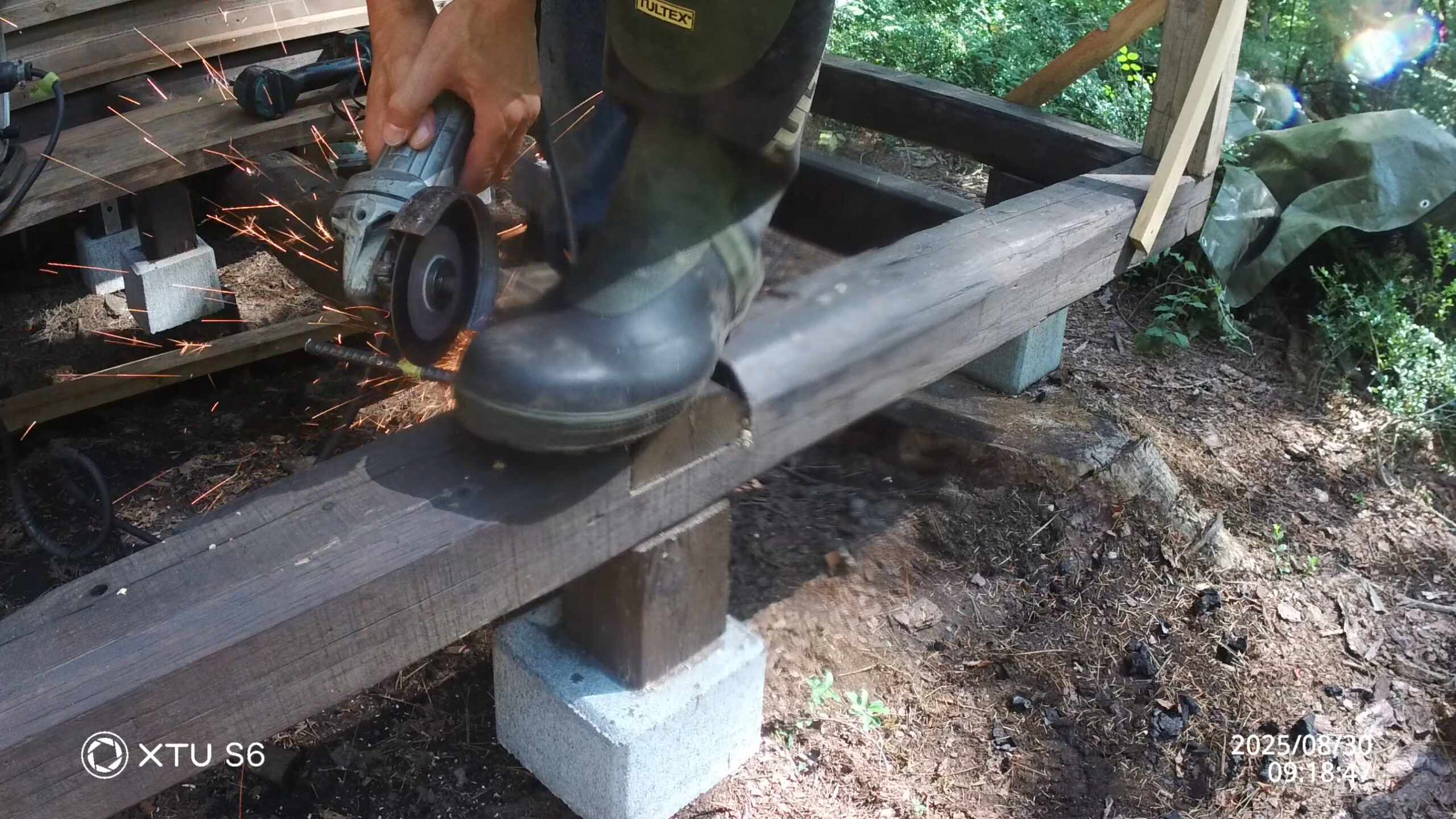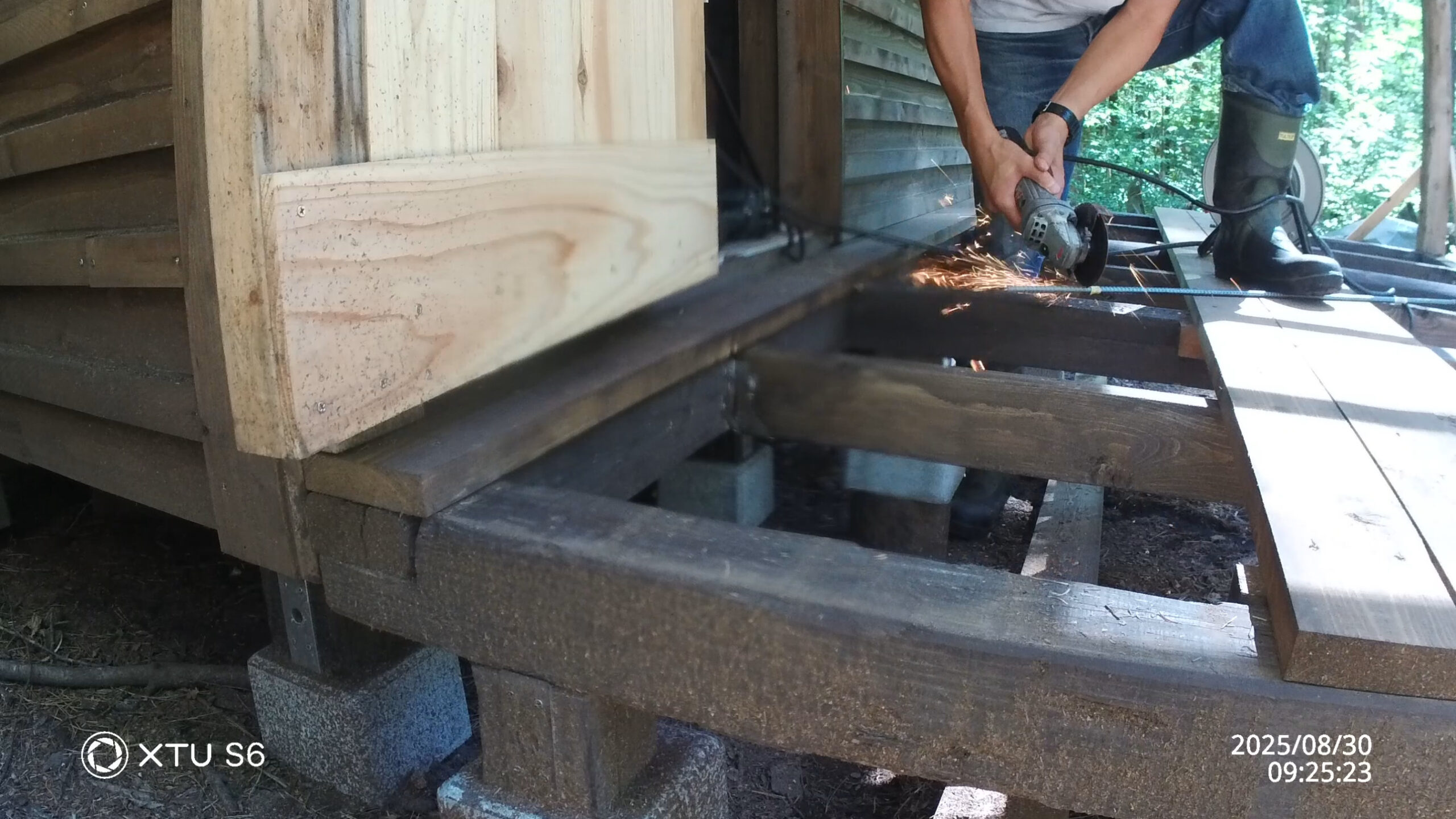 先ずは以前、グラインダーの不調で作業を中断していたデッキの土台の補強をしていきます。