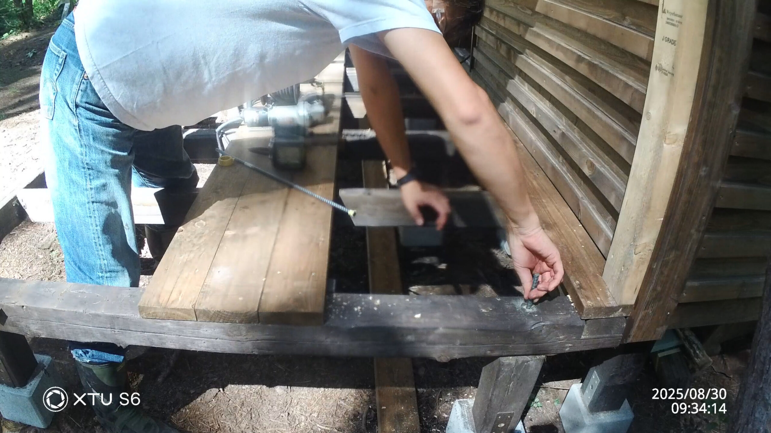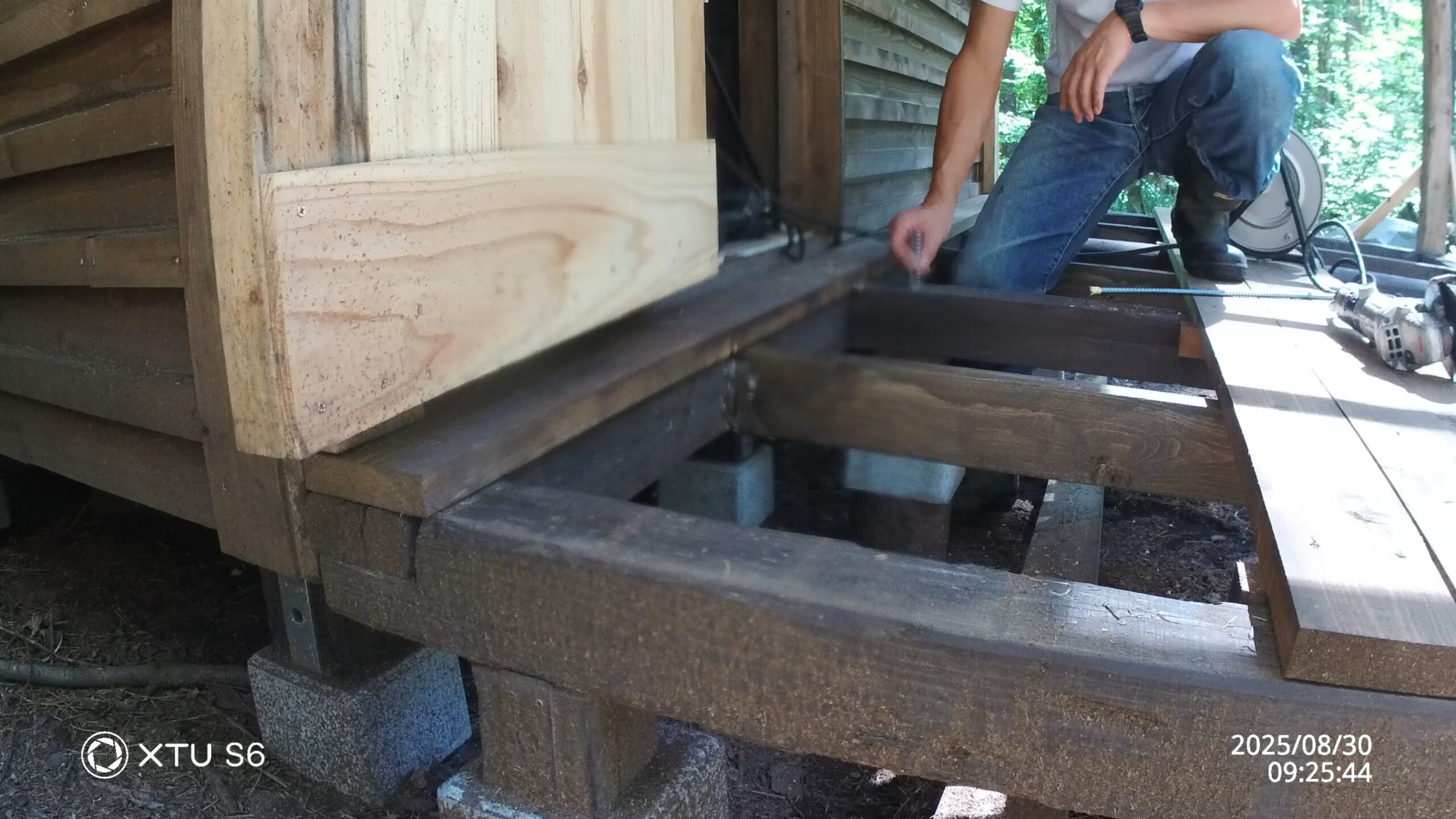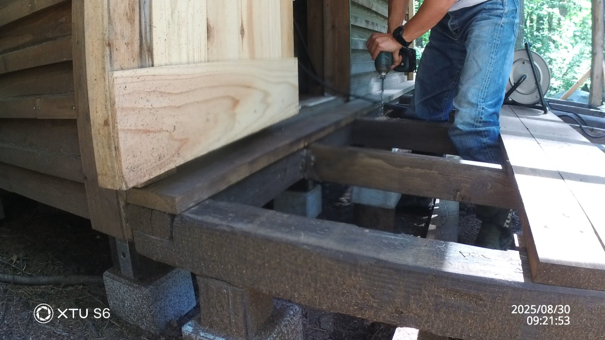 先ずは以前、グラインダーの不調で作業を中断していたデッキの土台の補強をしていきます。