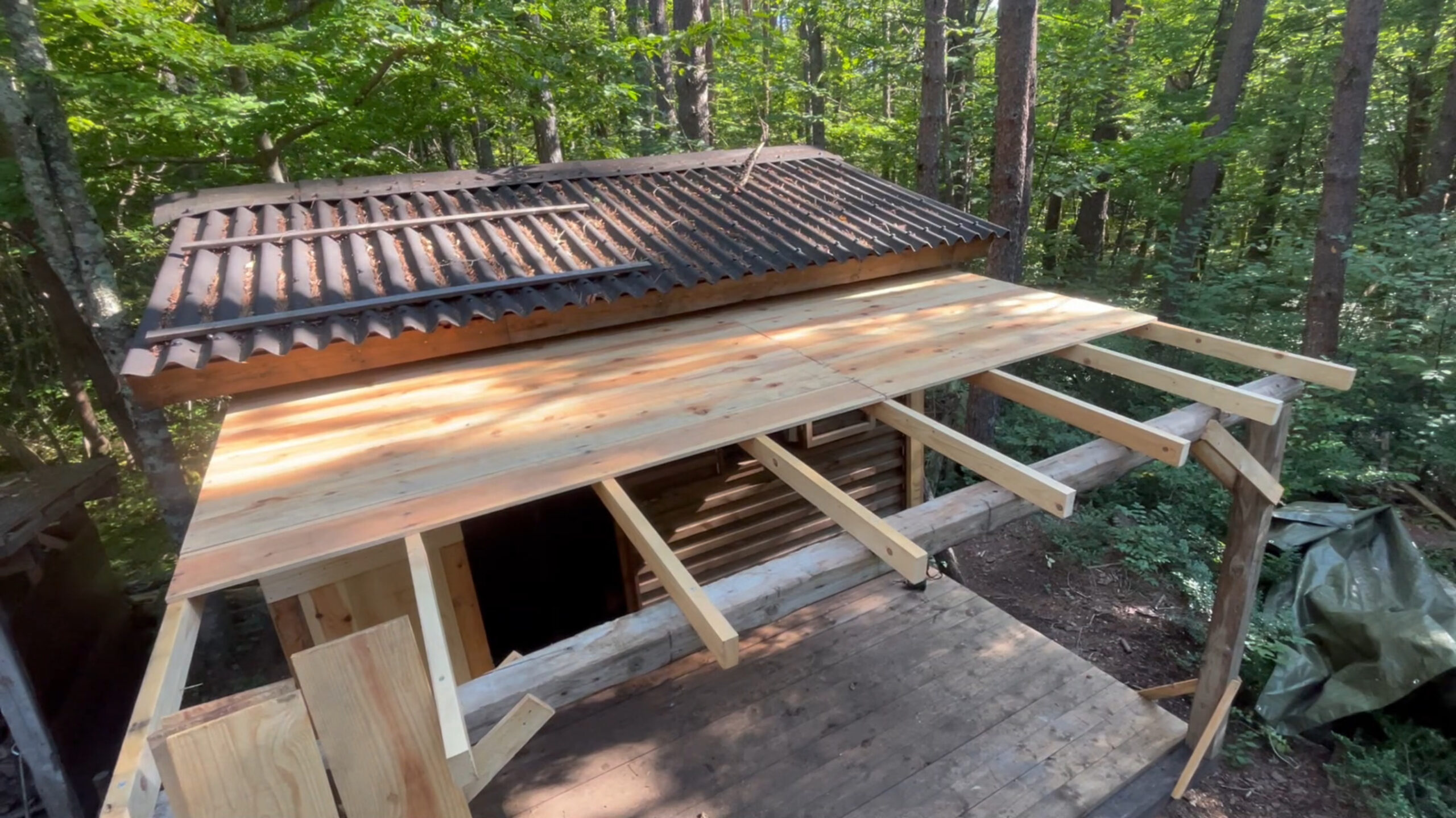 前回の作業では屋根の下地の完成を目指しましたが急な雨で作業を中断し、