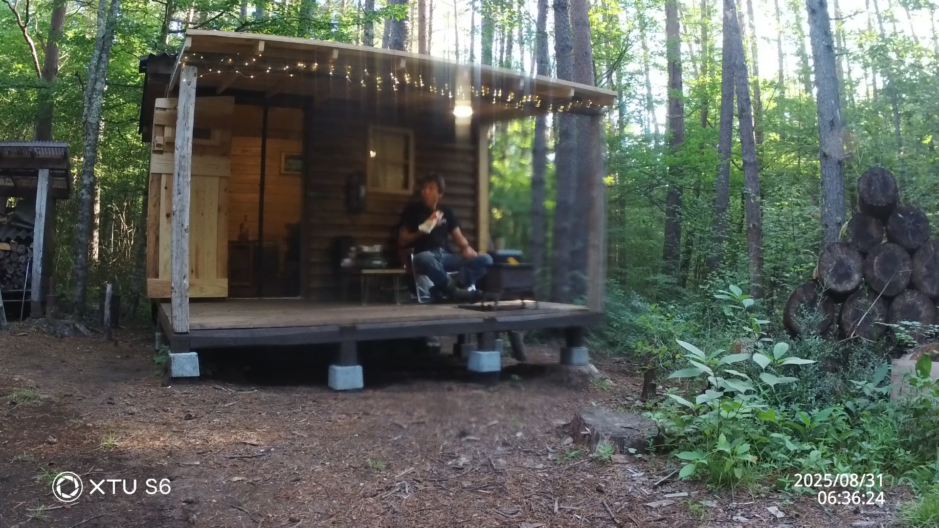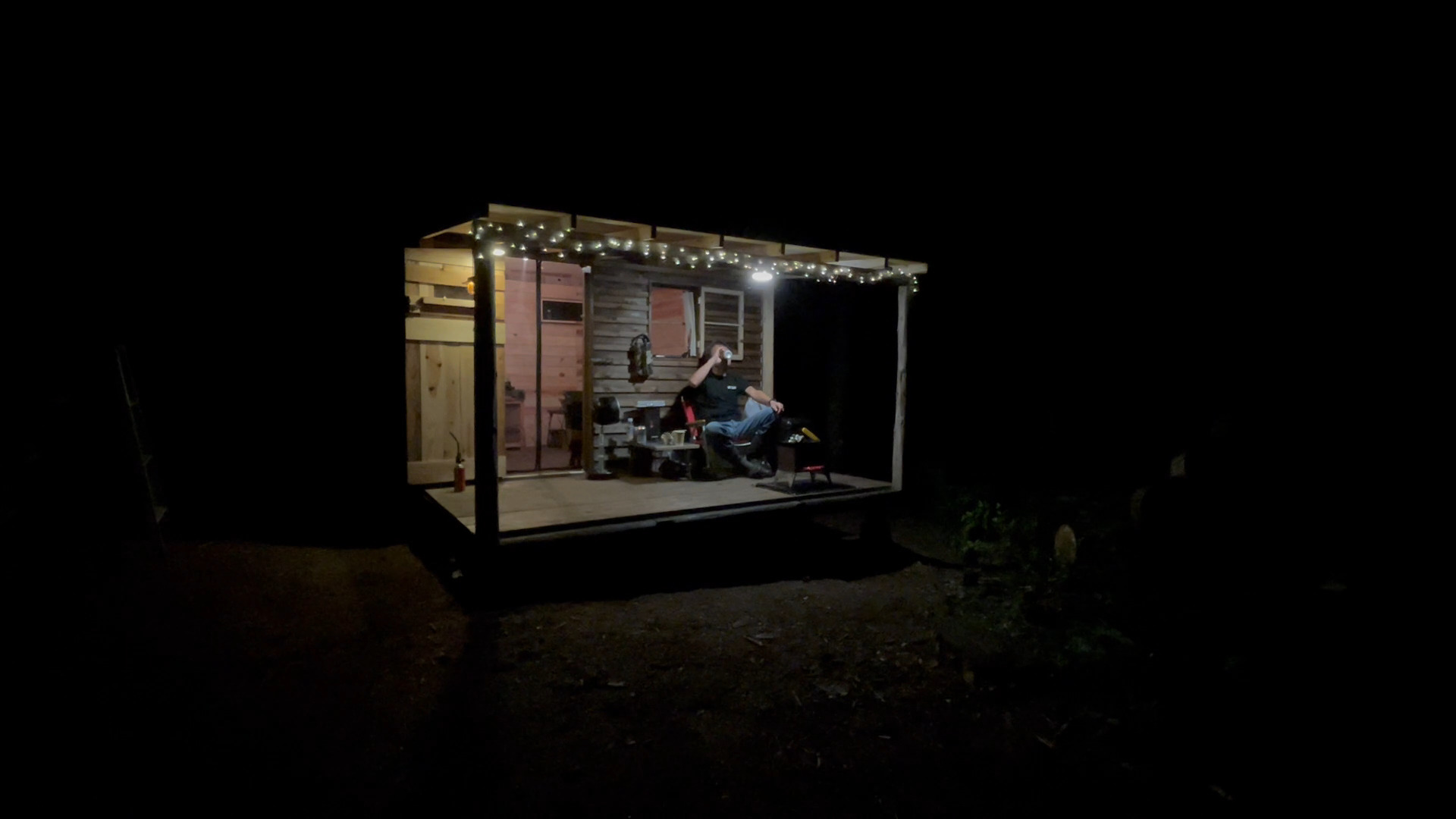 2020年の8月に開拓をスタートして、物置小屋、薪棚、雨水貯水システム、そして小さな小さな山小屋を建てました。