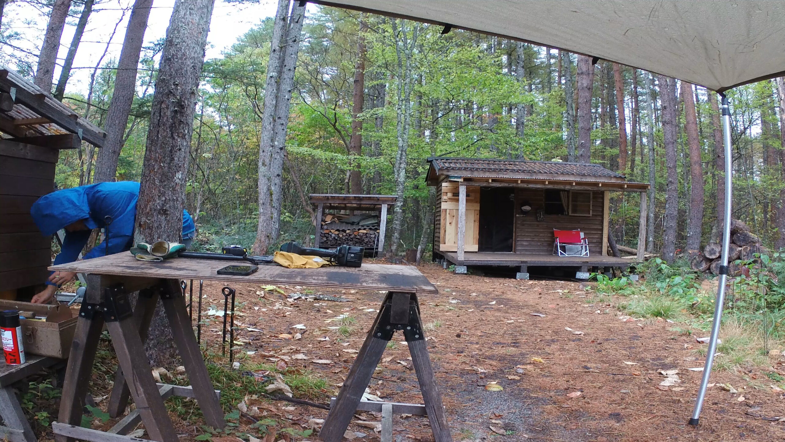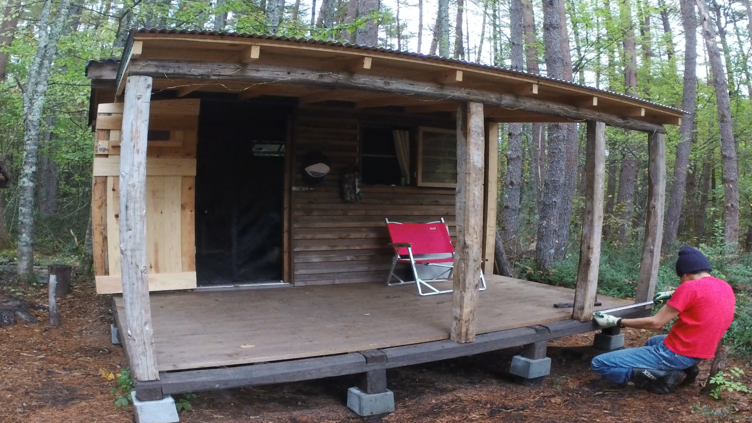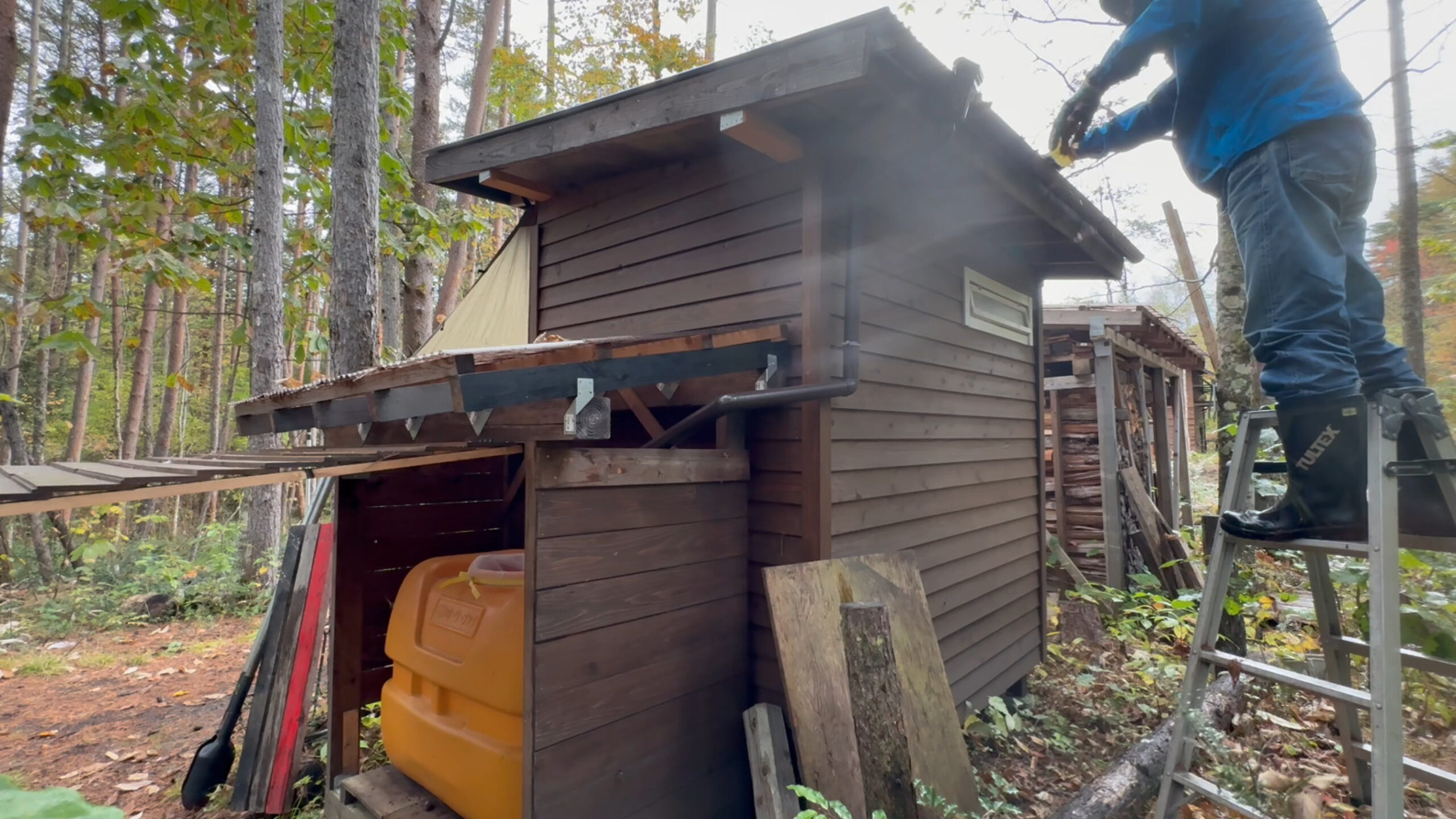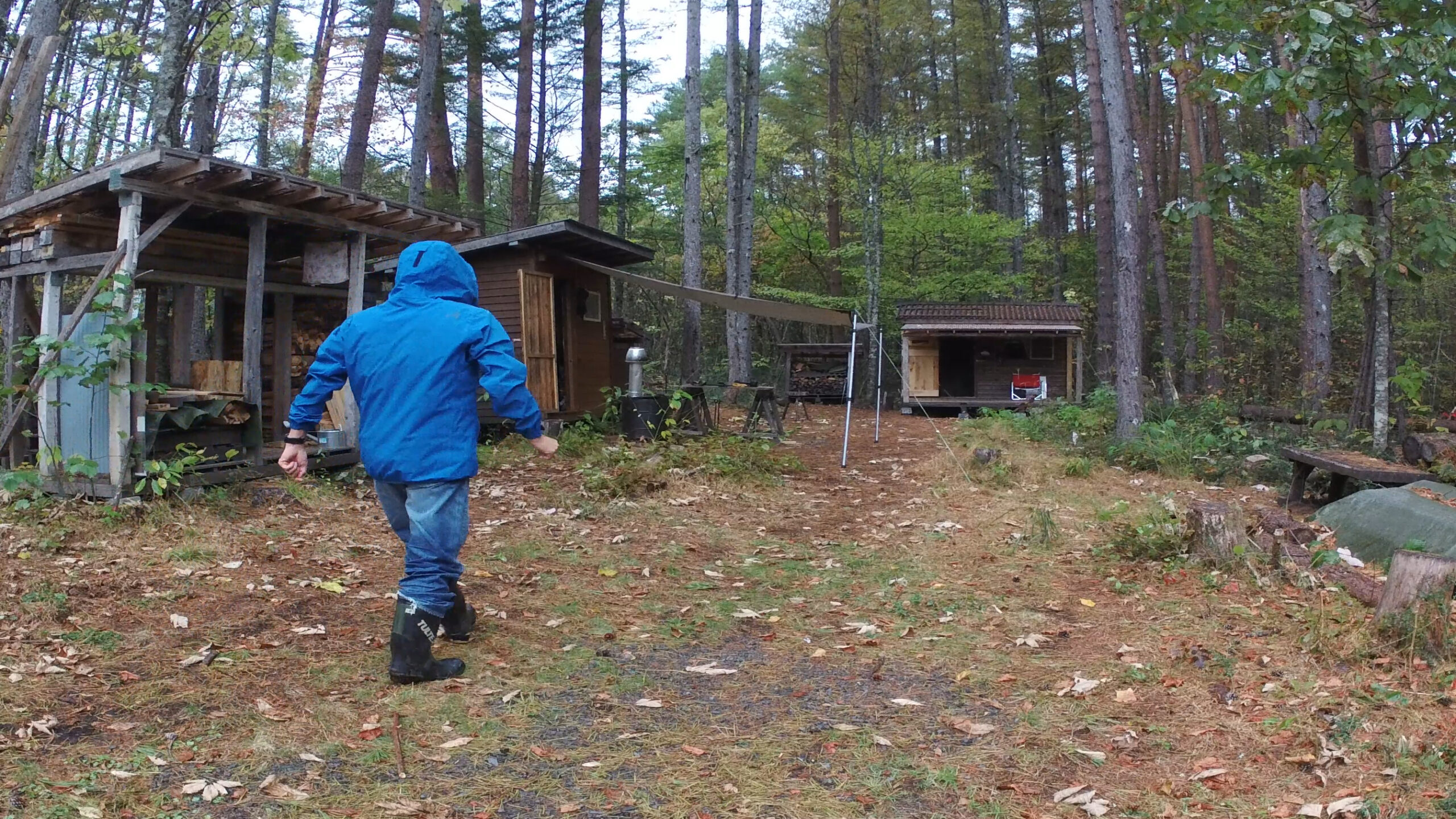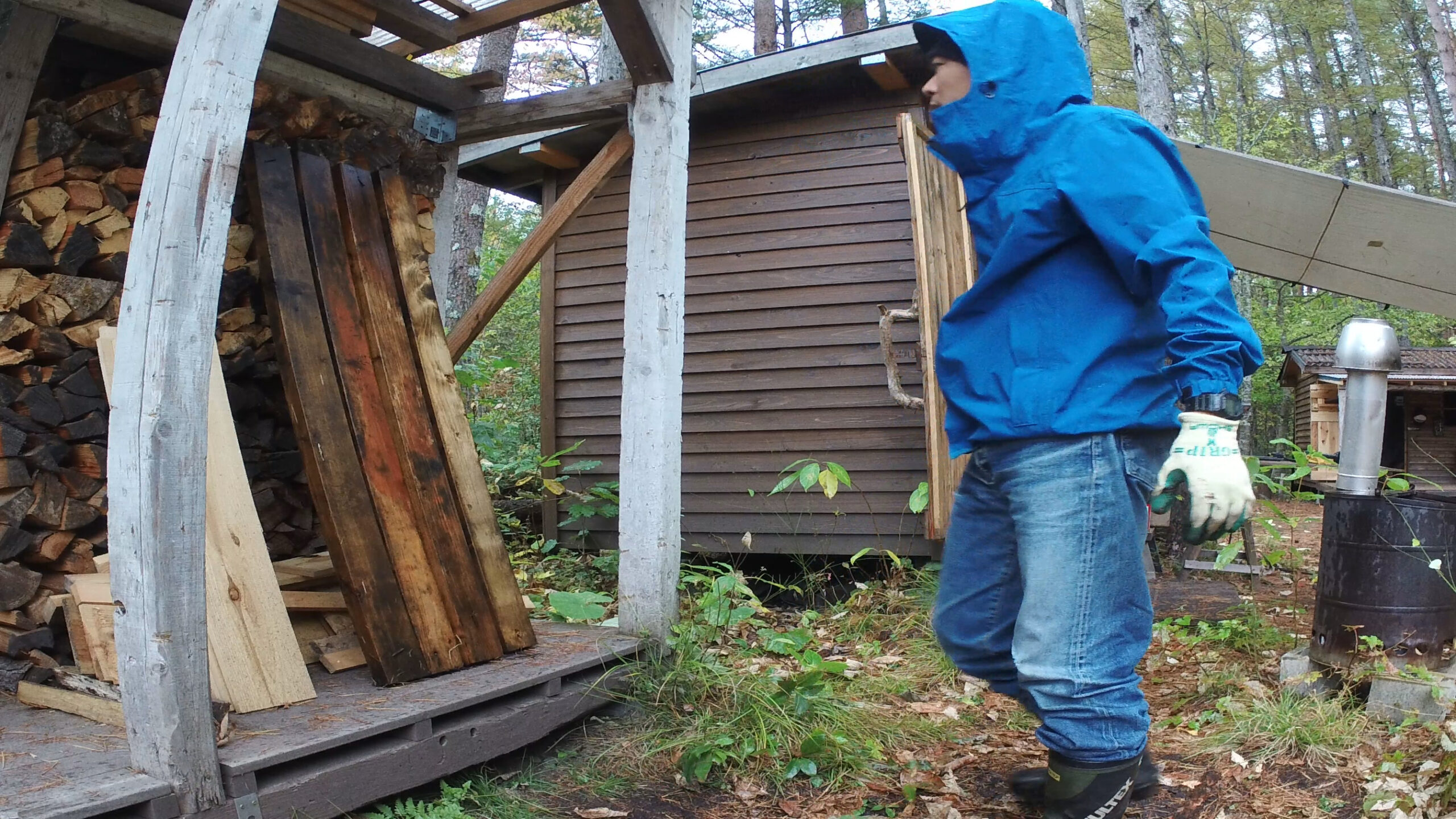 2020年の8月に開拓をスタートして、物置小屋、薪棚、雨水貯水システム、そして寝泊まり出来る小さな小さな山小屋を建てました。