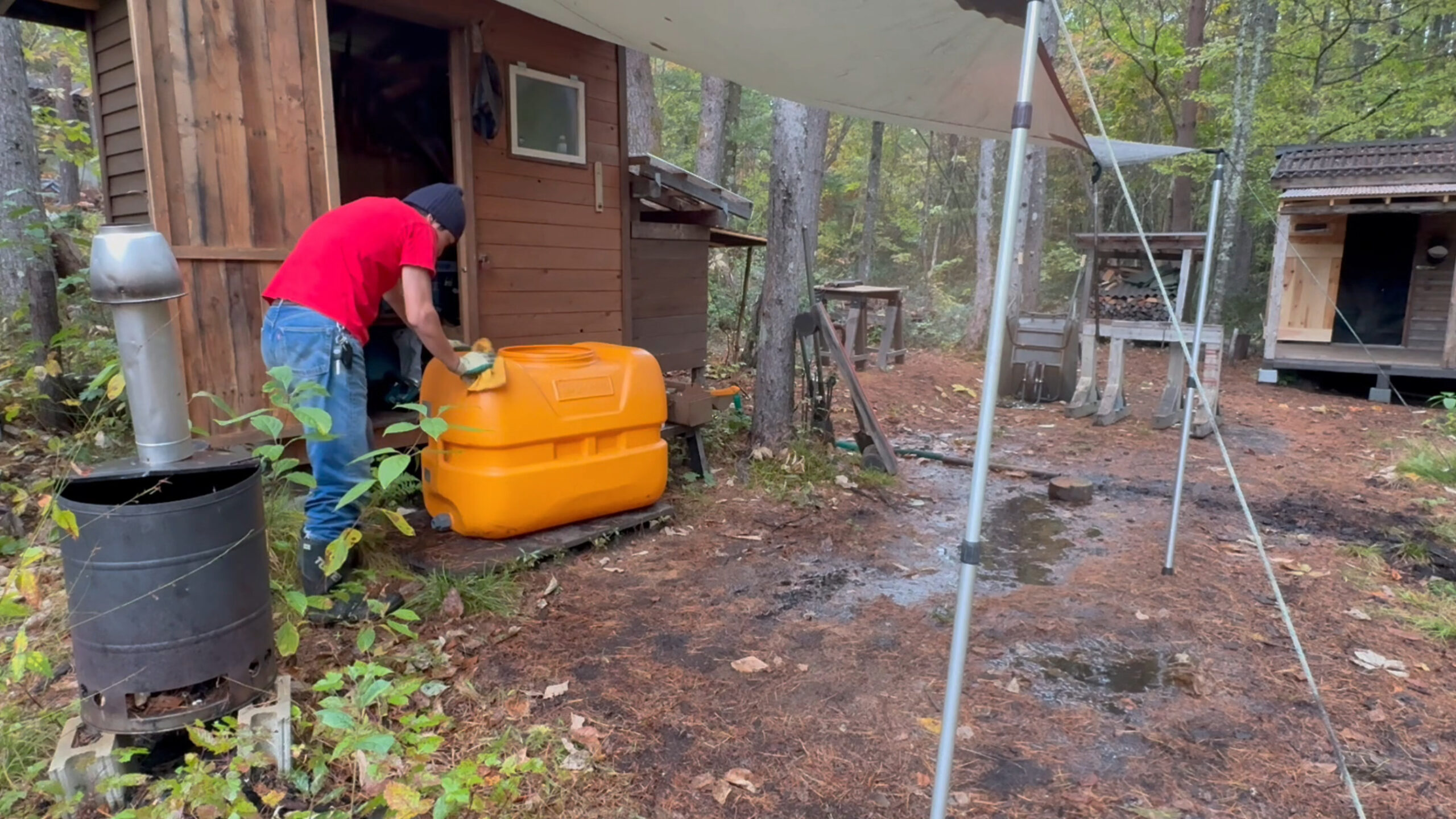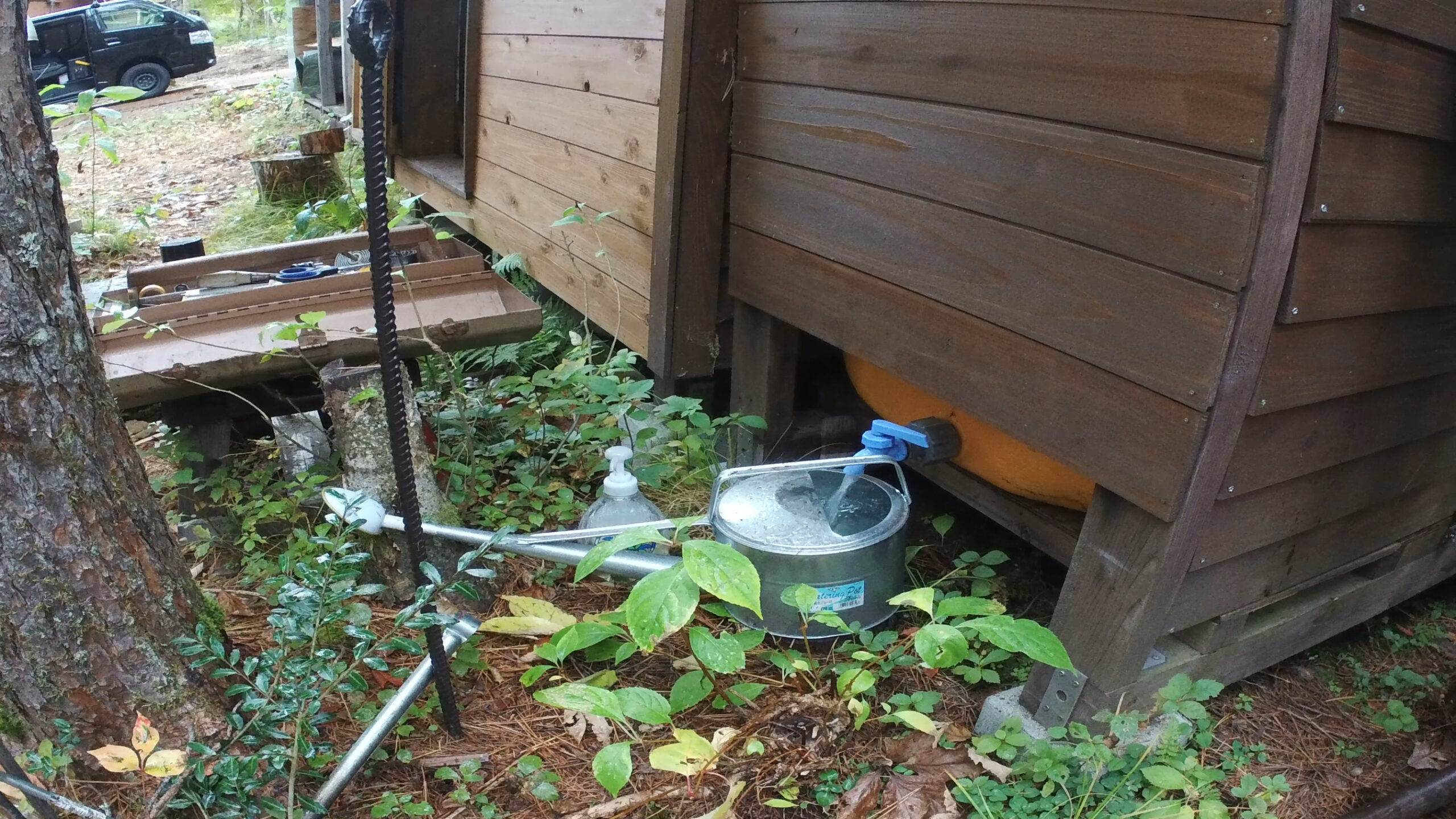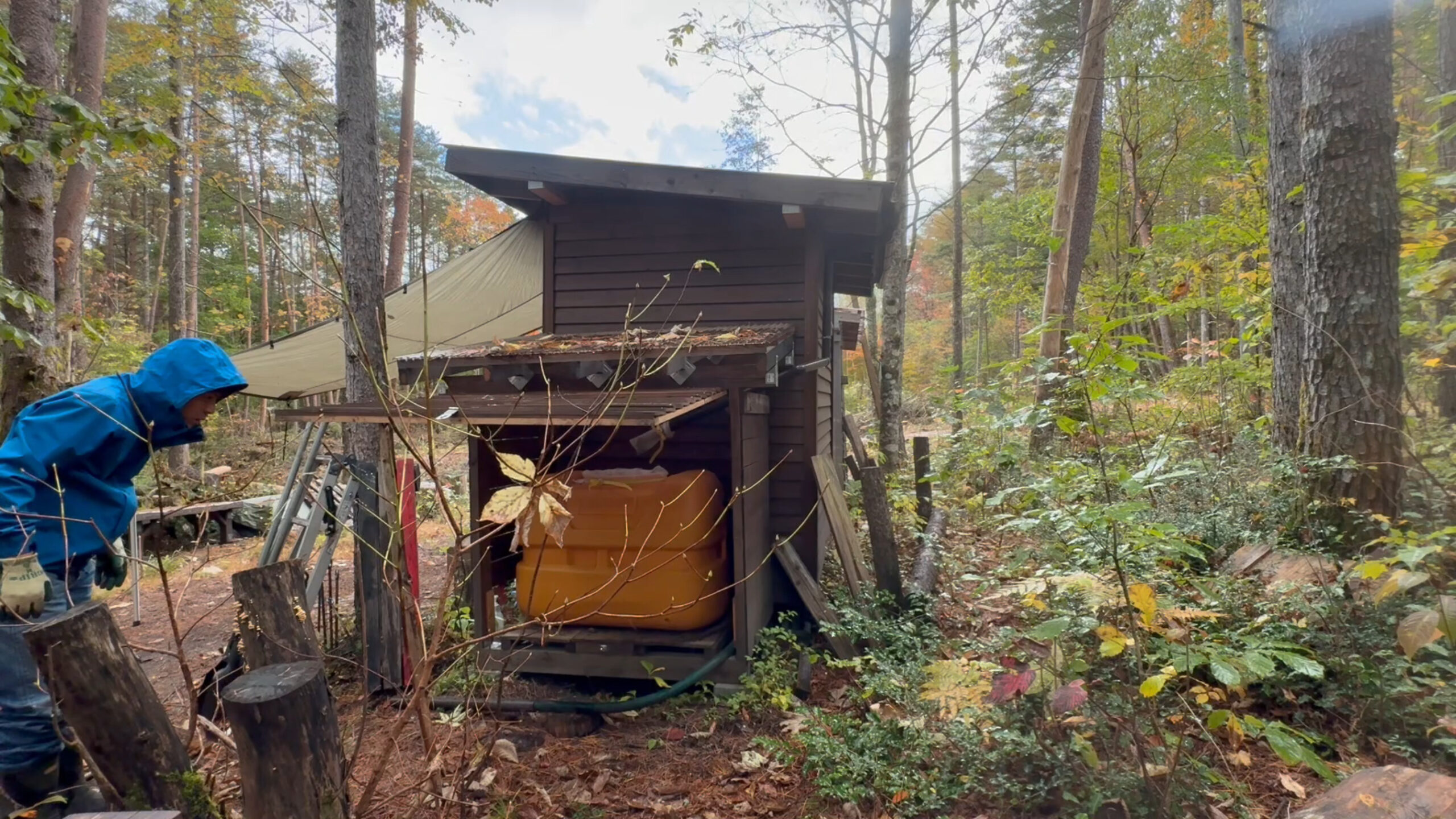 今回は開拓中の山の土地で雨水タンクの冬仕舞いをしたのでその様子をお送りしたいと思います。