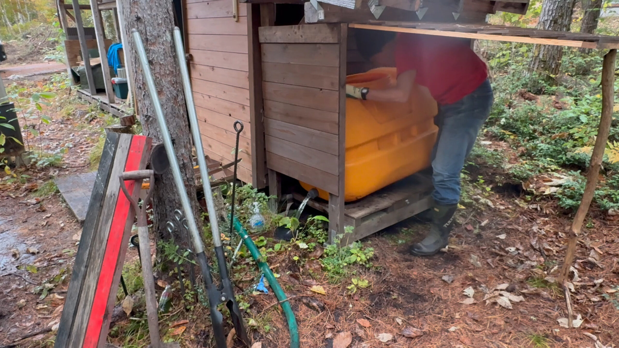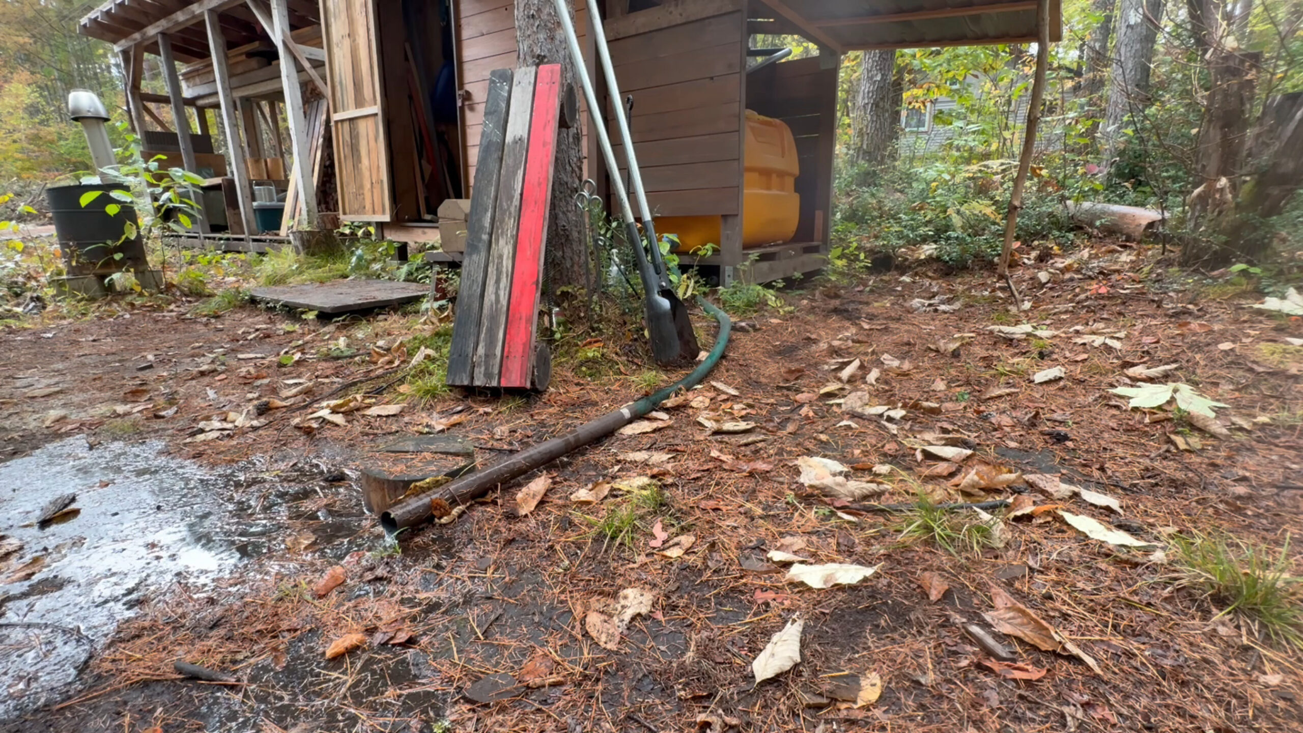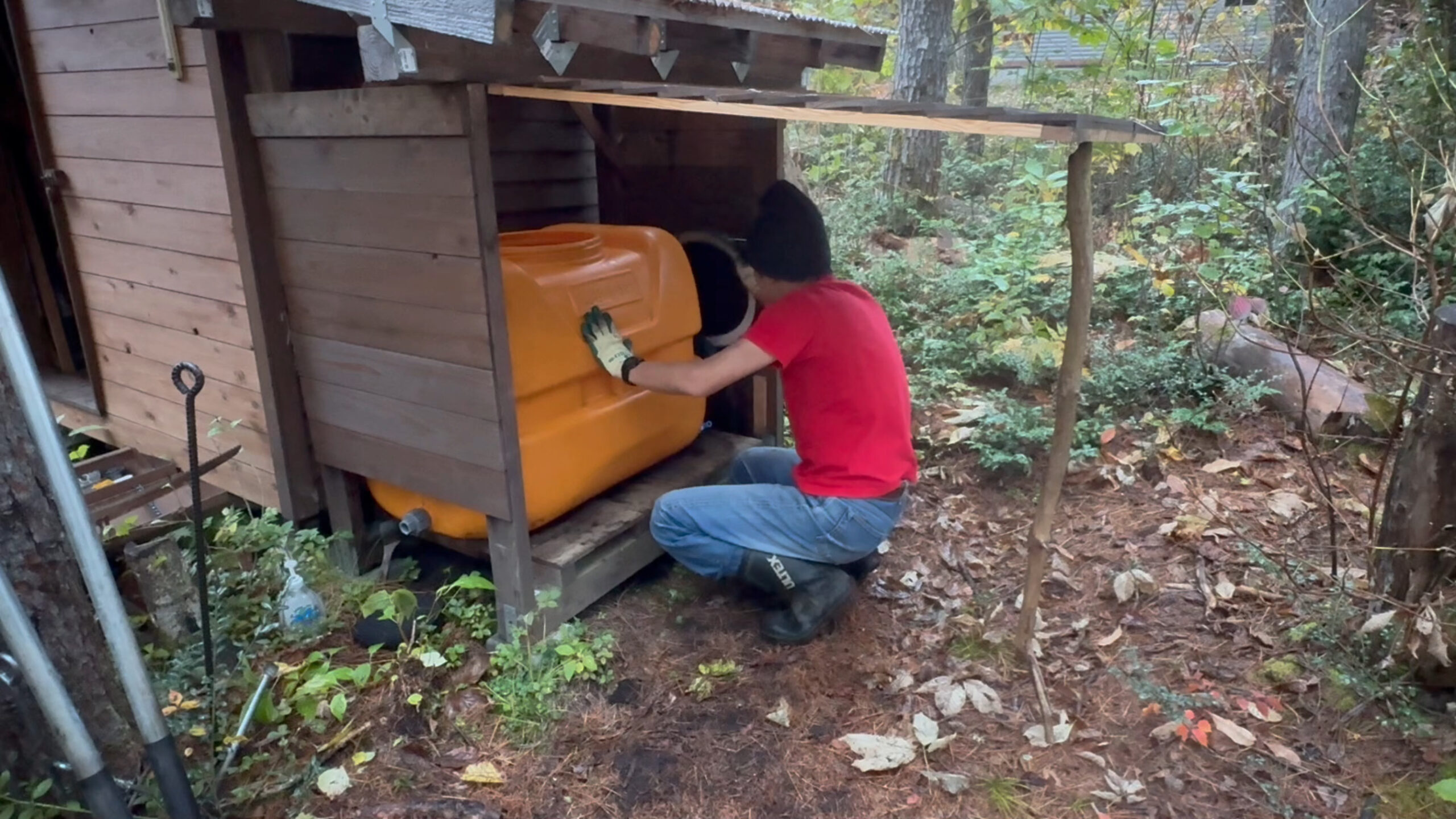 今回は開拓中の山の土地で雨水タンクの冬仕舞いをしたのでその様子をお送りしたいと思います。