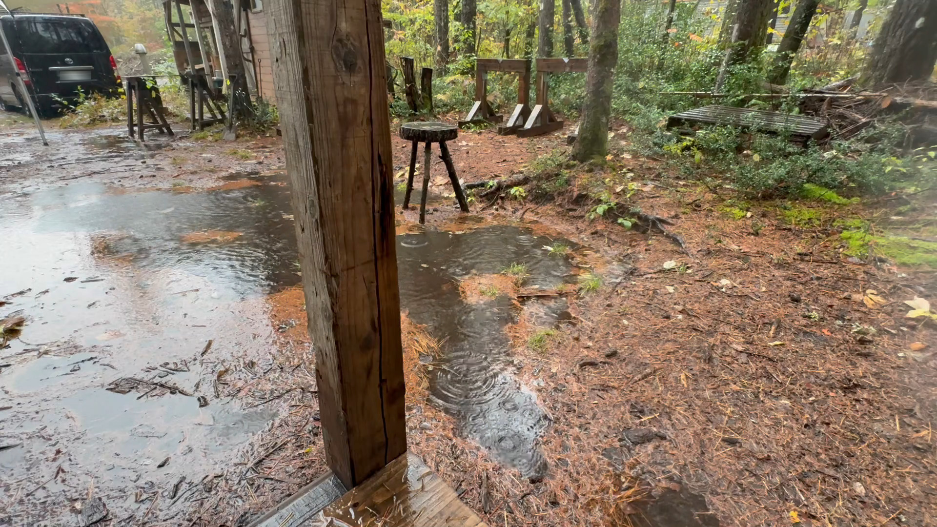 2020年の8月に開拓をスタートして、物置小屋、薪棚、雨水貯水システム、そして寝泊まり出来る小さな小さな山小屋を建てました。