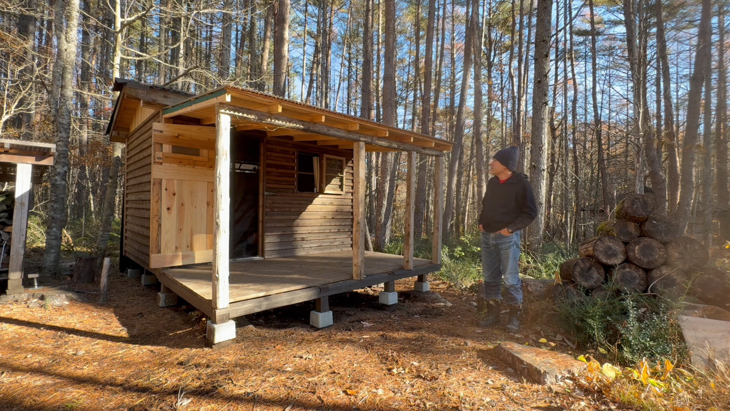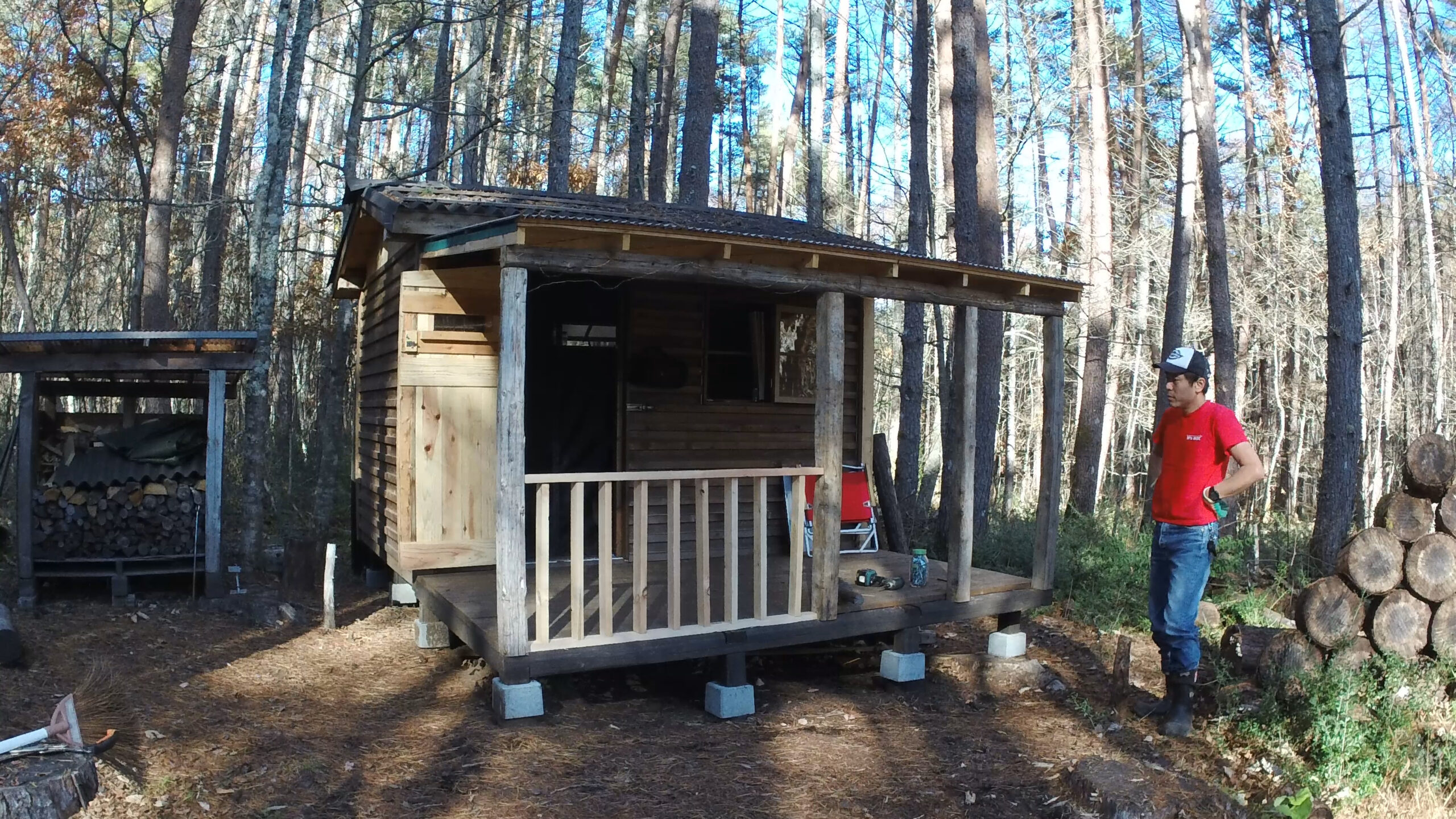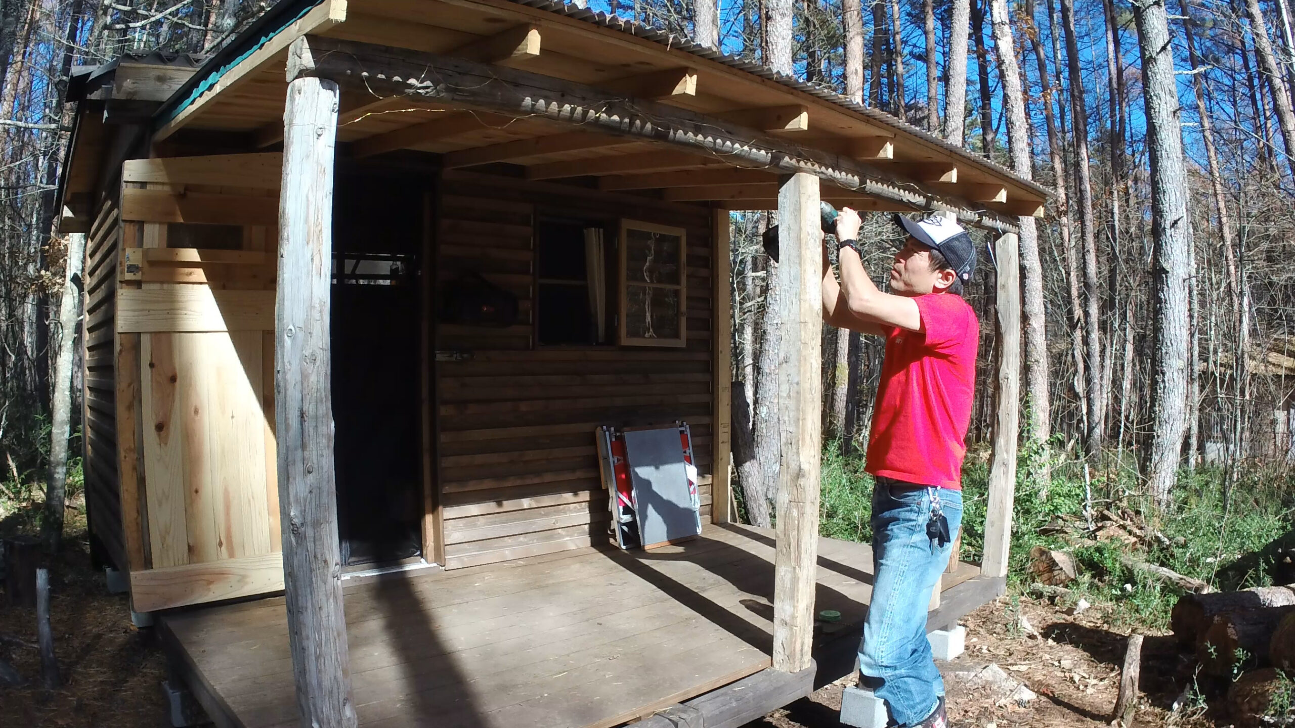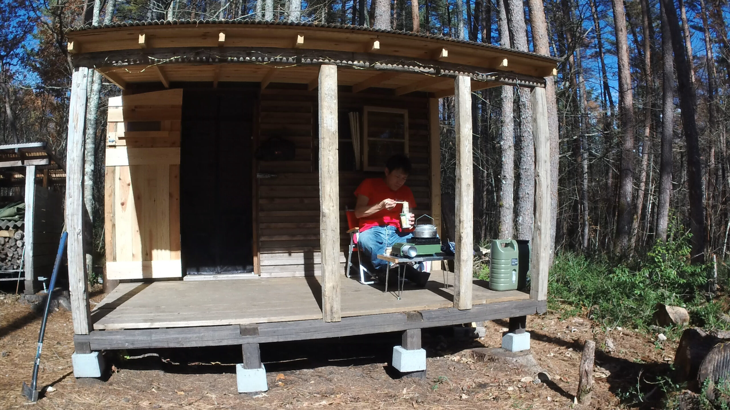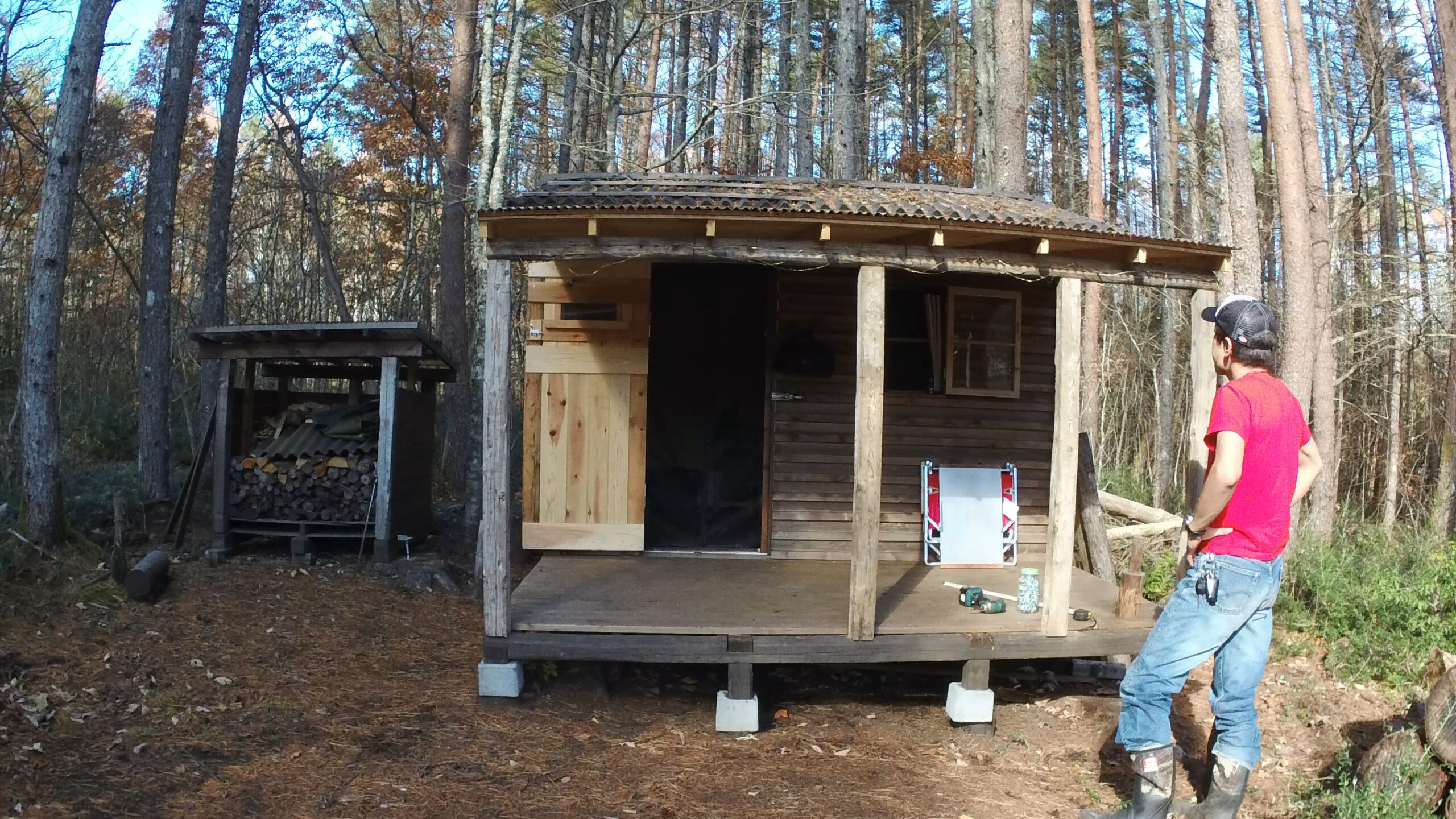 2020年の8月に開拓をスタートして、物置小屋、薪棚、雨水貯水システム、そして寝泊まり出来る小さな小さな山小屋を建てました。