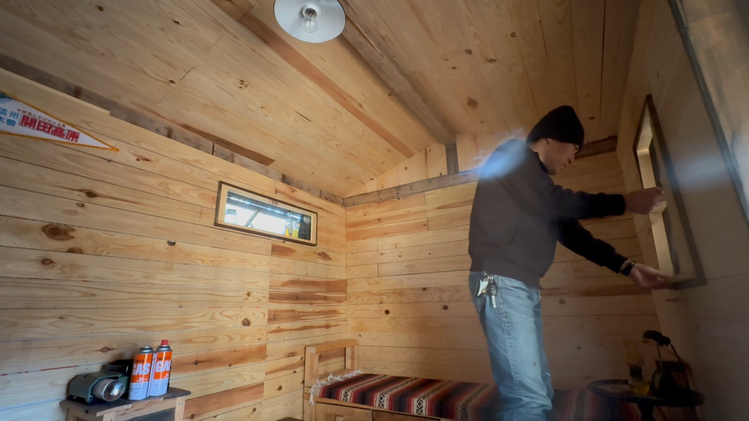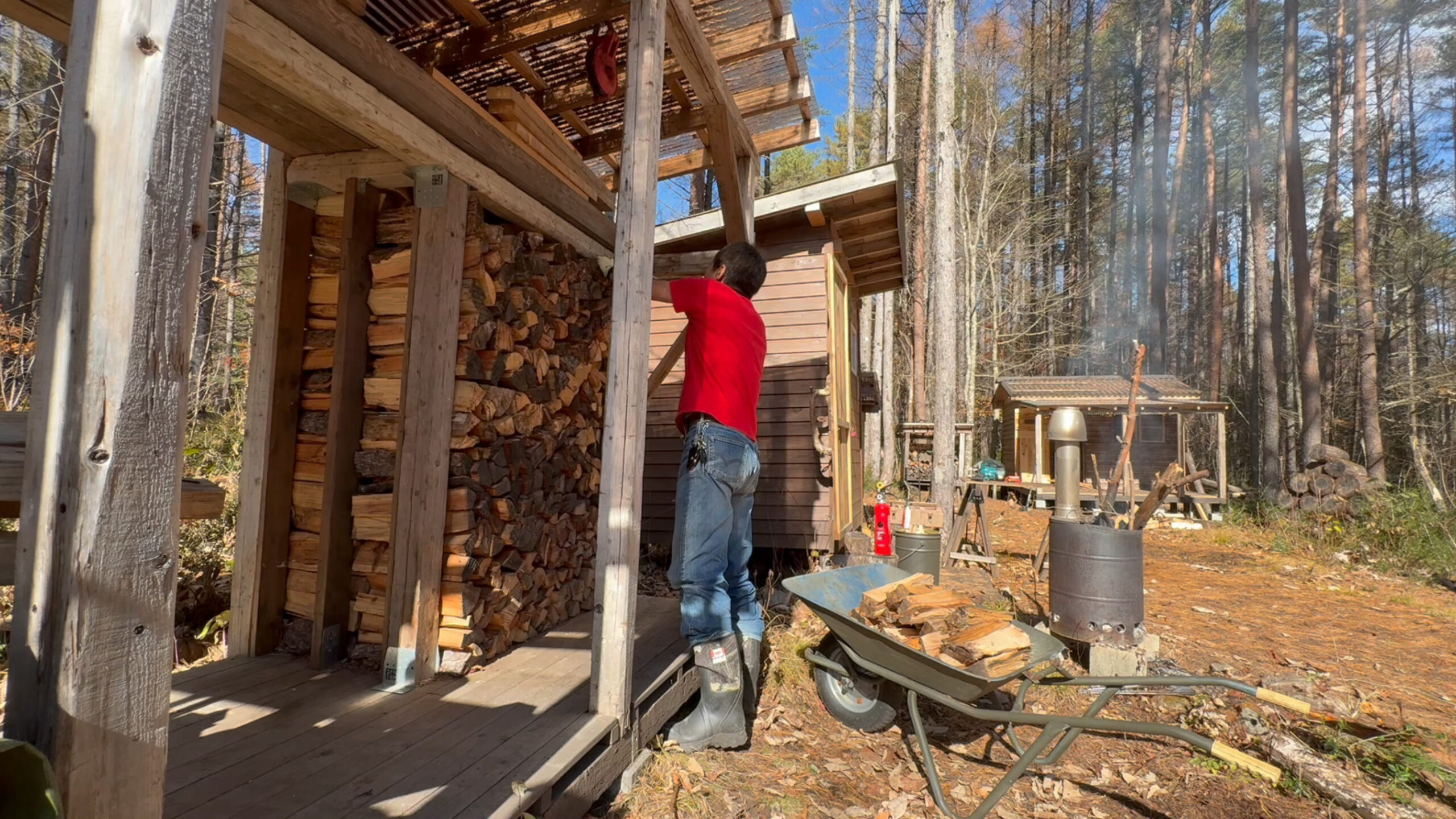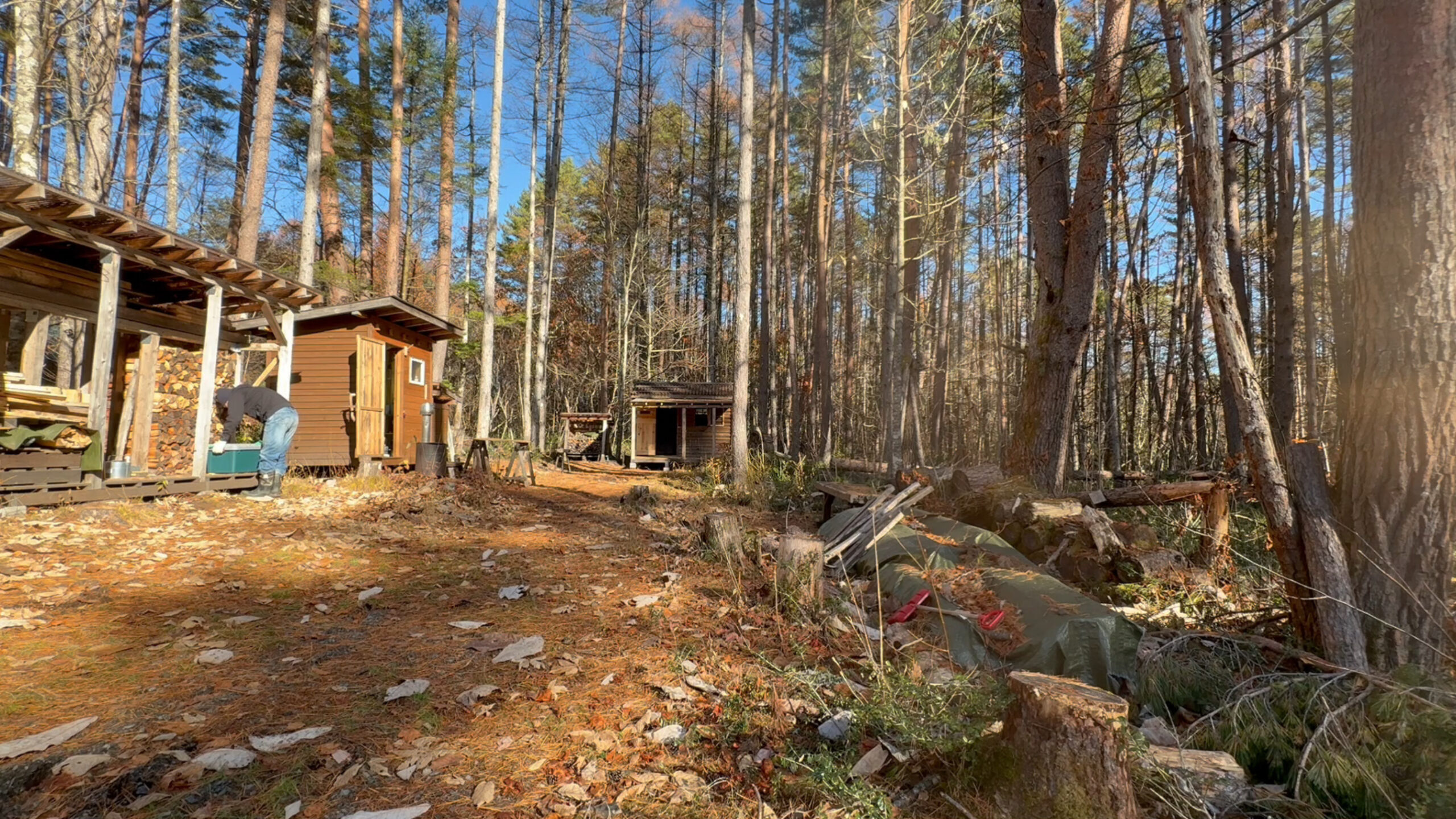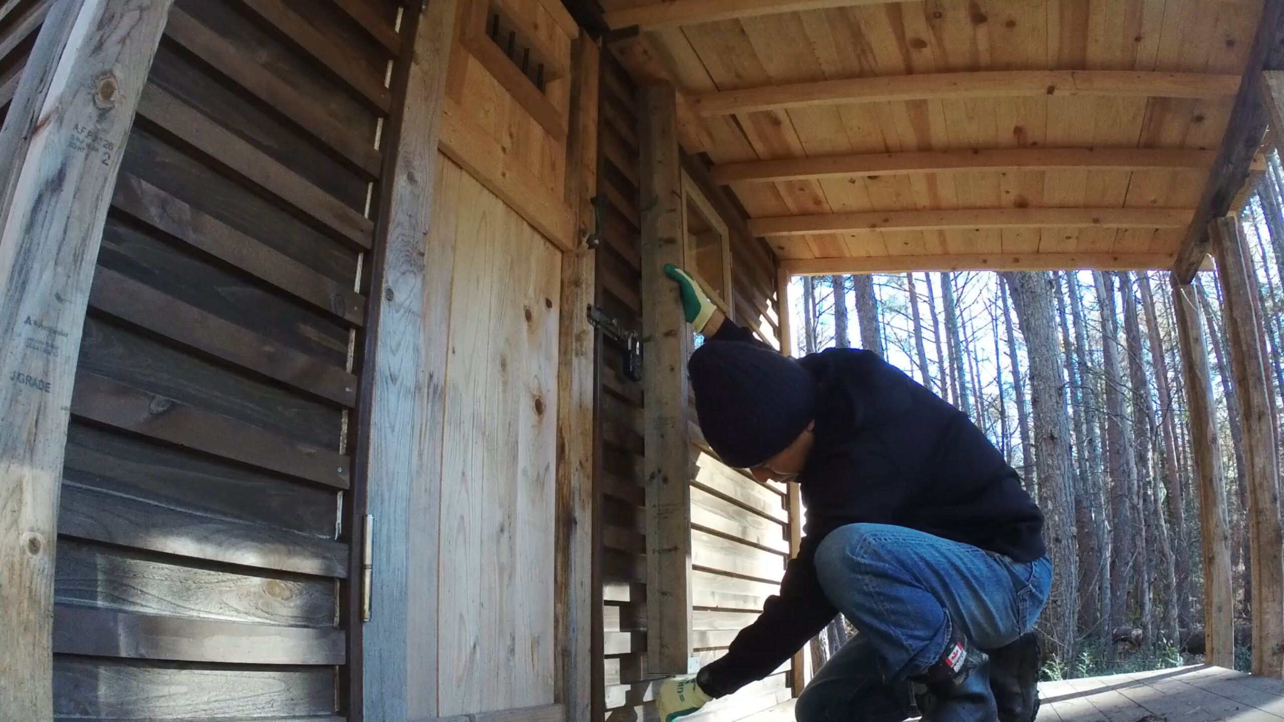2020年の8月に開拓をスタートして、物置小屋、薪棚、雨水貯水システム、そして寝泊まり出来る小さな小さな山小屋を建てました。