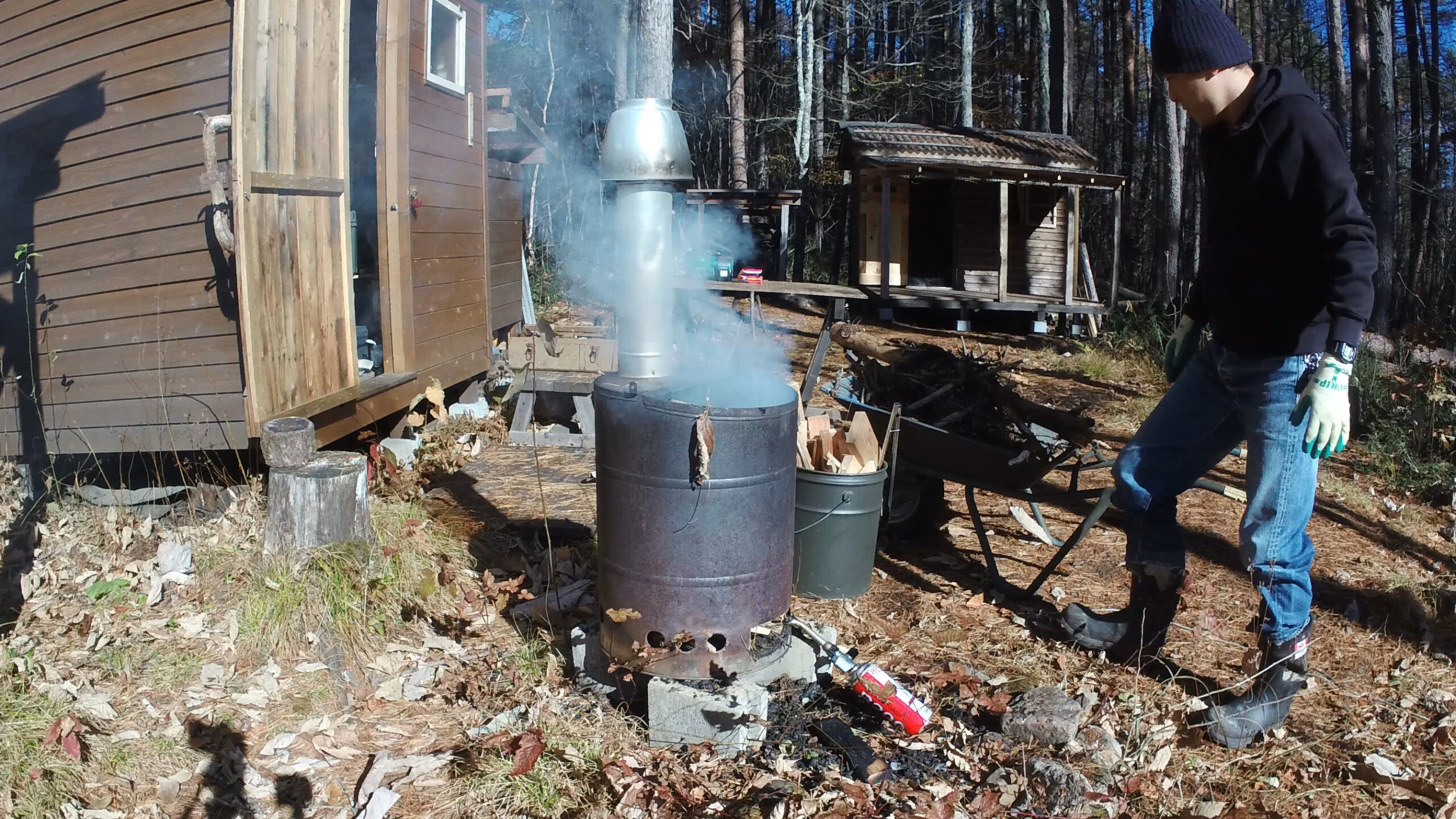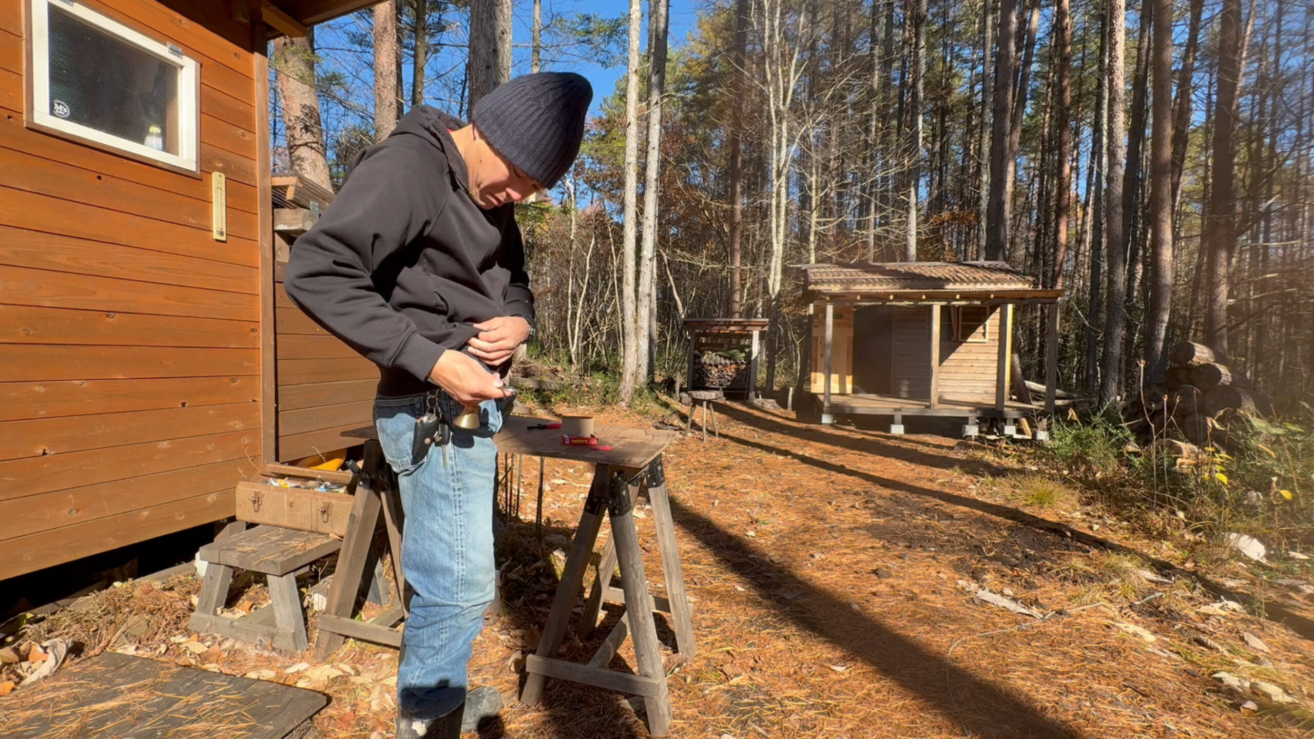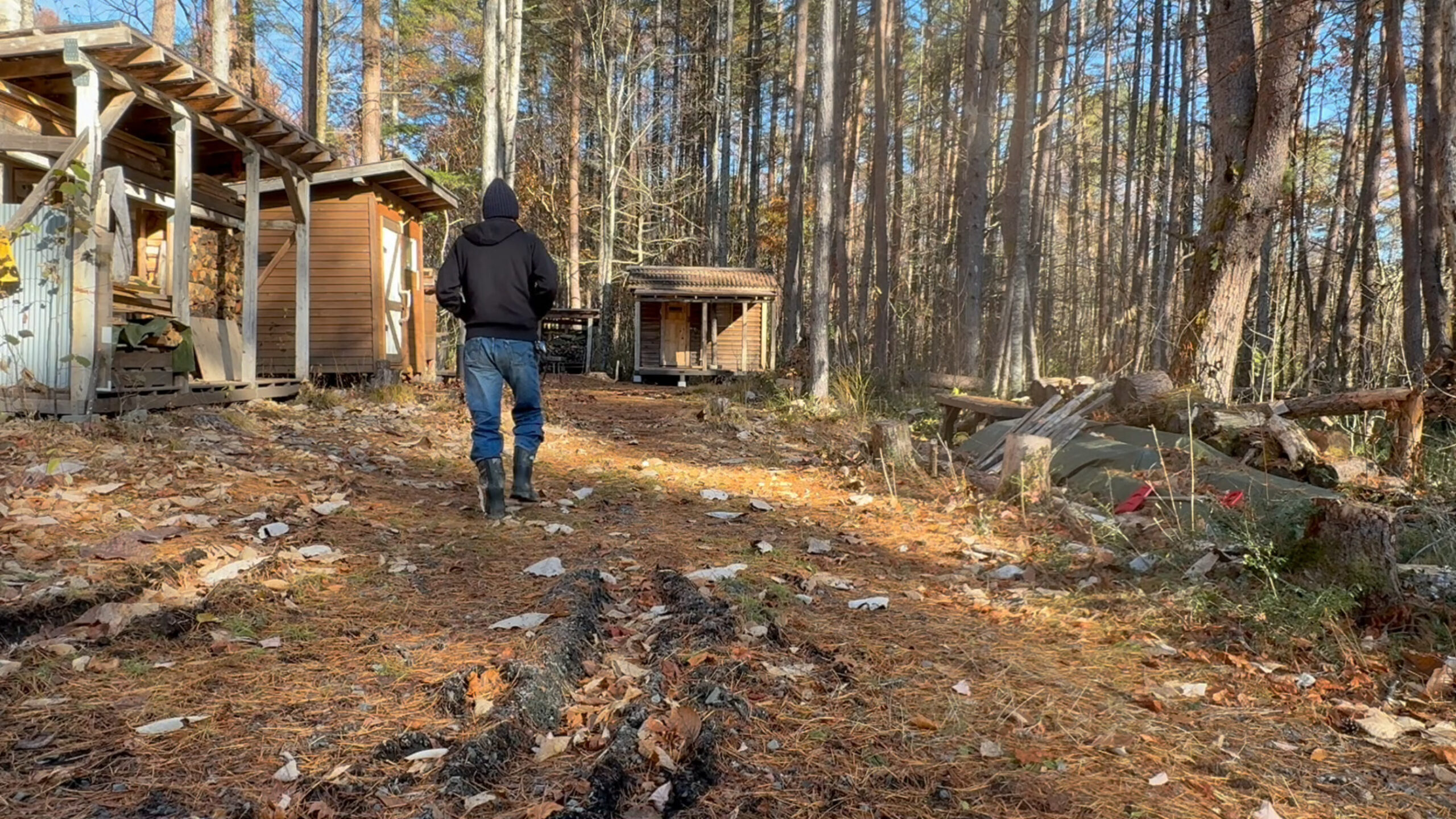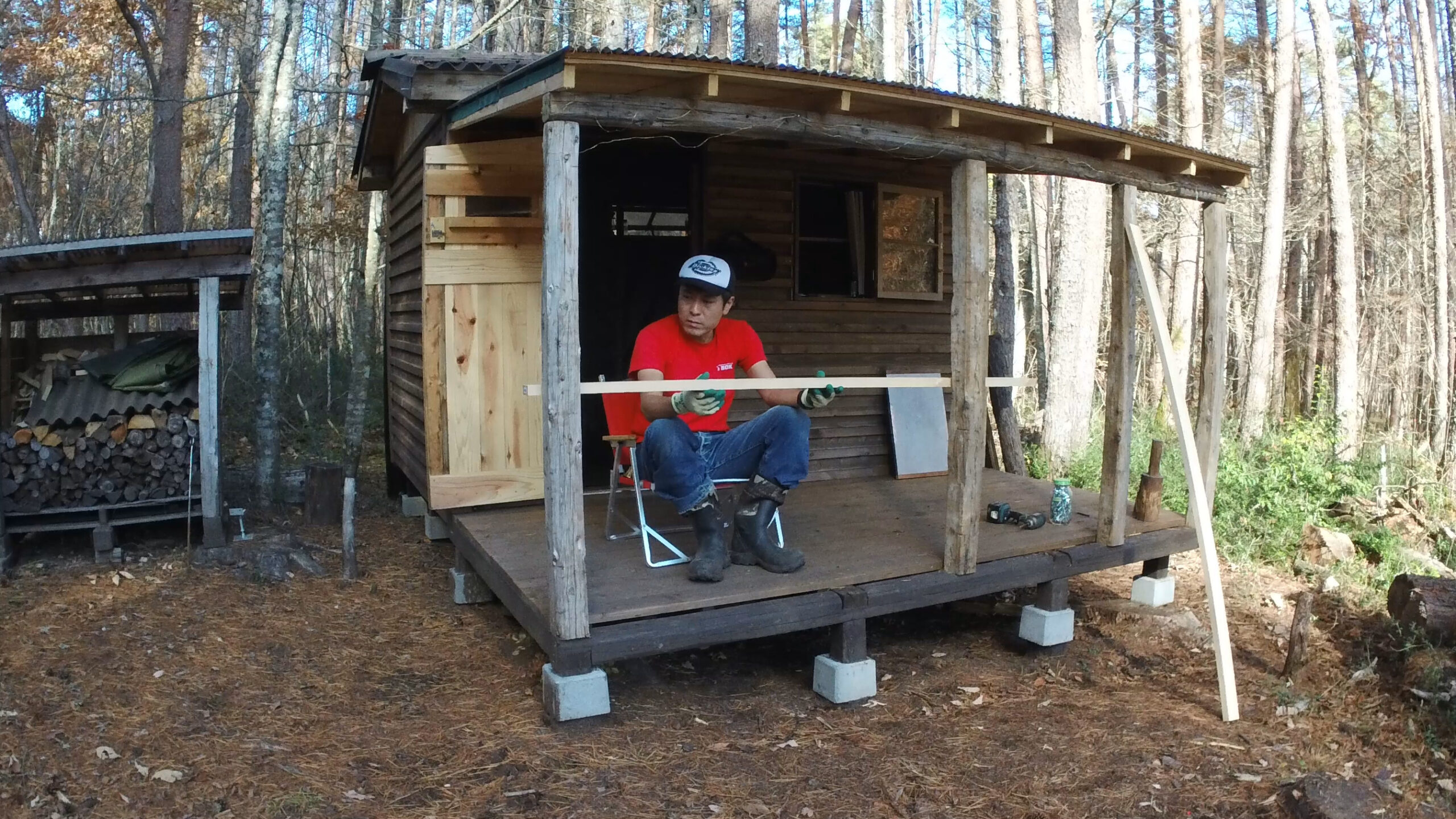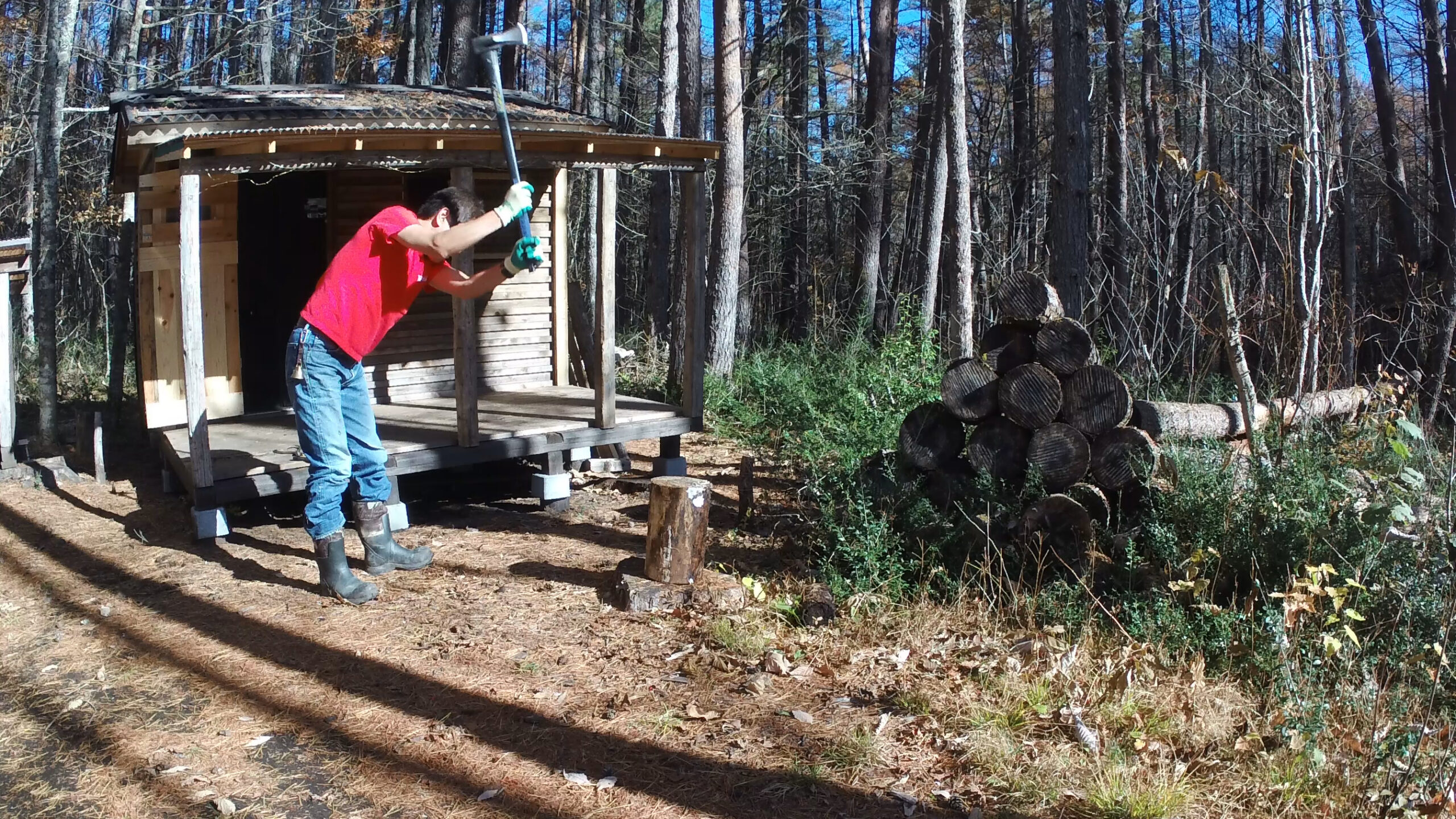 2020年の8月に開拓をスタートして、物置小屋、薪棚、雨水貯水システム、そして寝泊まり出来る小さな小さな山小屋を建てました。