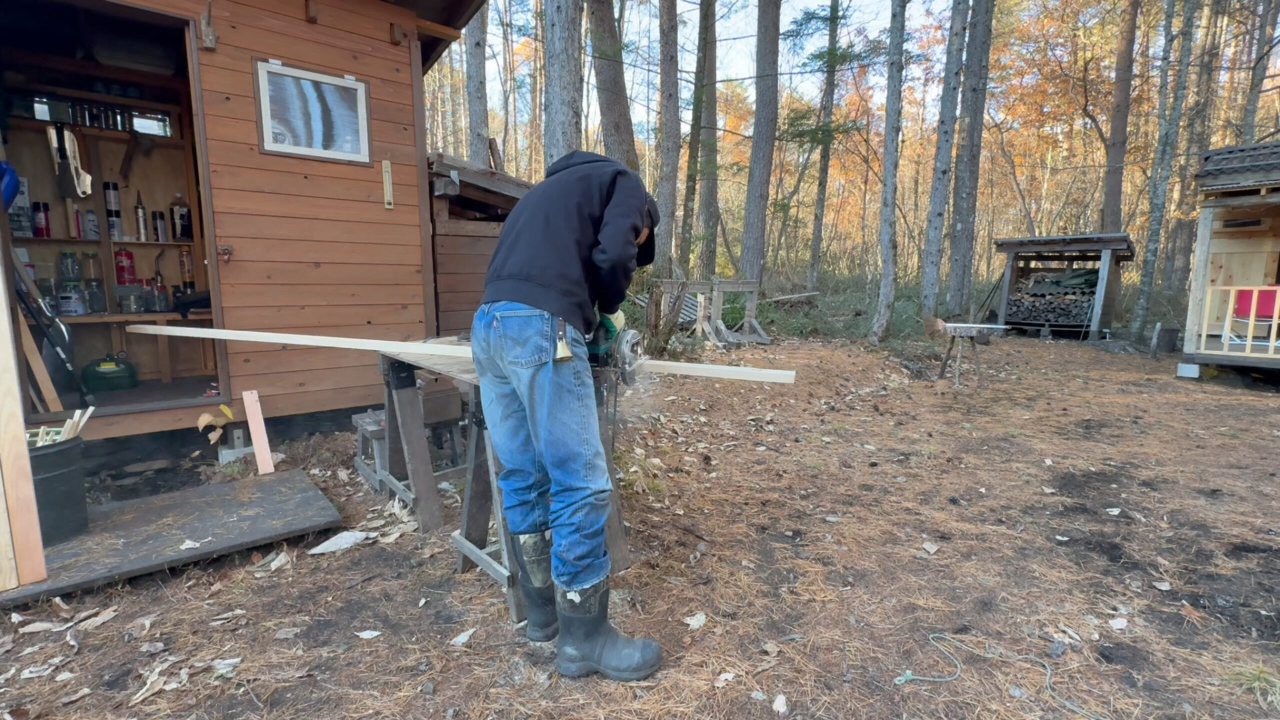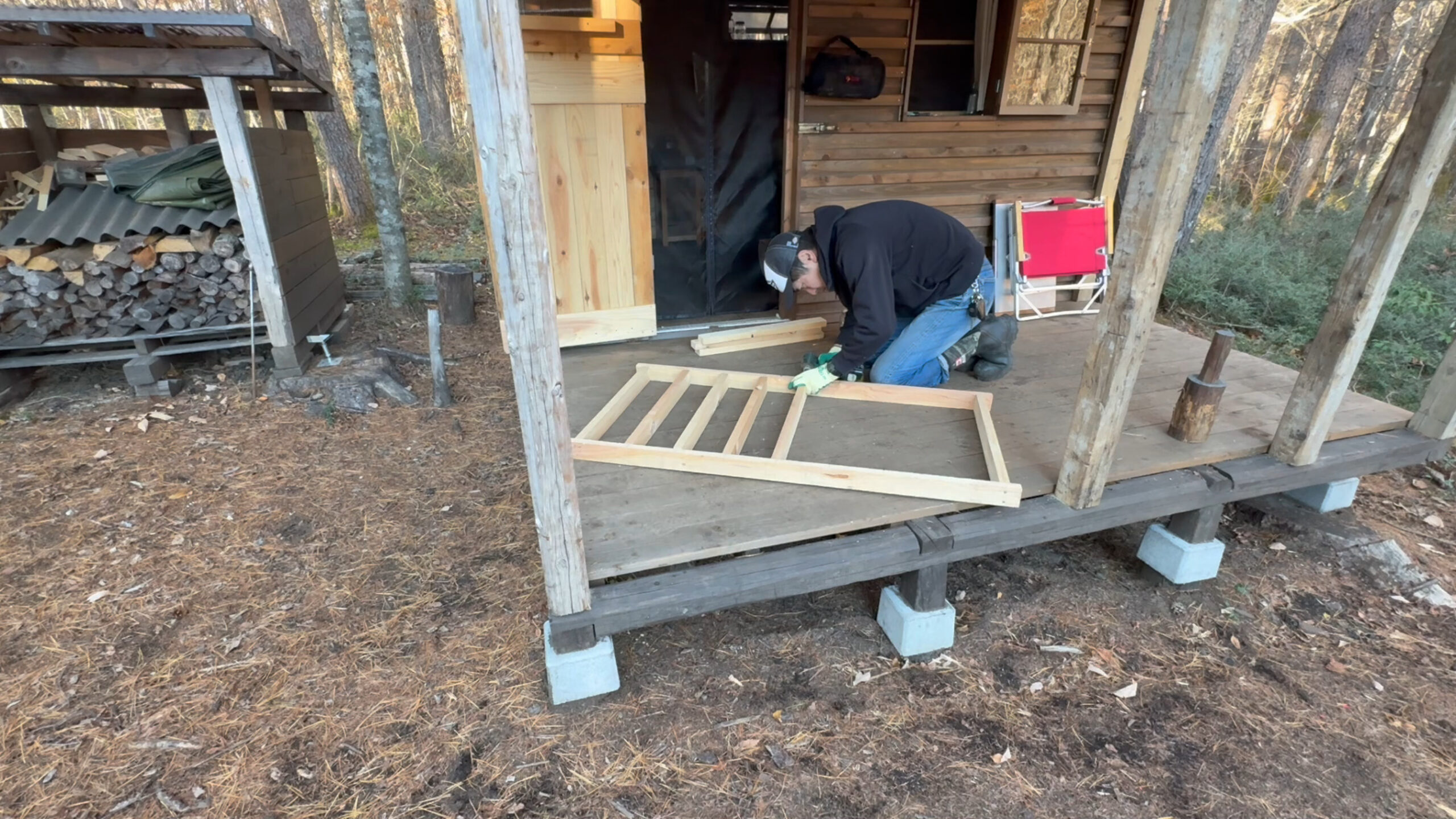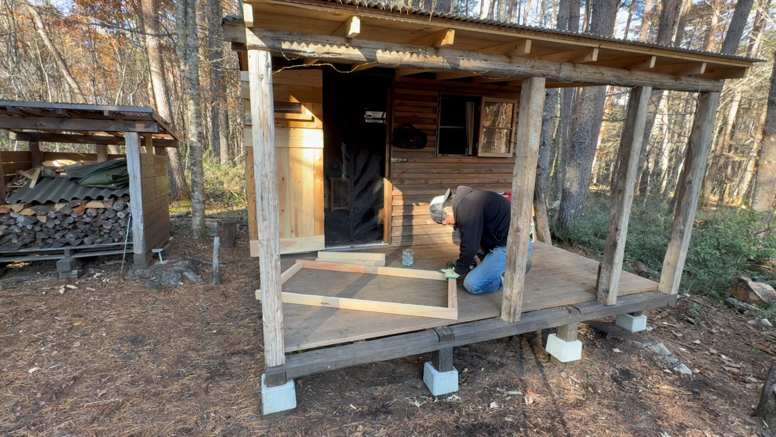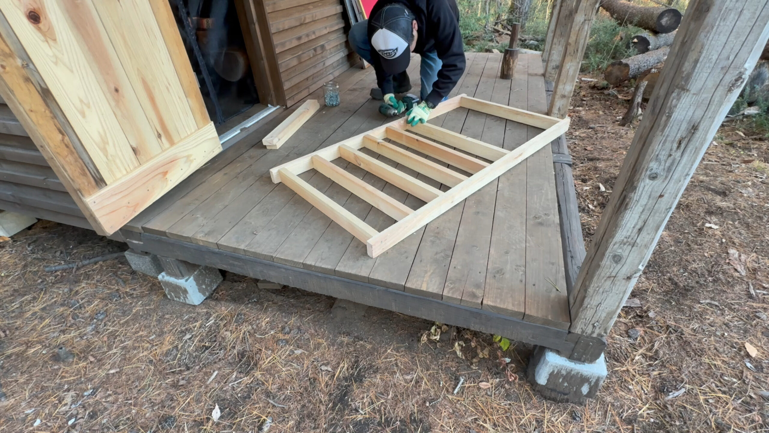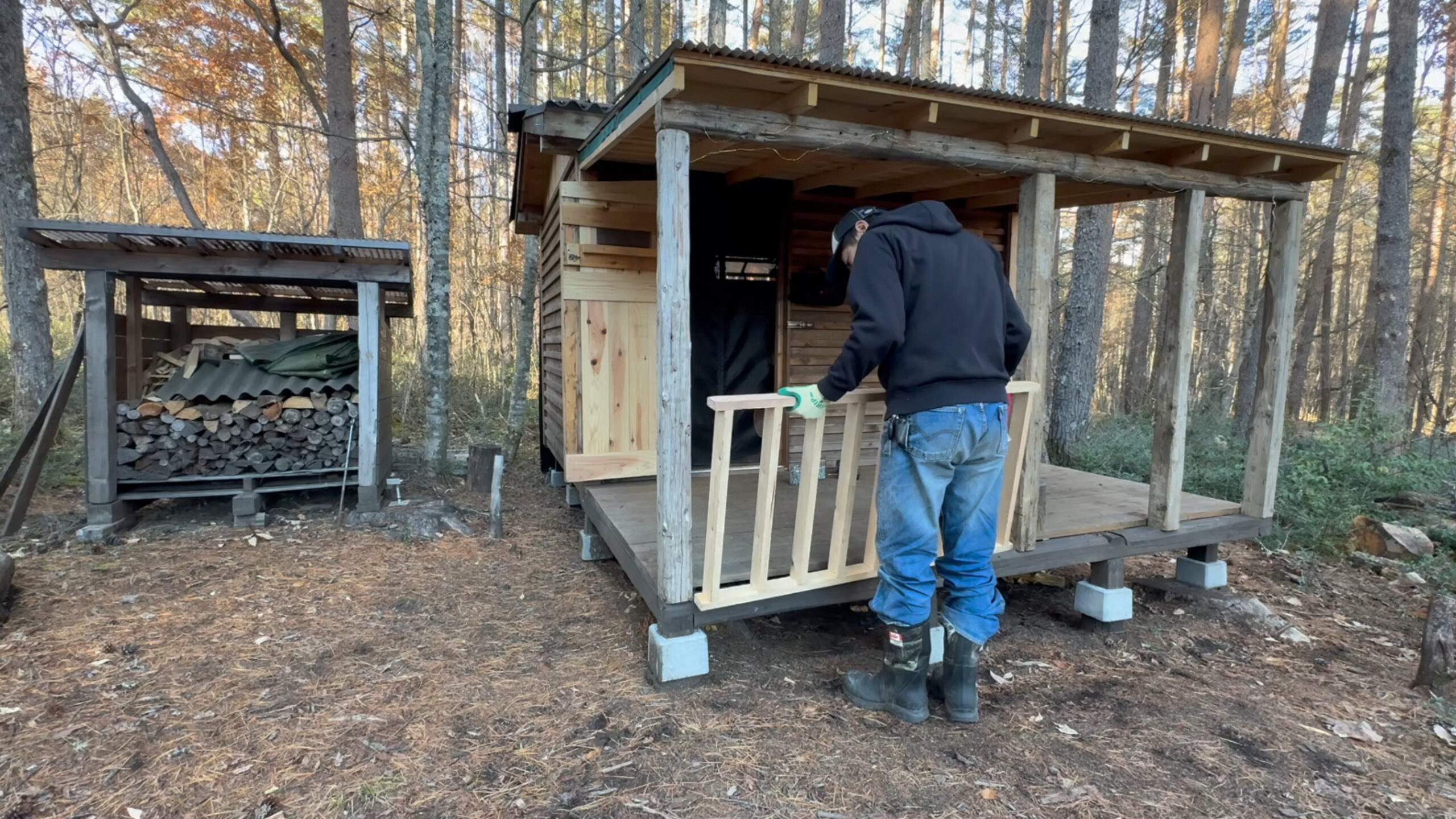 今回は山小屋に増築した屋根付きウッドデッキの正面の柵の製作をしたのでその様子をお送りしたいと思います。