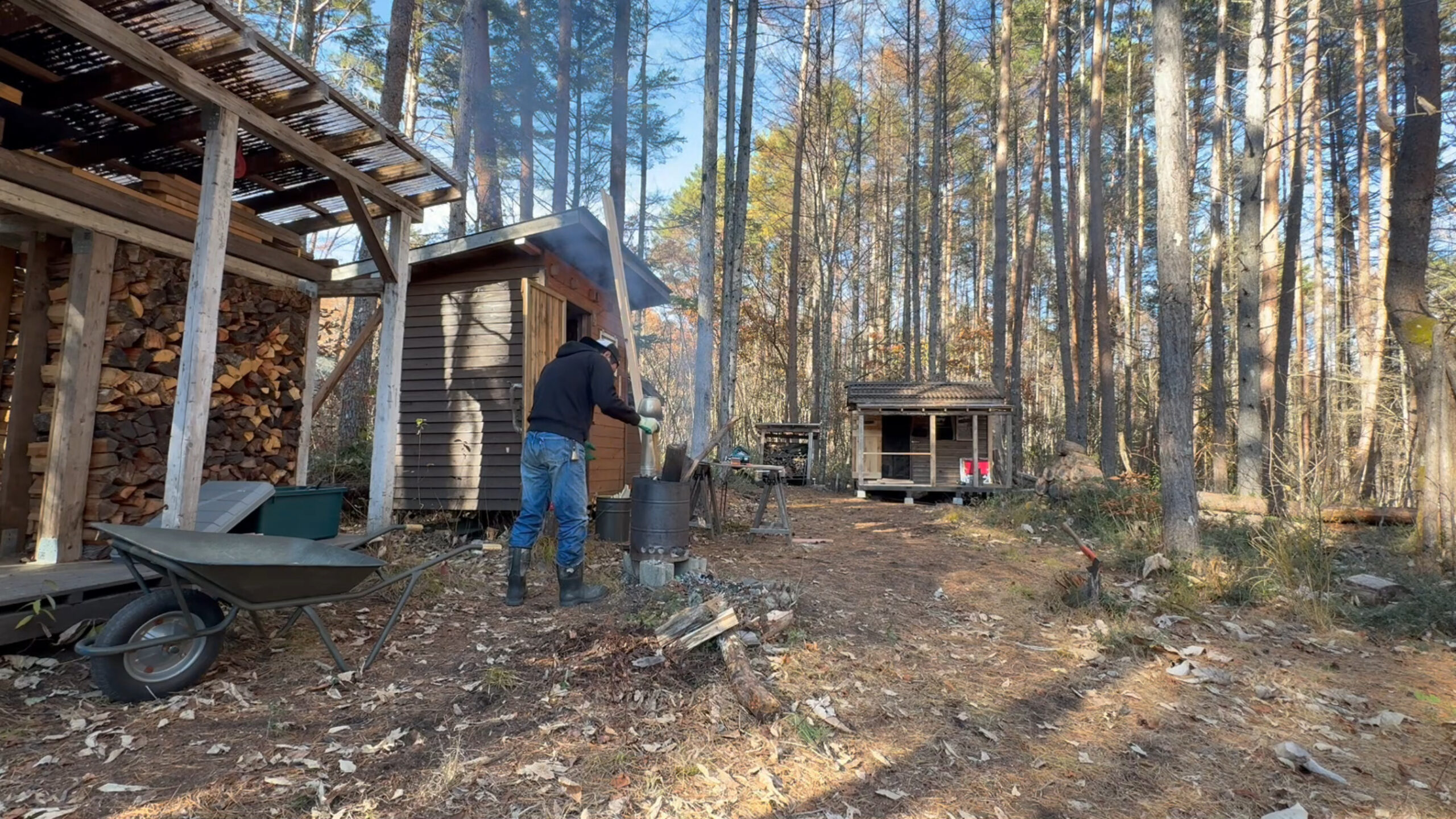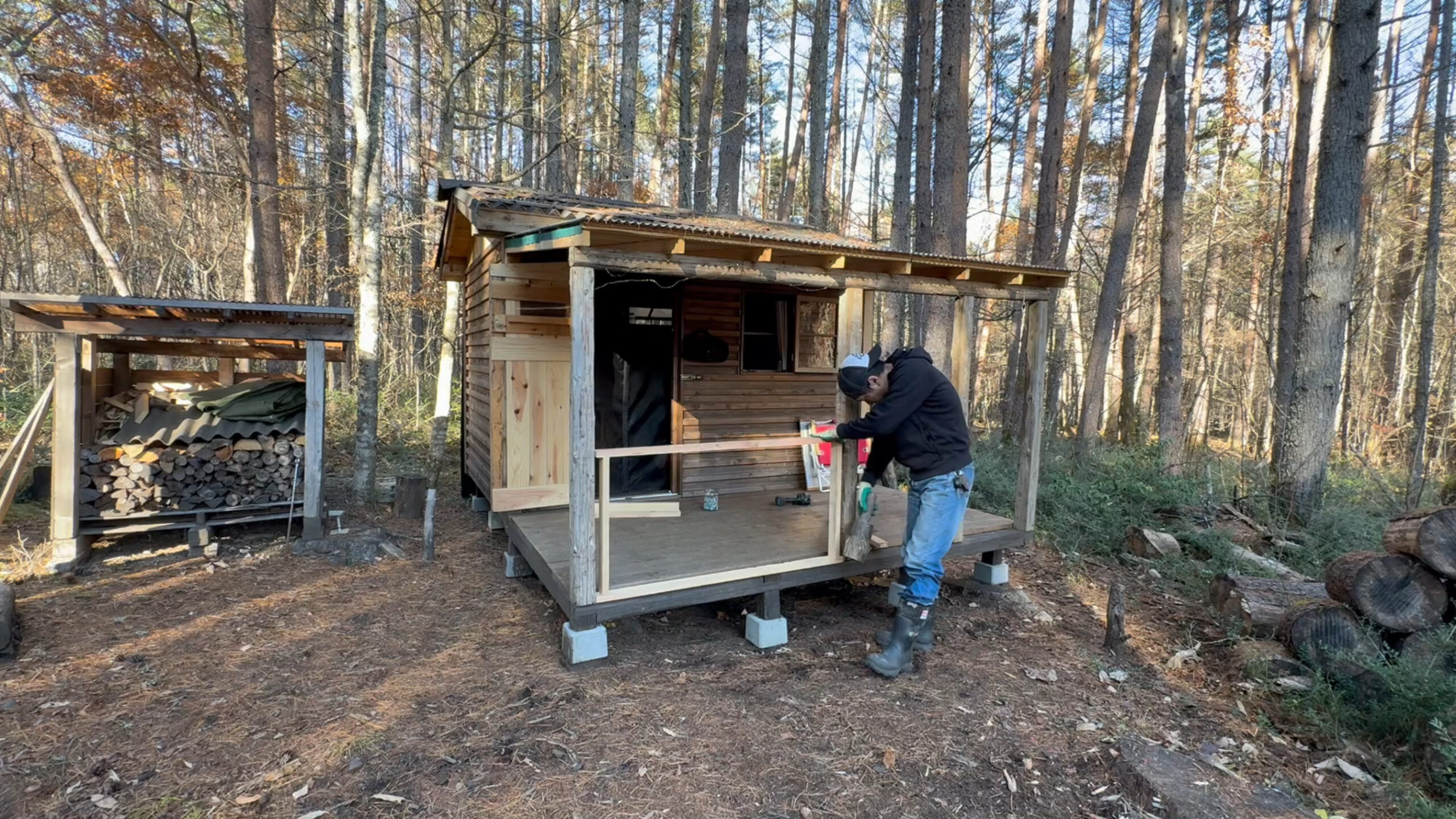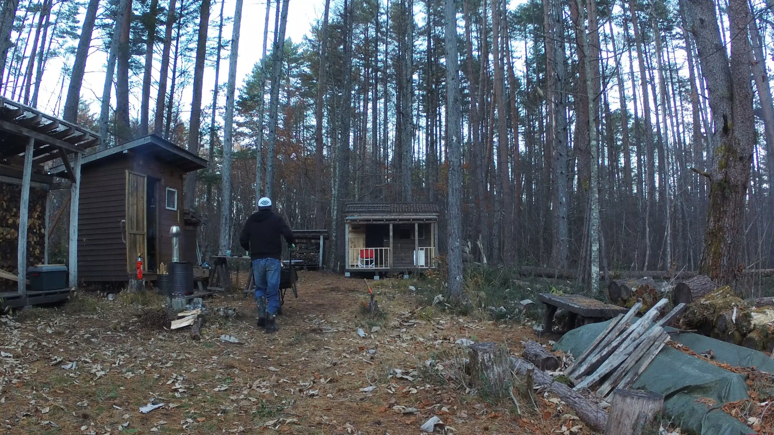 2020年の8月に開拓をスタートして、物置小屋、薪棚、雨水貯水システム、そして寝泊まり出来る小さな小さな山小屋を建てました。