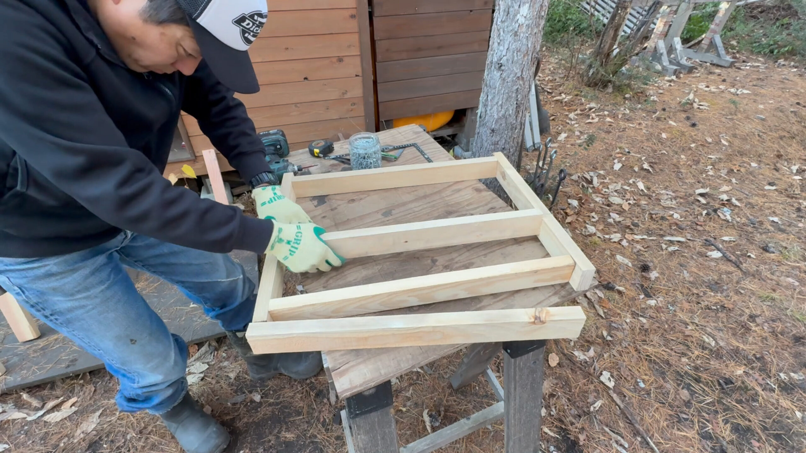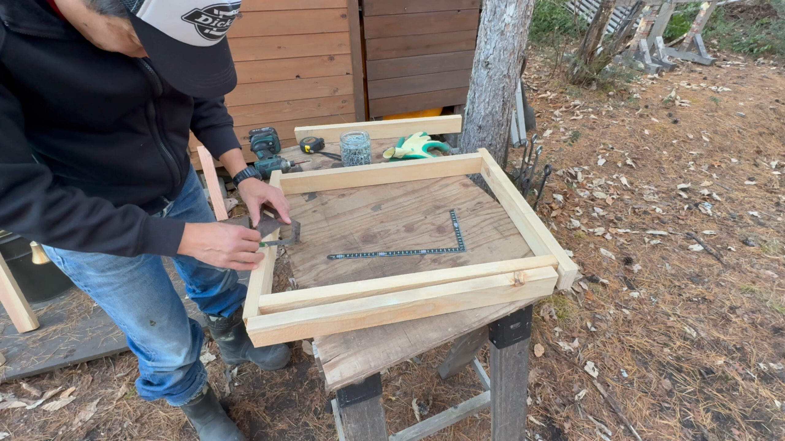 細めの材木を寸法に合わせて加工してそれをビス止めしていきます。