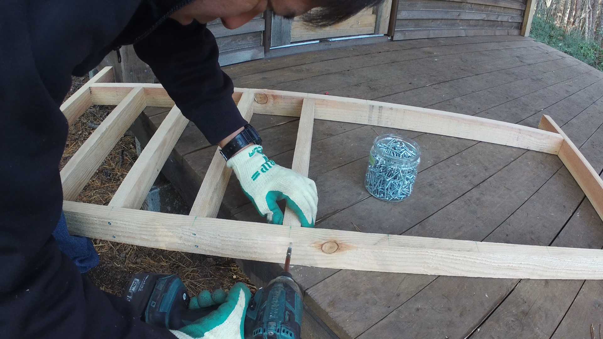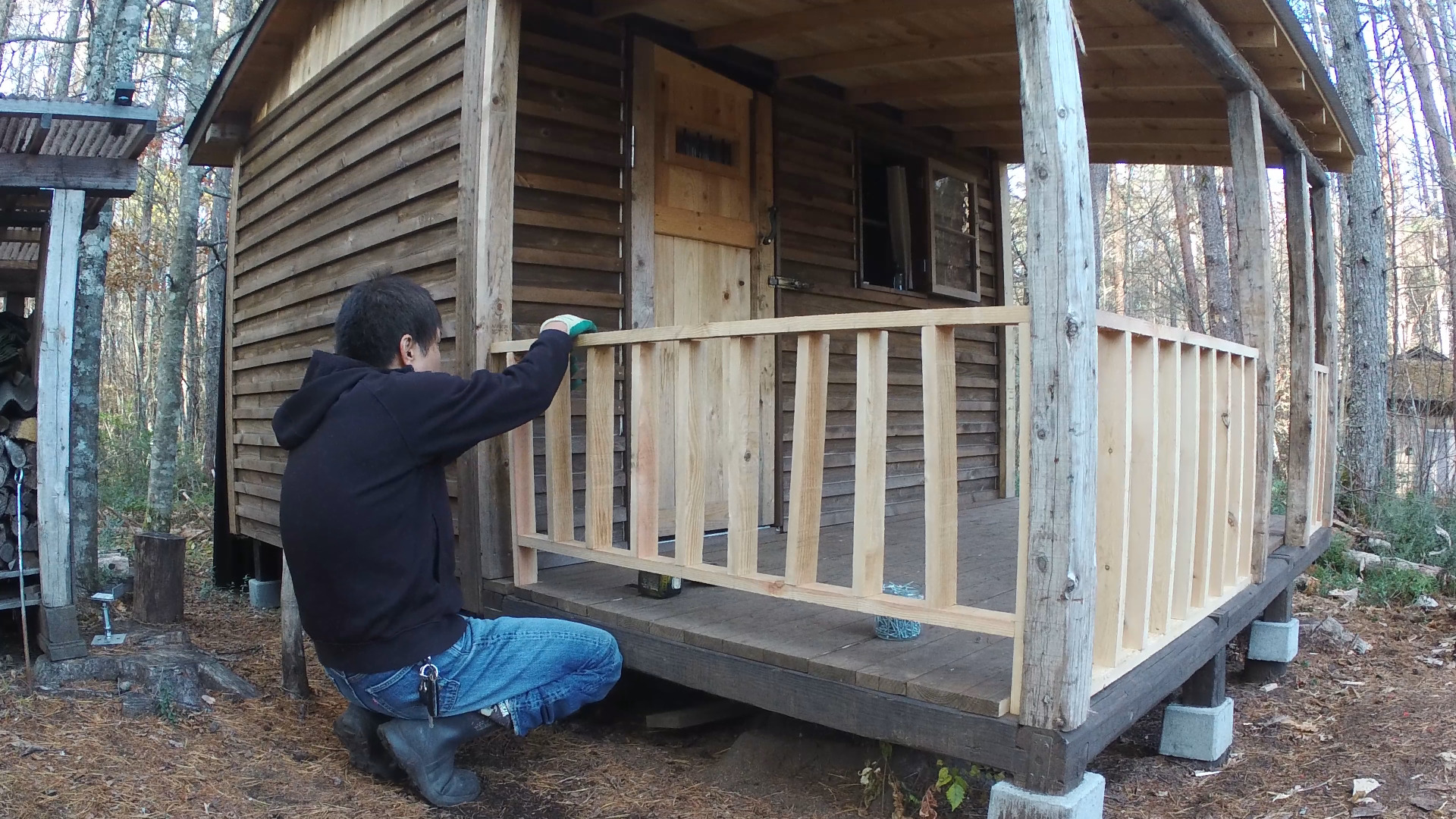 前回に引き続き今回も山小屋に増築した屋根付きウッドデッキの柵の製作をしたのでその様子をお送りしたいと思います。