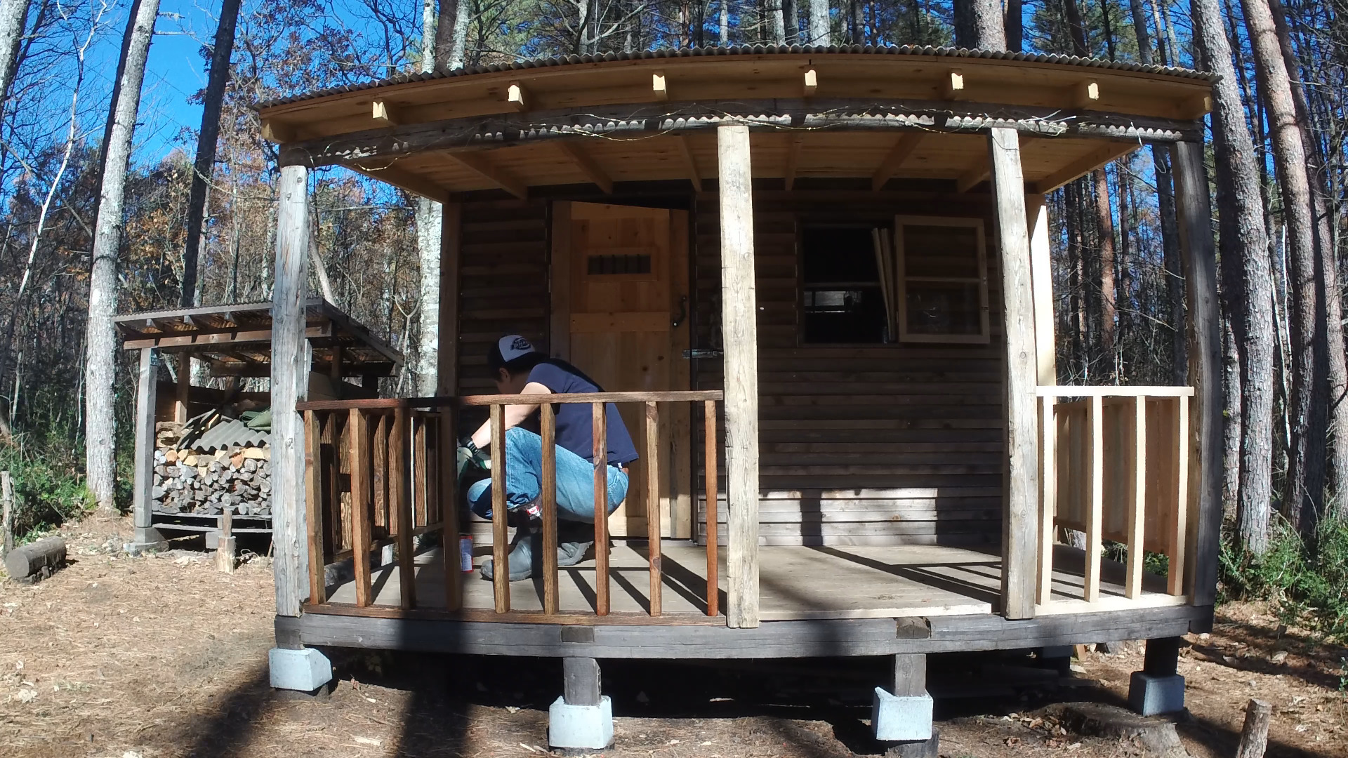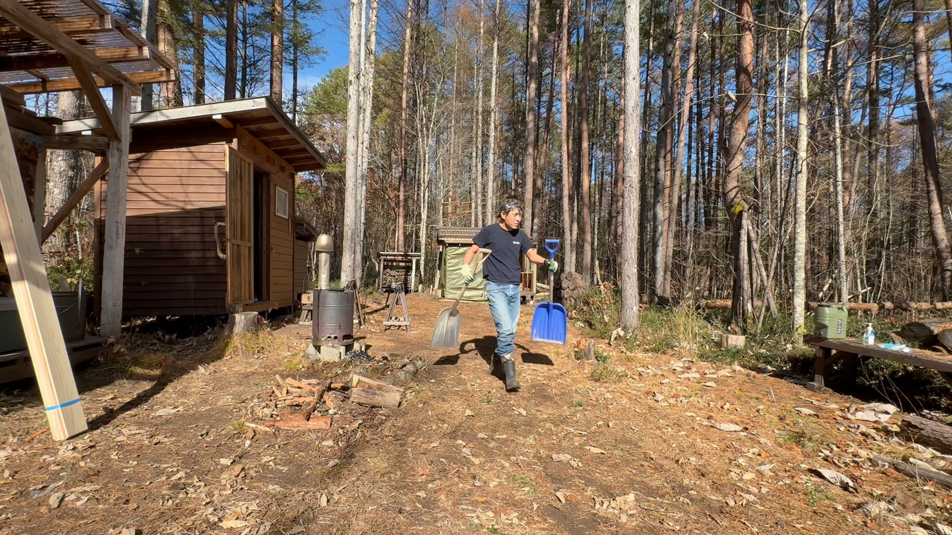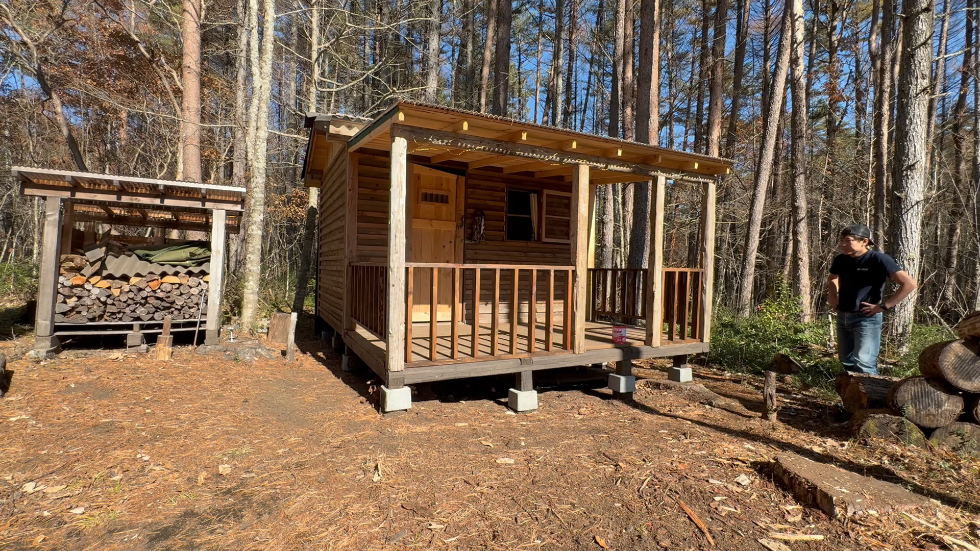 2020年の8月に開拓をスタートして、物置小屋、薪棚、雨水貯水システム、そして寝泊まり出来る小さな小さな山小屋を建てました。