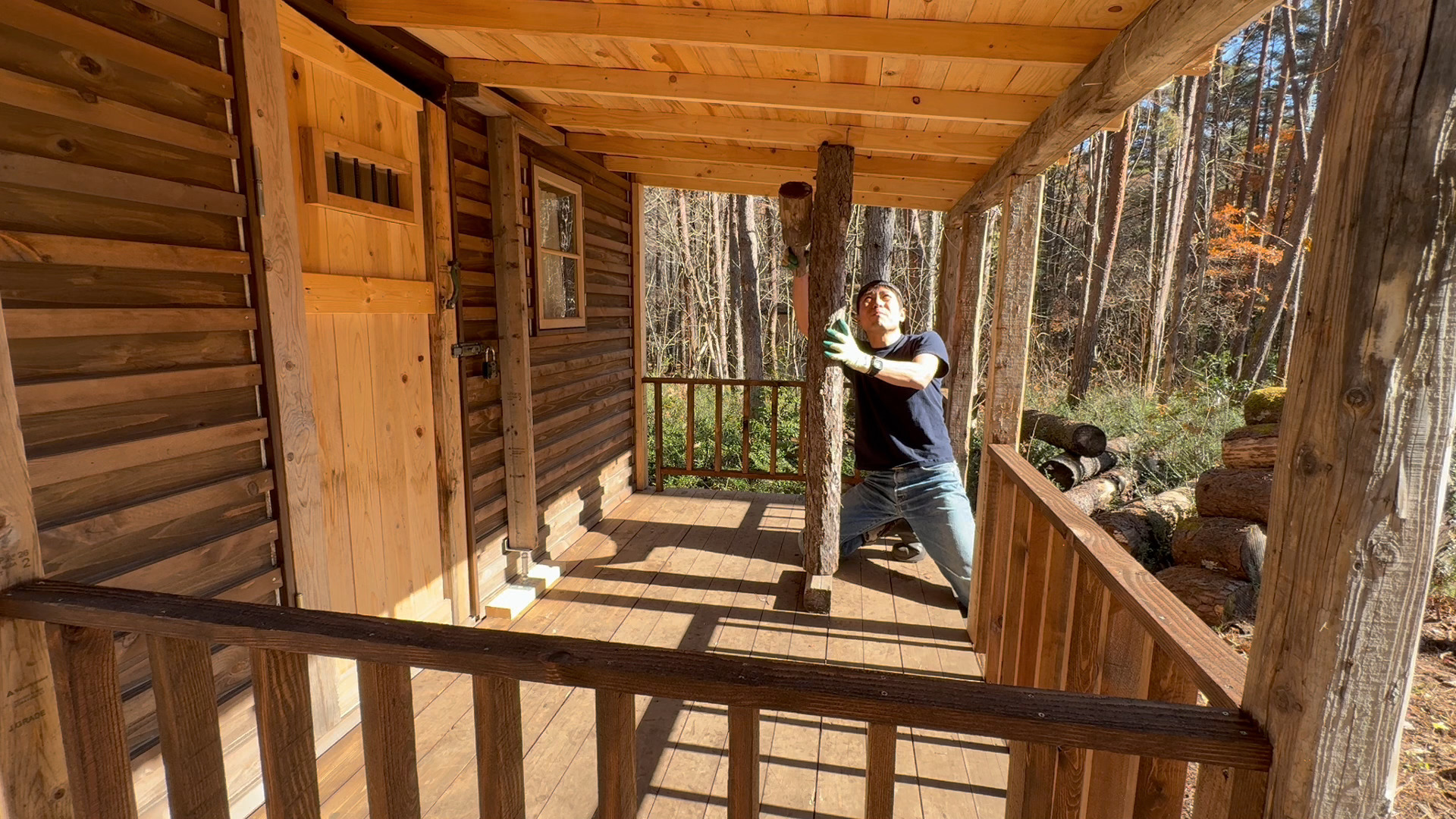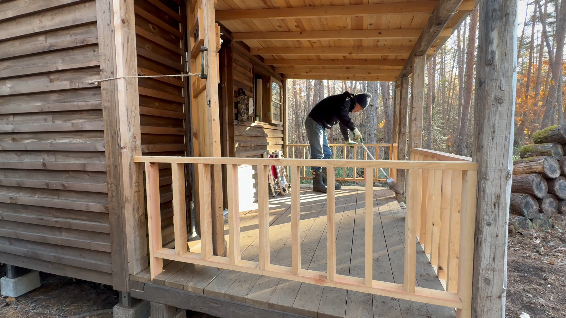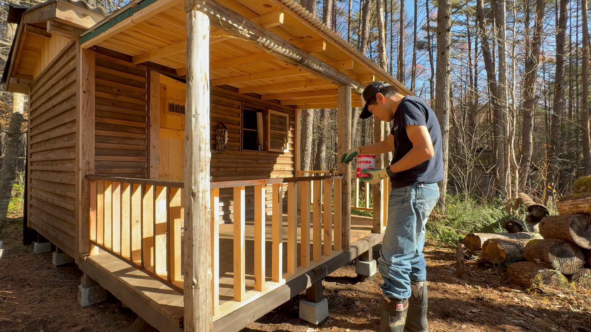 前回に引き続き今回も山小屋に増築した屋根付きウッドデッキの柵の製作で柵に塗装をしたのでその様子をお送りしたいと思います。