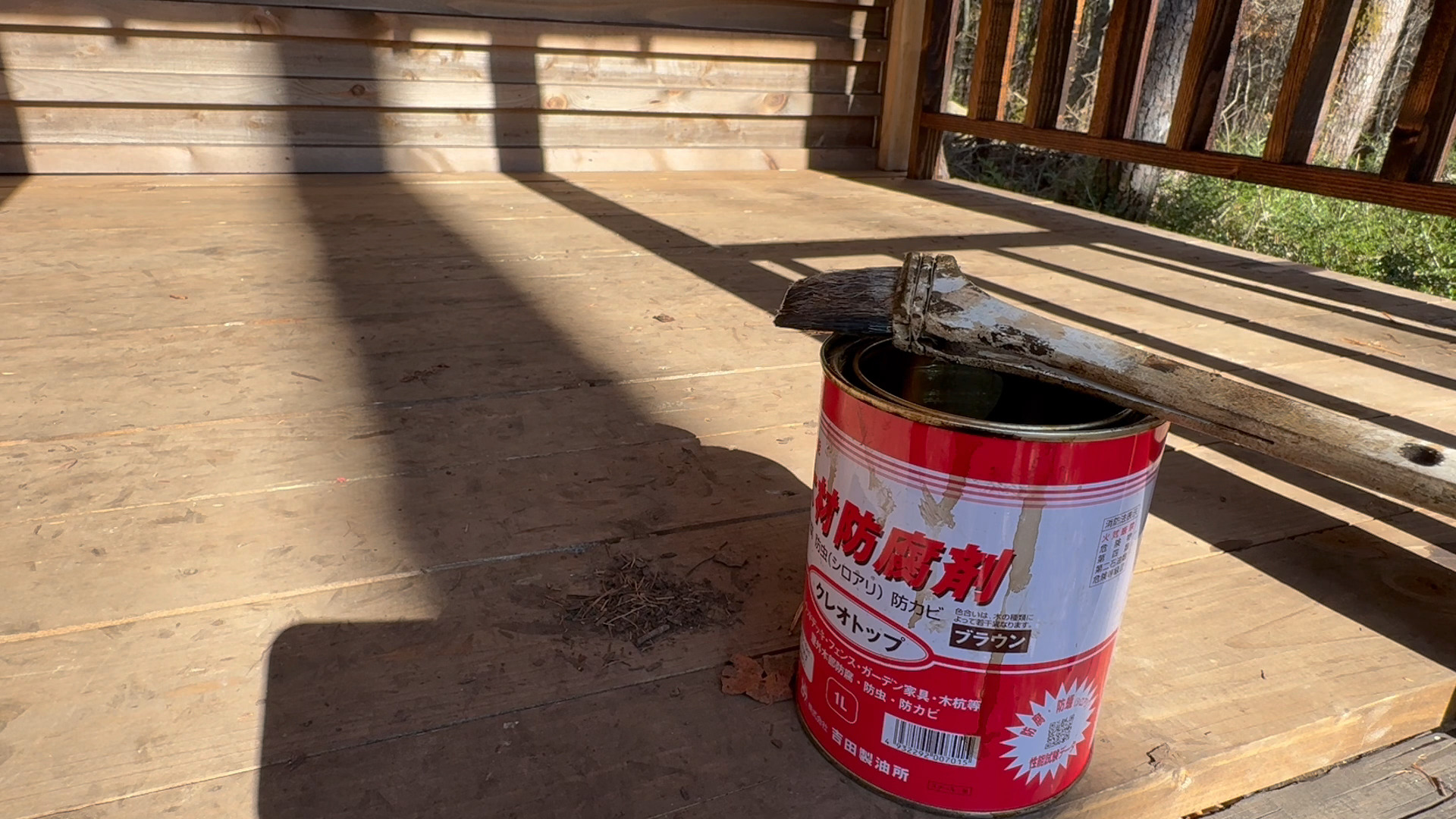 良く染み込むし木目もシッカリ出るのでお勧めの防腐塗料です。